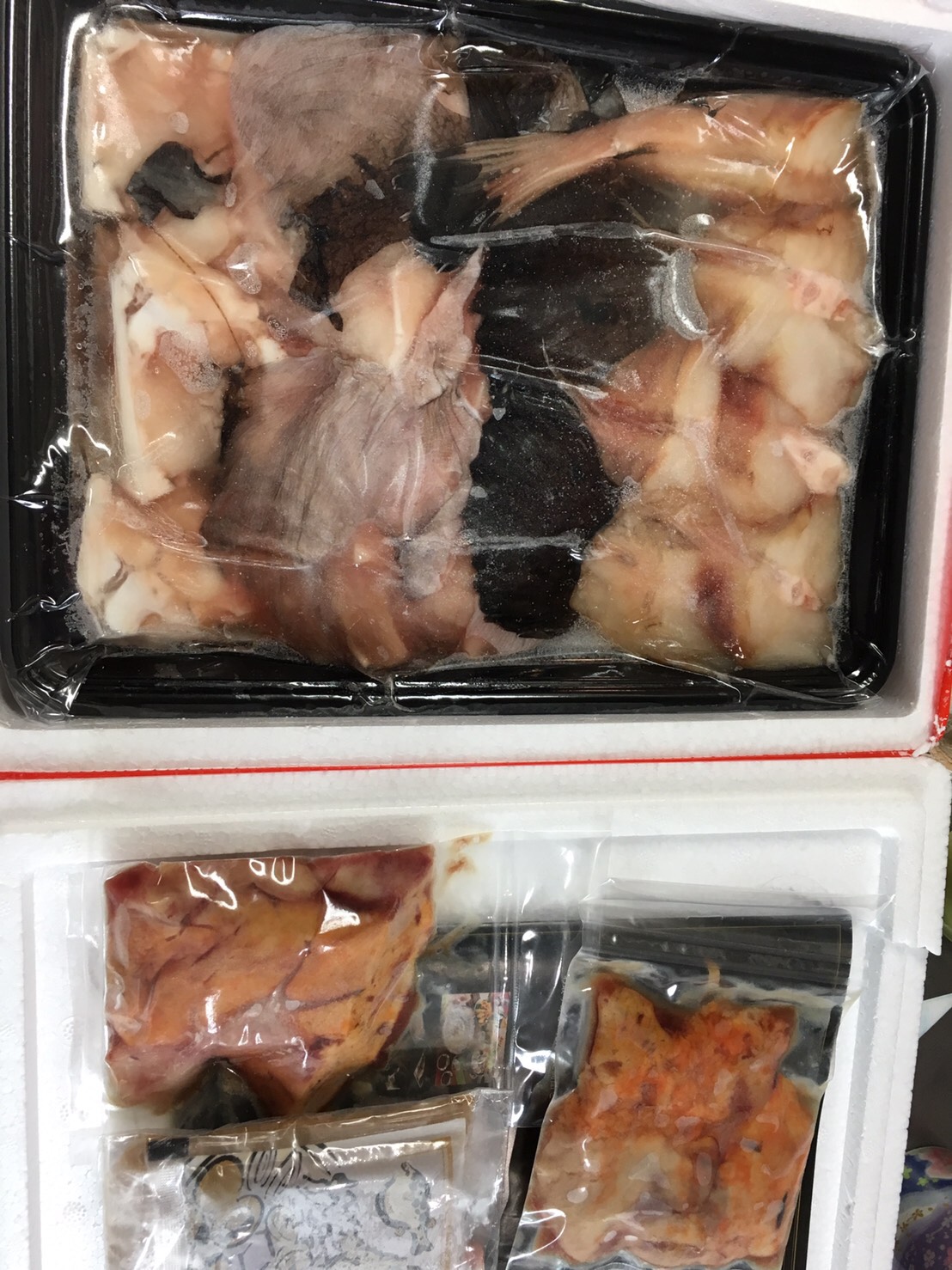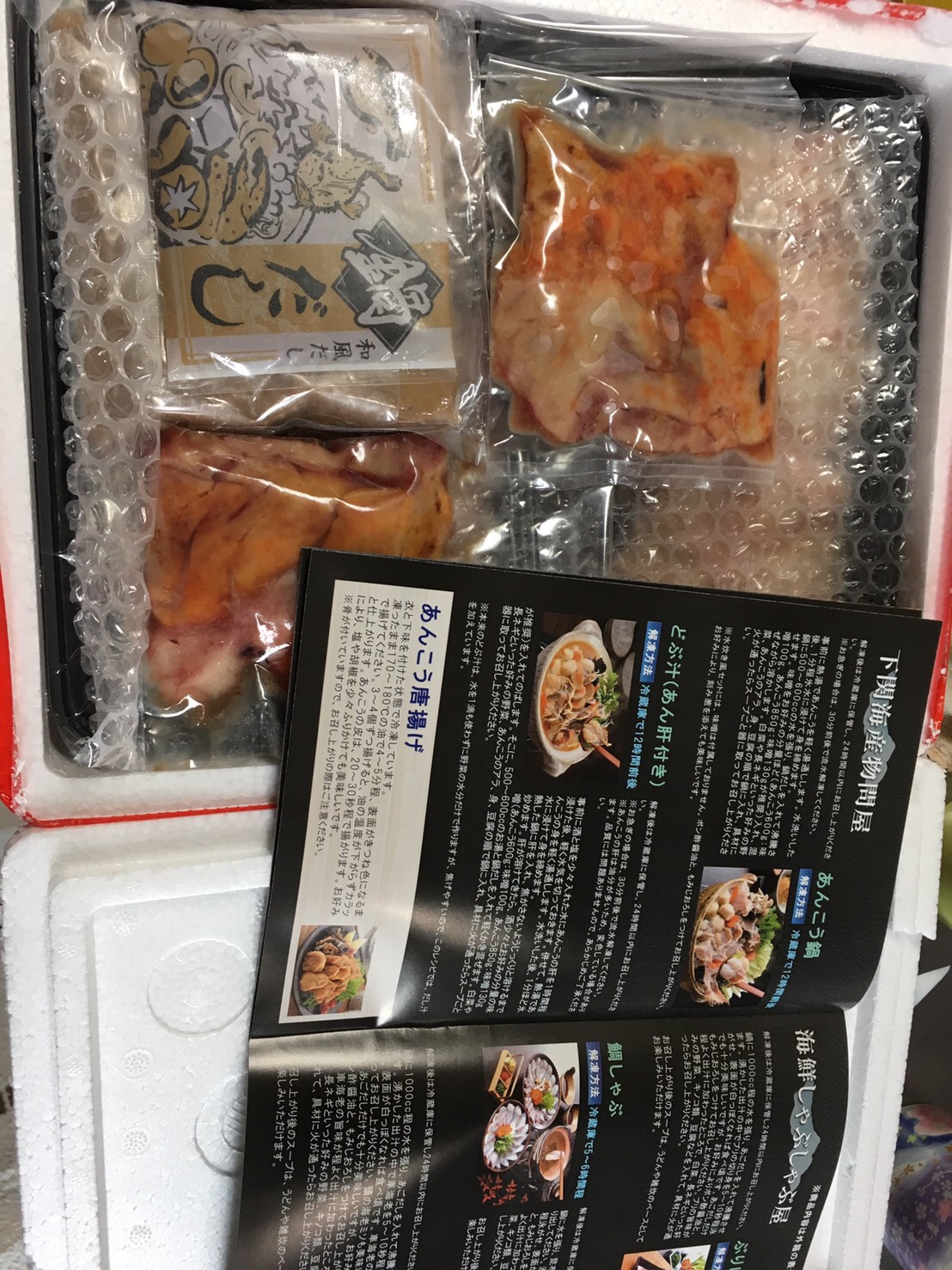 発泡スチロールの箱に、あんこうと肝を分けて、真空パックになって入っていました。