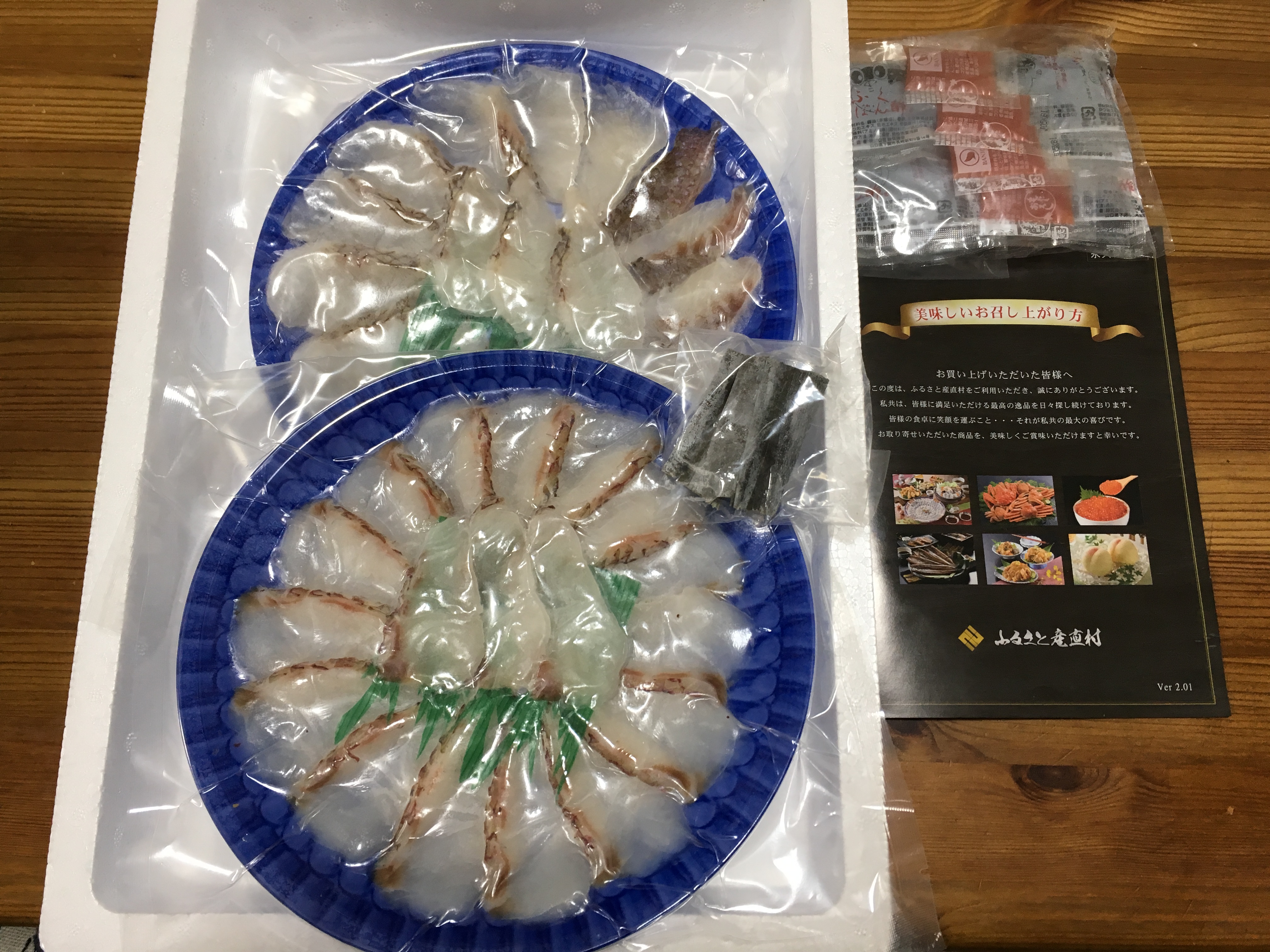 付属のポン酢と紅葉おろしで食べました。鯛の味を邪魔することなく良い感じ。ポン酢は8袋、紅葉おろしは4袋ついてきます。食べているうちにポン酢が足りなくなるかなぁ~と思っていたのですが、余計な心配でした。私は余裕で足りました!これはありがたいですね。