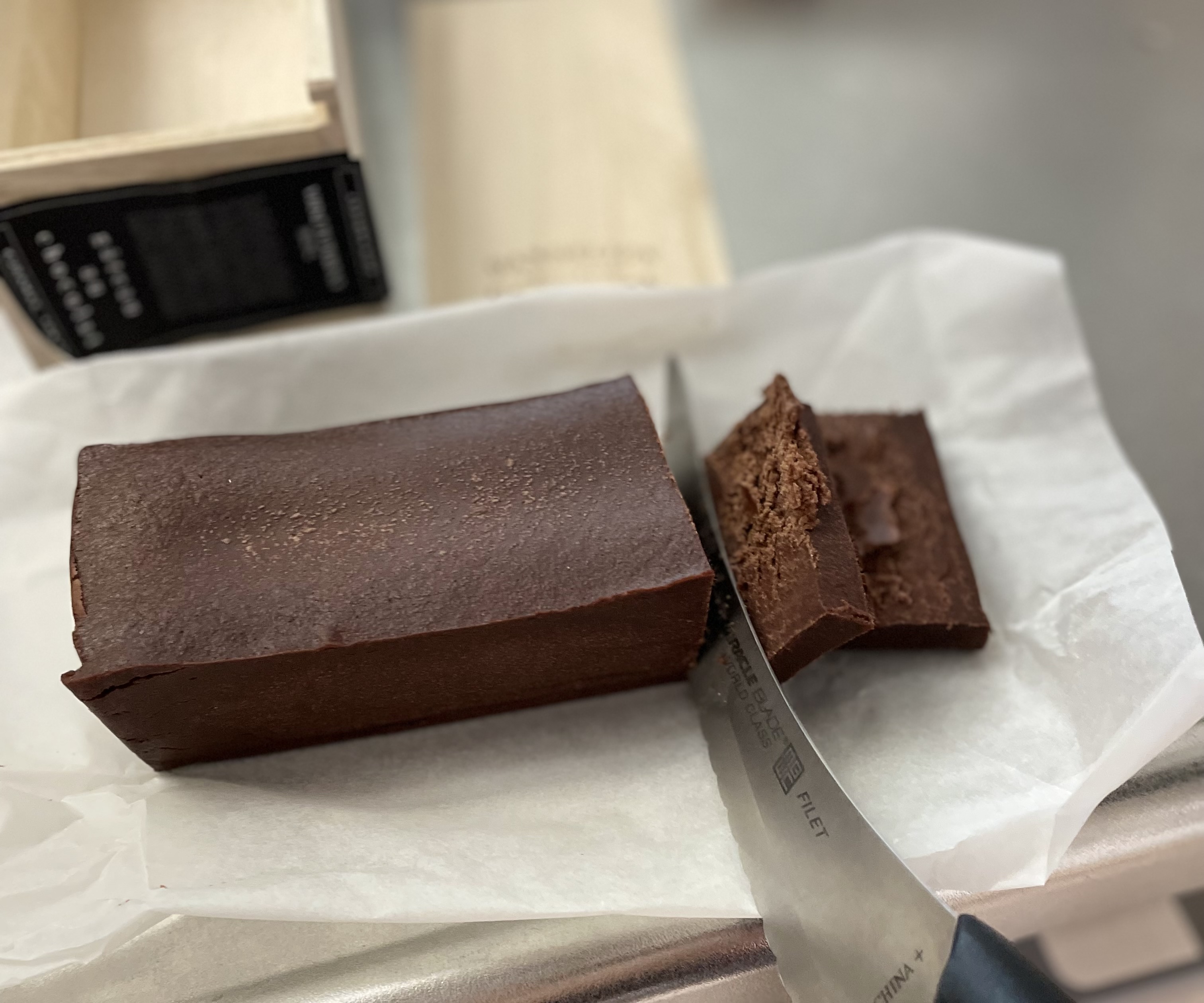 【常温】"舌の上で柔らかにほどける感触"と言う表現がぴったり!冷蔵より甘さが際立ちチョコ本来の味や余韻が楽しめる上にチーズケーキのような滑らかな食感と酸味や芳潤な味わいも感じます。