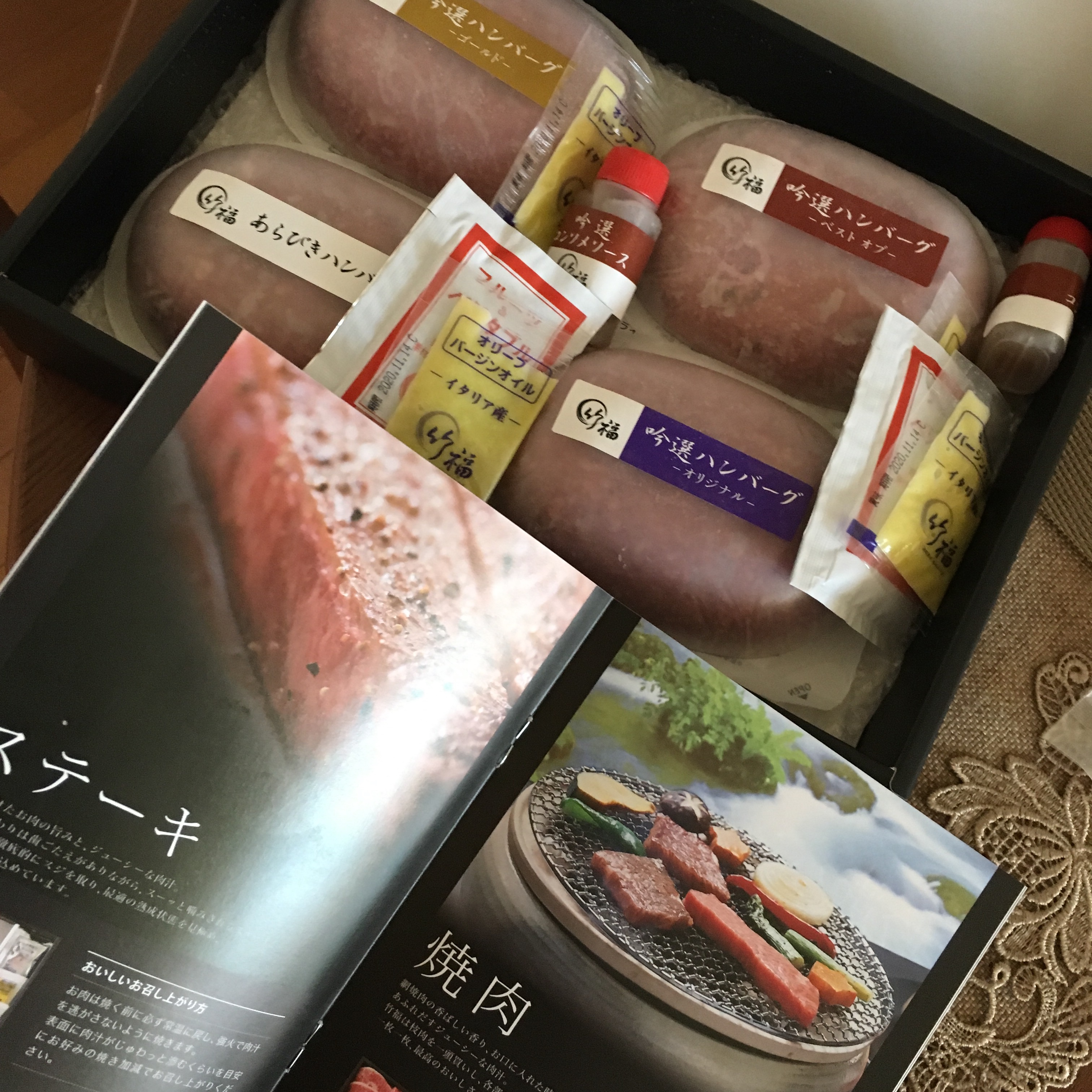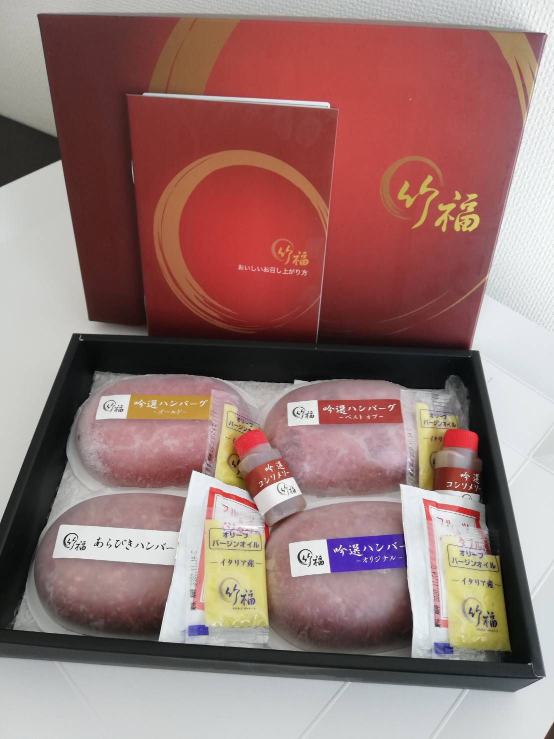精肉店の特徴を生かして希少部位を贅沢に使用し、1cm角に切ったヒレ肉が入った「ベストオブ」、グレードの高い国産黒毛和牛の部位を使用した「ゴールド」、一頭買いした枝肉から、ハンバーグに適した部位をミンチ材に使用した「オリジナル」、食べ応えのあるあらびき赤身ミンチで仕上げた「あらびき」、4種類のハンバーグを食べ比べながら、好みのハンバーグに出会えるセットです。