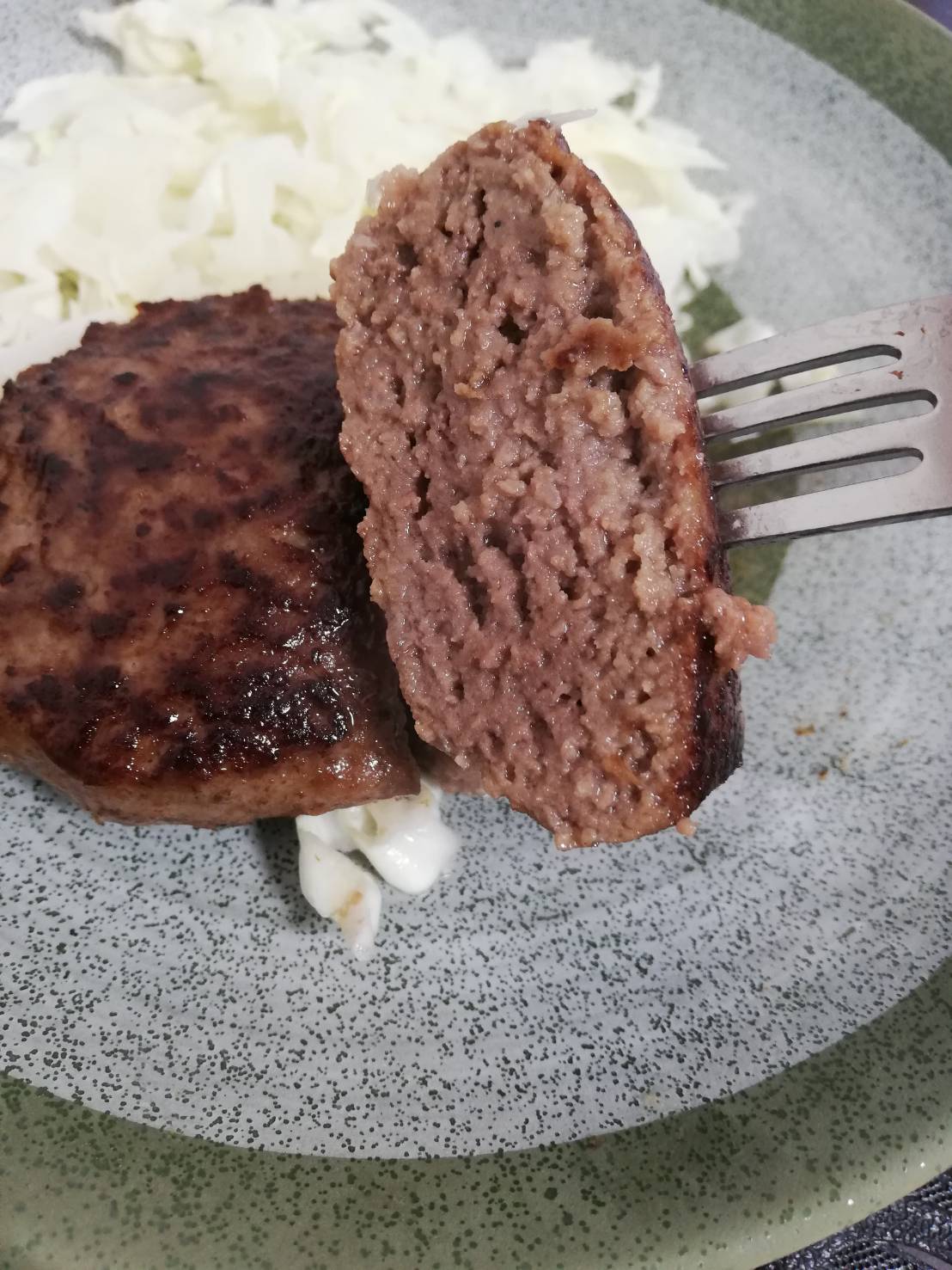 ふわふわハンバーグの中の柔らかいヒレ肉。どちらも柔らかいのですが、食感が違い、なんと楽しく幸せなハンバーグだろうと感動しました。