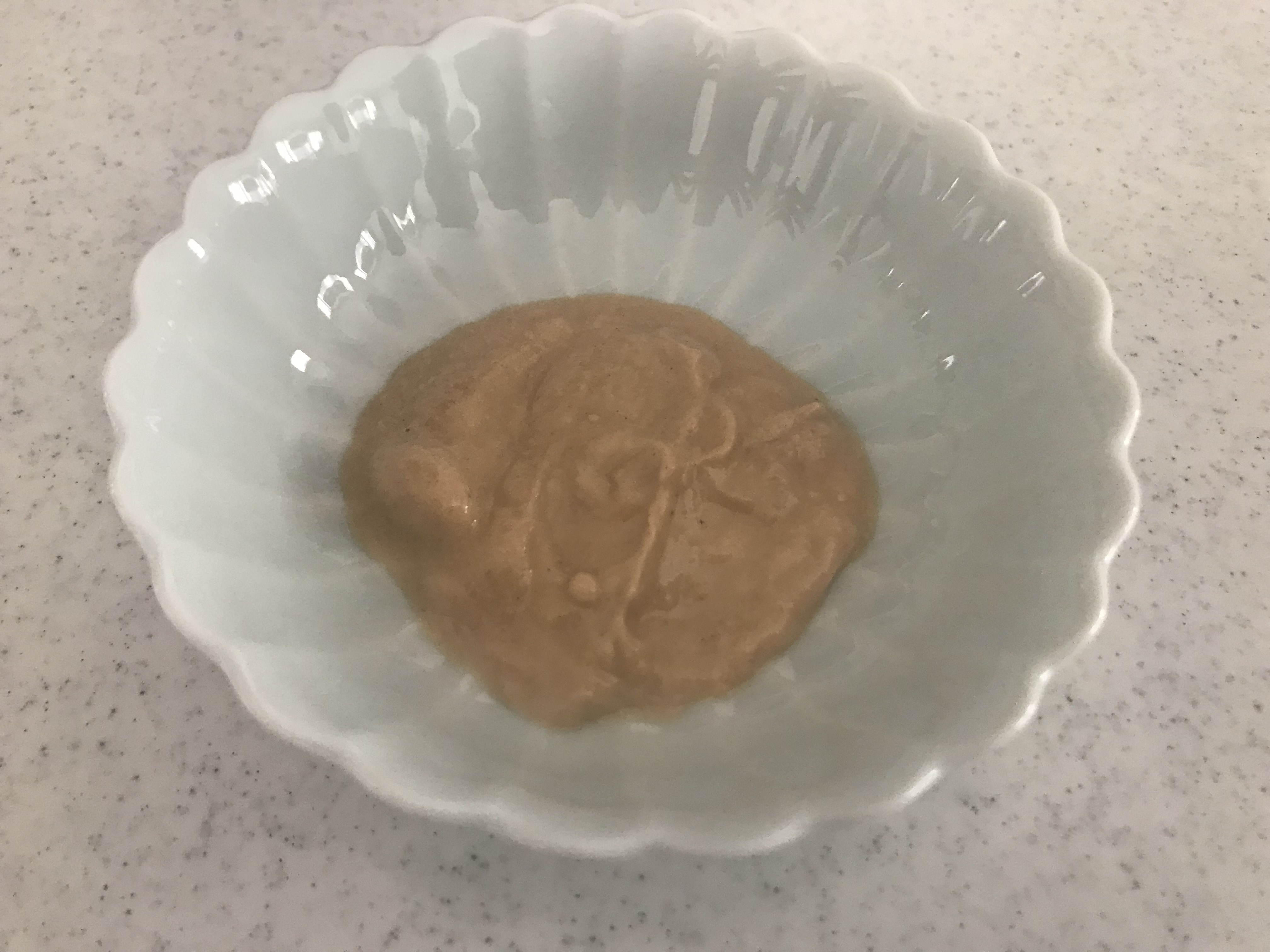 瓶を開けると見た目は、なめらかな胡麻ペースト。通常、お鍋用の胡麻タレより濃厚で、ねり胡麻ペーストを少し柔らかくした見た目です。