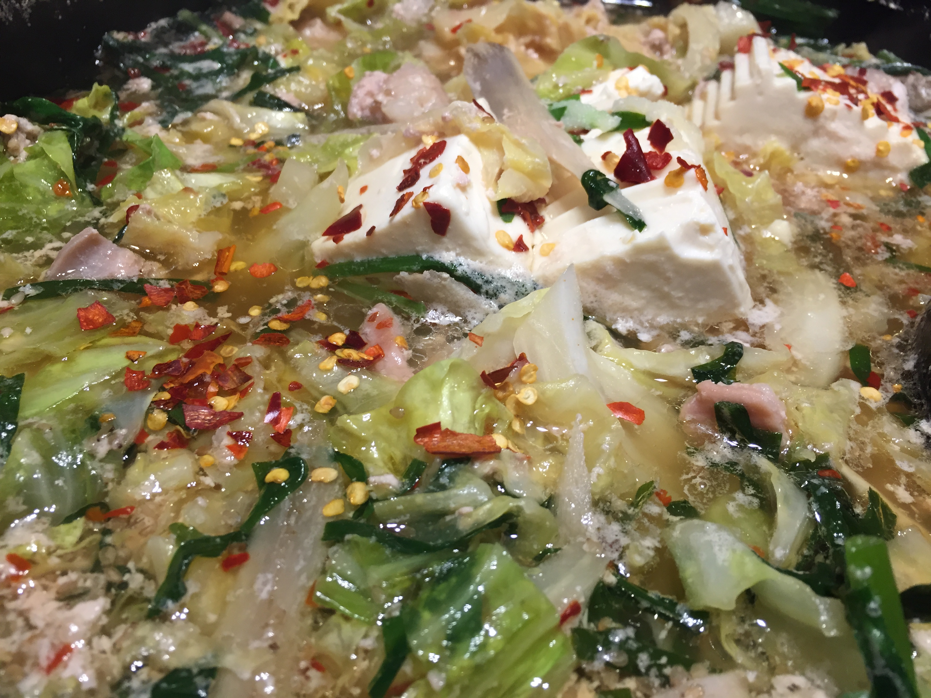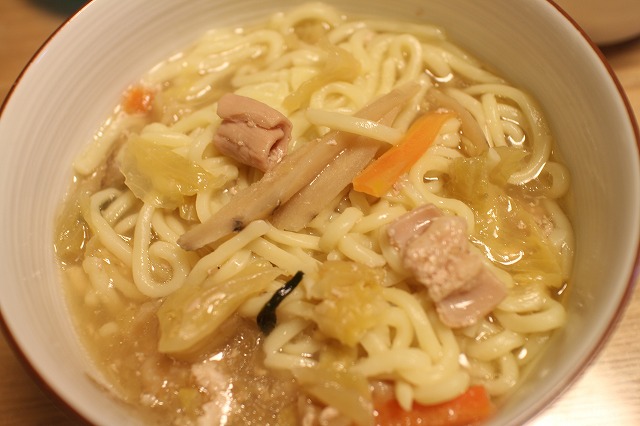 ある程度具材が減ってきて、締めのちゃんぽんにたどり着く頃にはスープが煮詰まったせいか、しょっぱめになっていたので水を足して調整してからちゃんぽん麺を入れました。