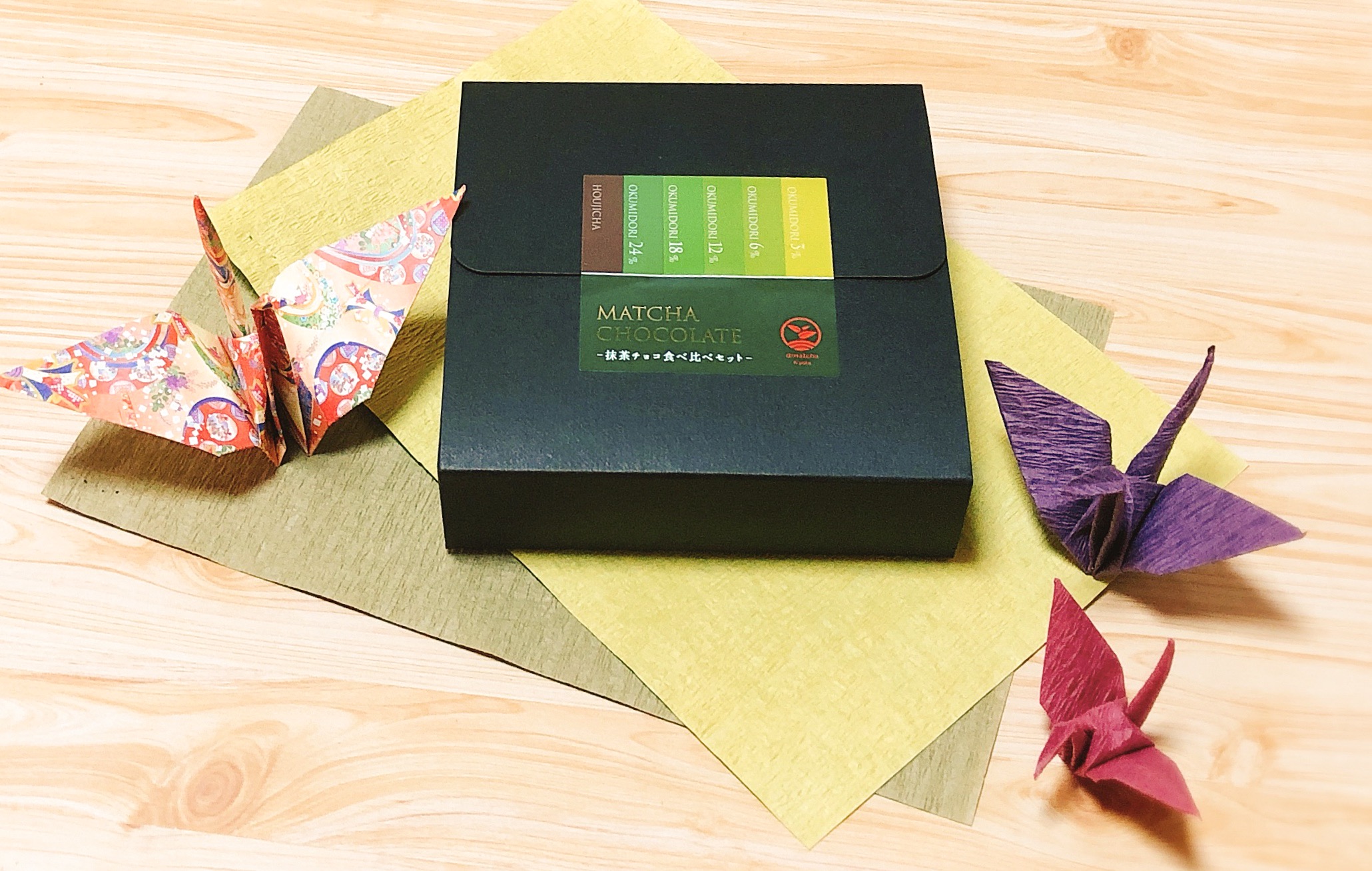 抹茶の濃度が異なる、抹茶チョコレートを食べ比べできる商品です。