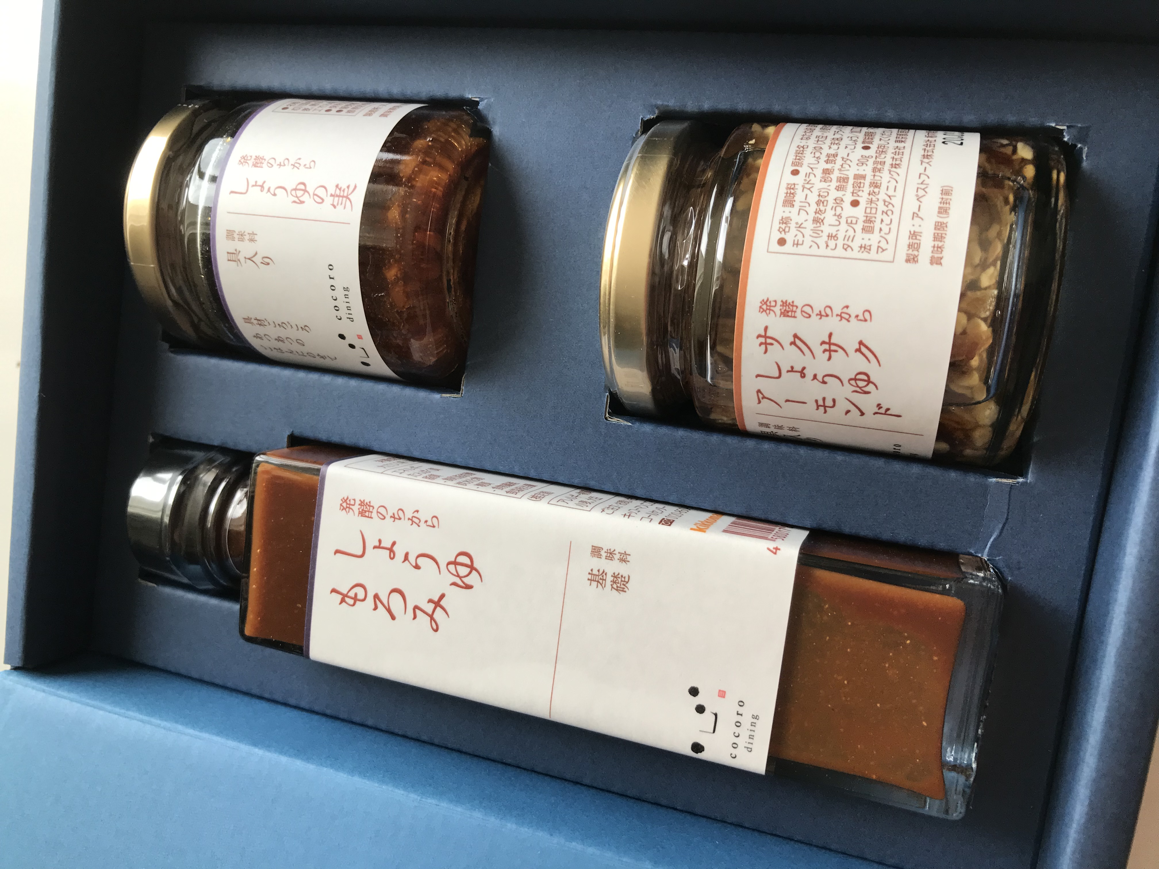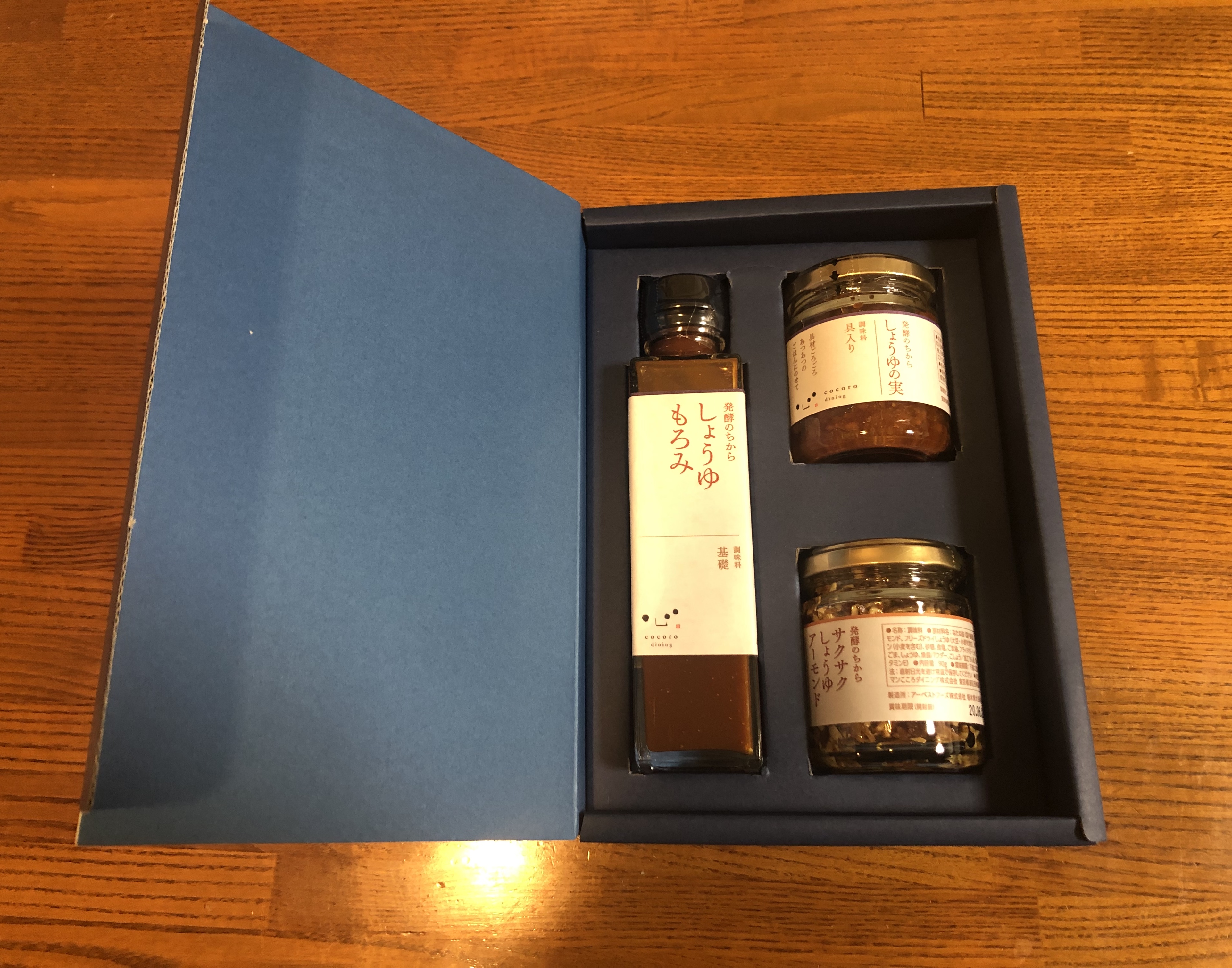 しょうゆづくりで発酵・熟成段階にあるものを「しょうゆもろみ」といいます。発酵熟成を終えた大豆や小麦がそのまま残っていて、コクのある熟成味噌のような濃厚なうま味と香りが味わえるのが特徴。基本の「しょうゆもろみ」と、「しょうゆもろみ」をフリーズドライにしてアーモンドとブレンドした「サクサクしょうゆアーモンド」、そして大豆と大麦、唐辛子発酵調味料を合わせた「しょうゆの実」の三品セットをセットにしました。毎日の食卓を調味料ひとつで美味しく、「発酵のある暮らし」が楽しめます。