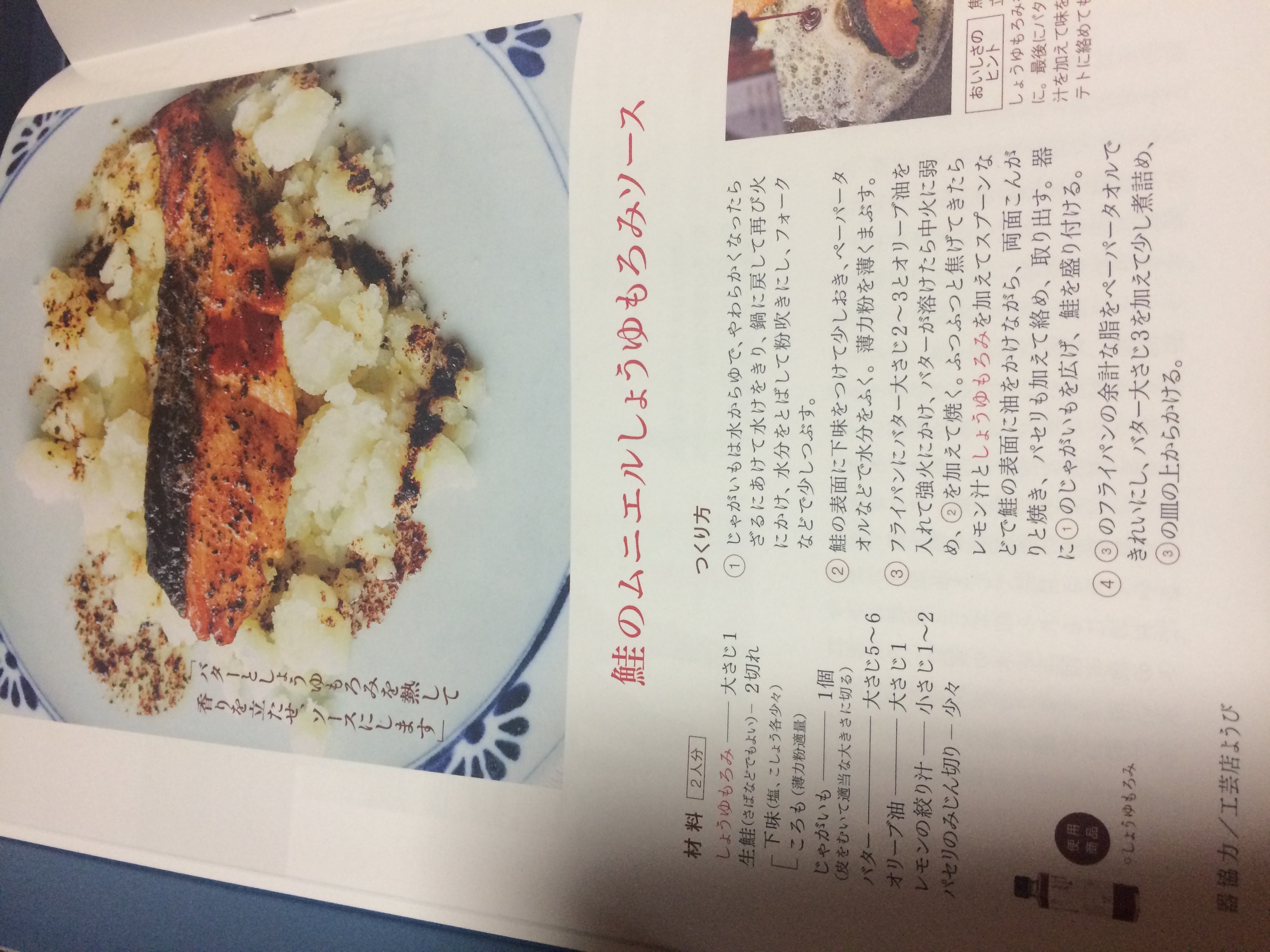 冊子に鮭のムニエル・しょうゆもろみソースと言うレシピがあったので、それを参考に自宅では鮭の下味に使ってそのままフライパンで焼いてみました。