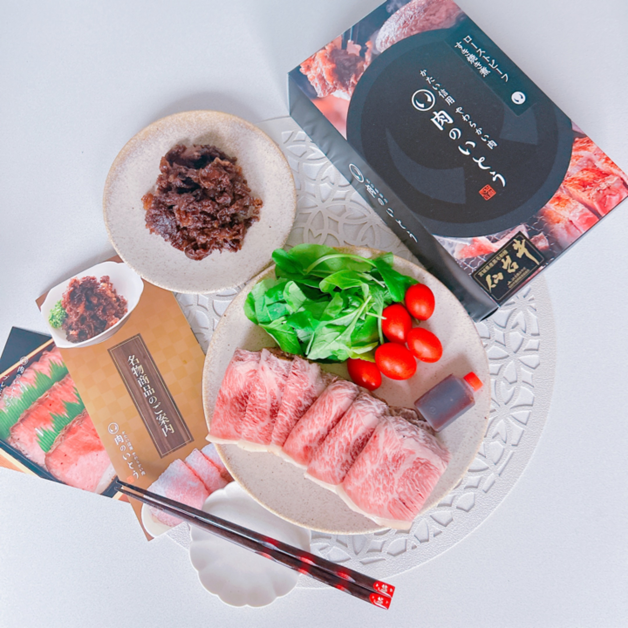 最高級A5ランクの仙台牛を使用した「ローストビーフ」と「すき焼き煮」のセットです。「ローストビーフ」は、1つ1つ手作業で丹念に味付けし、時間をかけじっくり焼き上げているので、和牛本来の味が堪能できます。面に美しい焼き色がつき、中心部はやわらかくジューシーなレアの焼き加減。ひと口頬張るたび、上品な香りとともにとろけるような食感が口いっぱいに広がります。「すき焼き煮」には50年の職人歴を誇る老舗肉店の店主が厳選したA5ランクの仙台牛を使用しています。仙台牛ならではの、きめ細やかで柔らかな赤身の旨みと、脂身の濃厚な甘みが口の中で広がります。一口頬張れば、醤油と砂糖で甘辛くじっくりと煮込まれた香りがふわっと広がり、ご飯が止まらなくなります。最高級仙台牛を2種類の食べ方で堪能できます。専用ボックスに入って届くので、贈り物におすすめです。