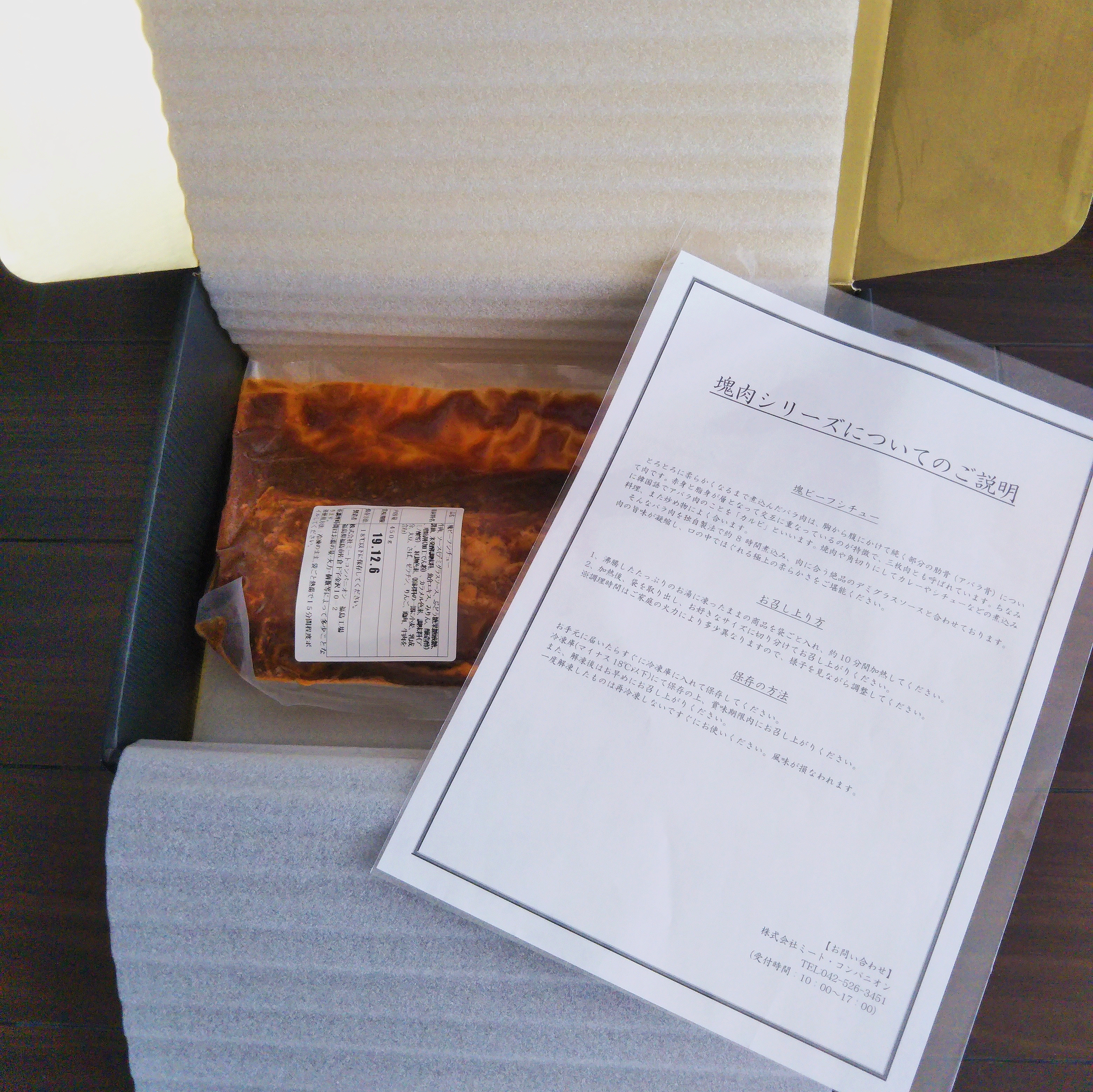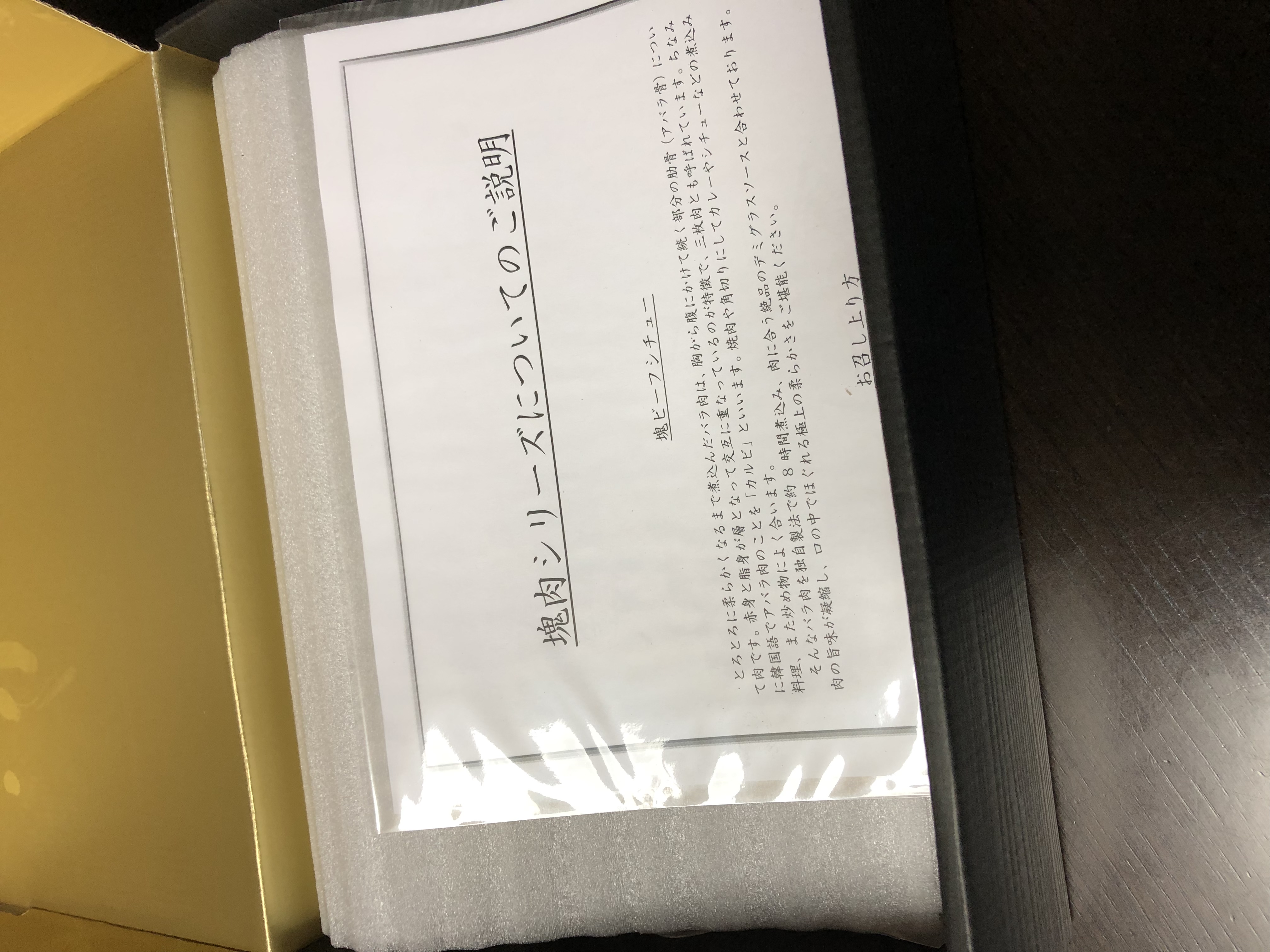 外が黒で内側が金色のおしゃれな箱に入った、インパクト大の塊肉!