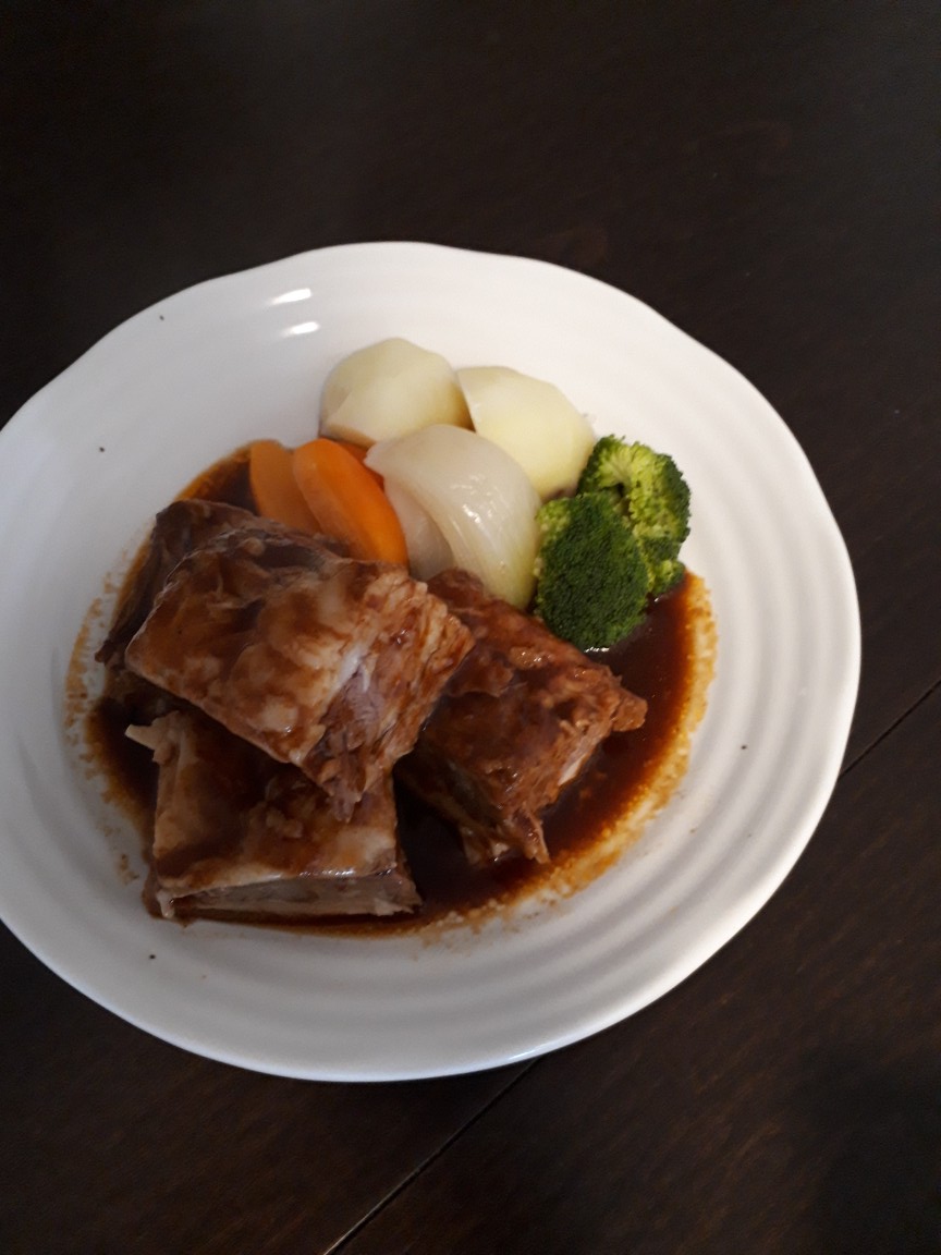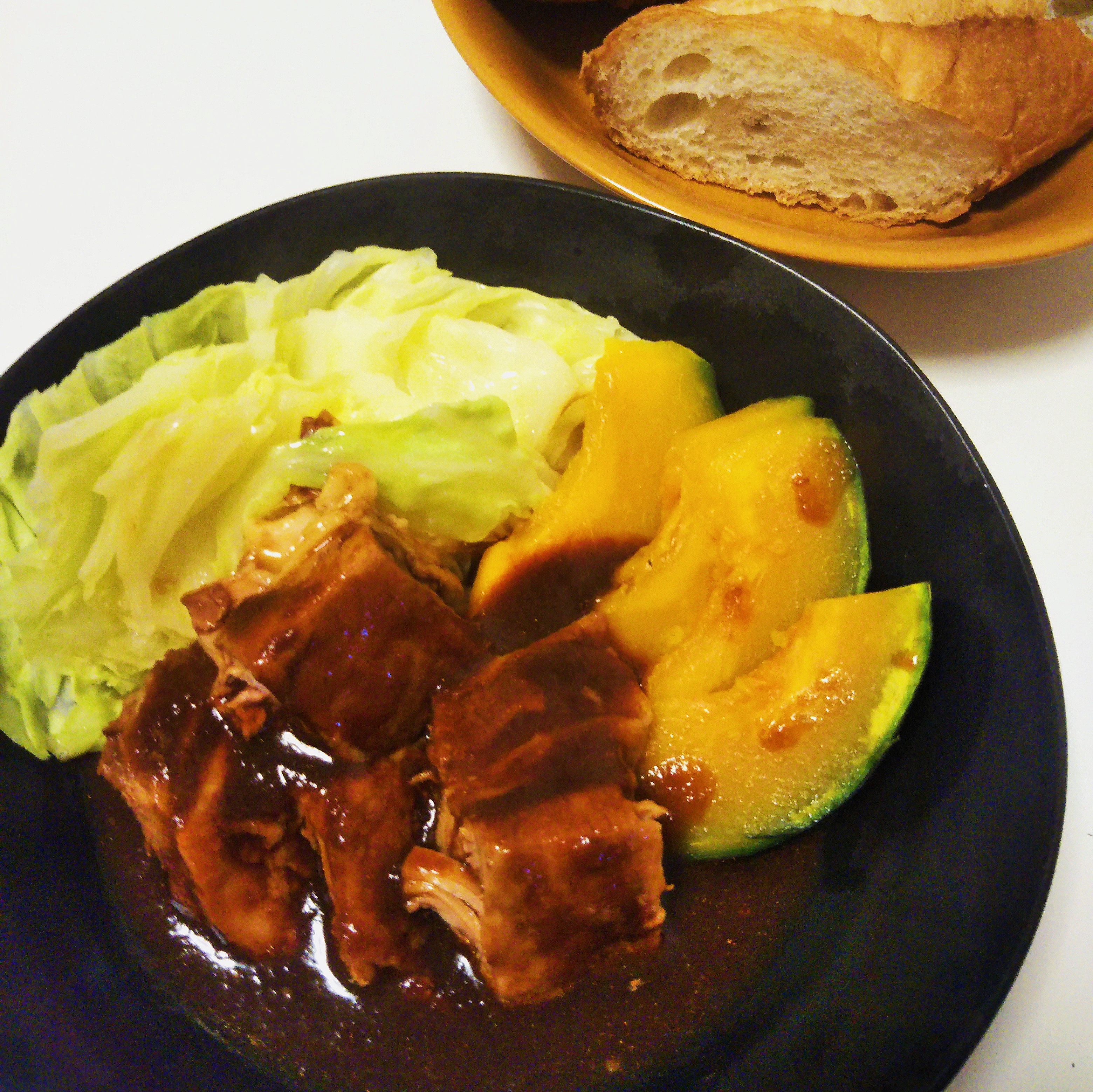 春キャベツと南瓜を合わせて食べましたが、ソースも甘過ぎず濃厚過ぎず(赤ワインで煮込みました!というような味が個人的に少し苦手なので)、どんな付け合わせでも、ご飯にもパンにも合うだろうなぁと思いました(今回はフランスパンを合わせました)。