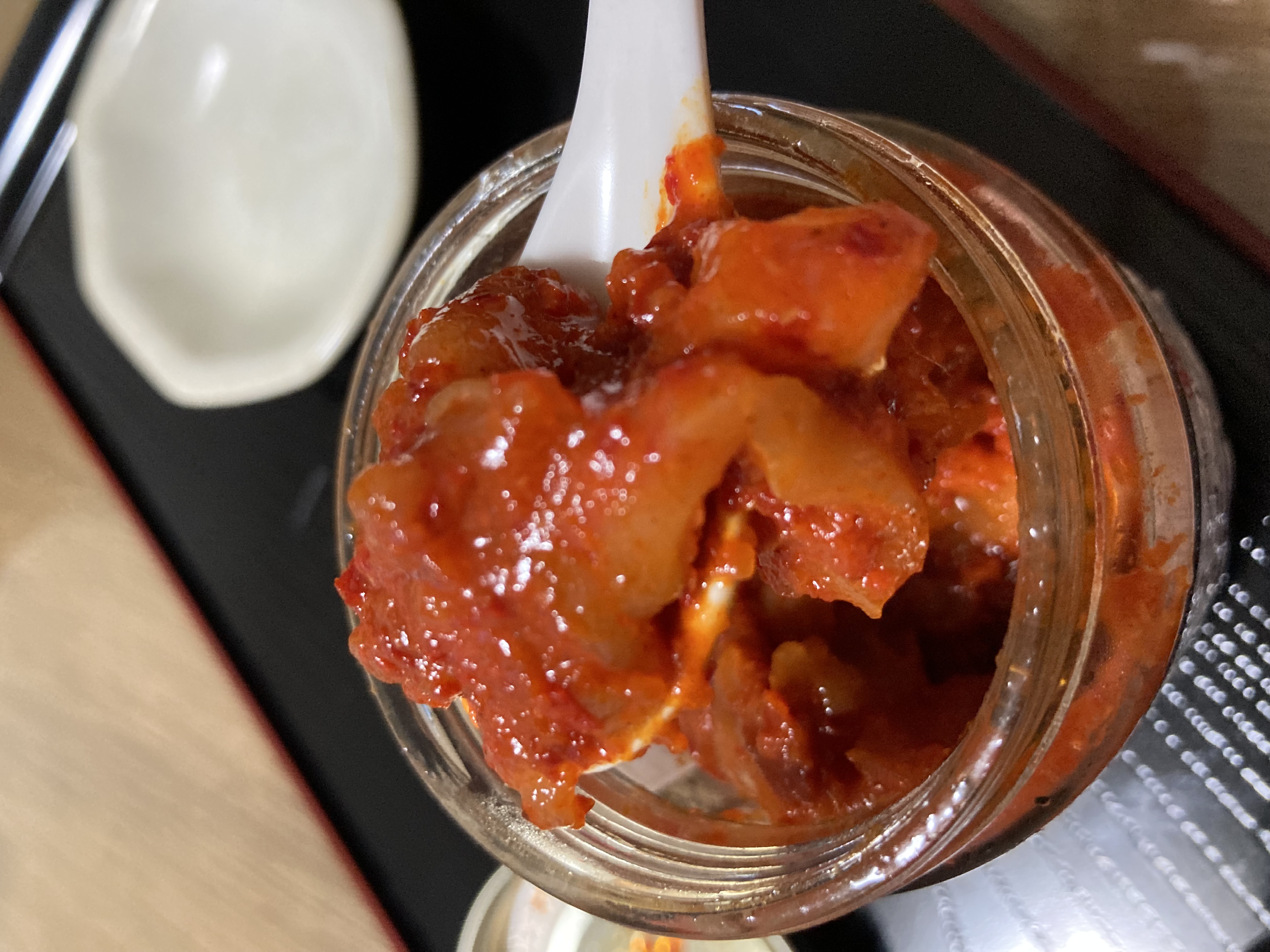 いつも食べていた他の鮭キムチは辛って感じなのでそのつもりで食べたら まろやかな辛さで驚きました。