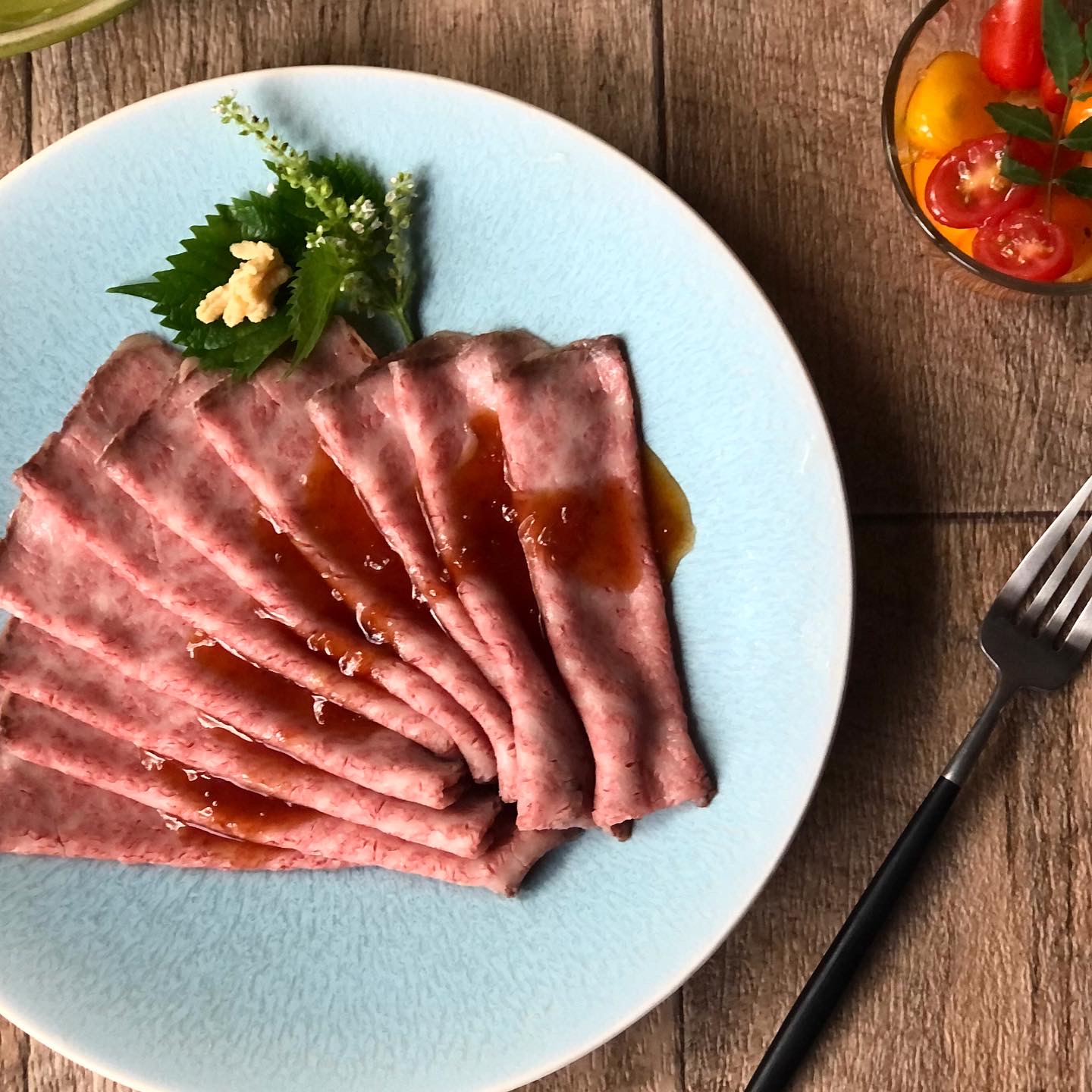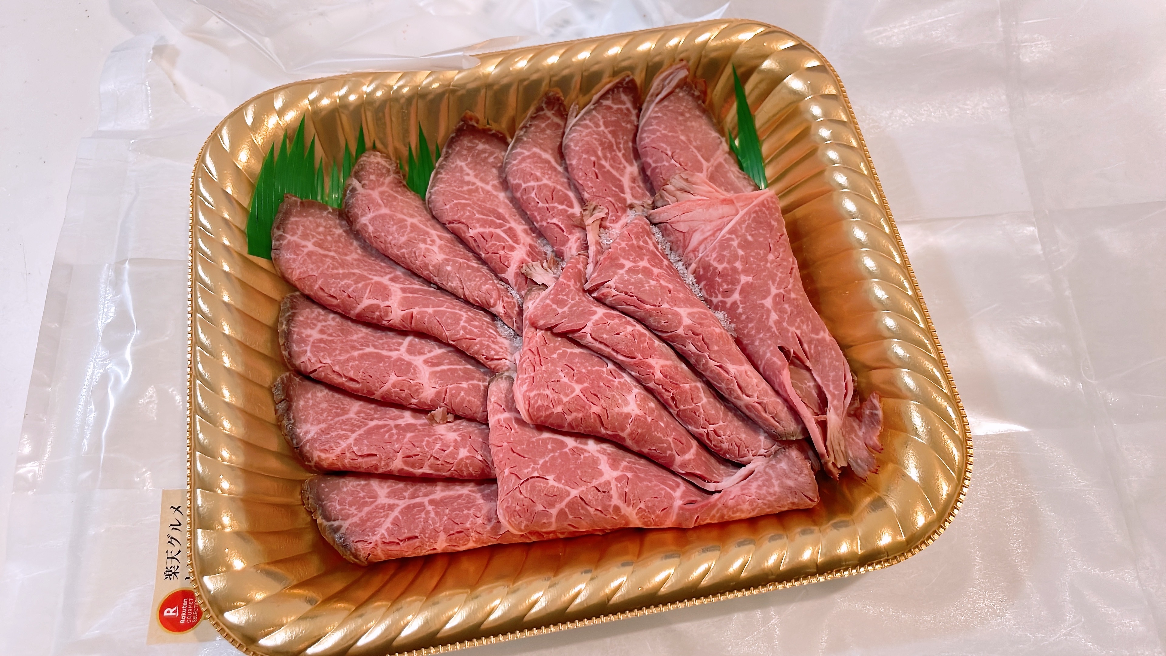 国産黒毛和牛の赤身肉を使用し、薄くスライスされたものが、冷凍された状態で届くので、冷蔵庫で解凍してお皿に並べれば、それだけでご馳走としてテーブルに出すことができます。