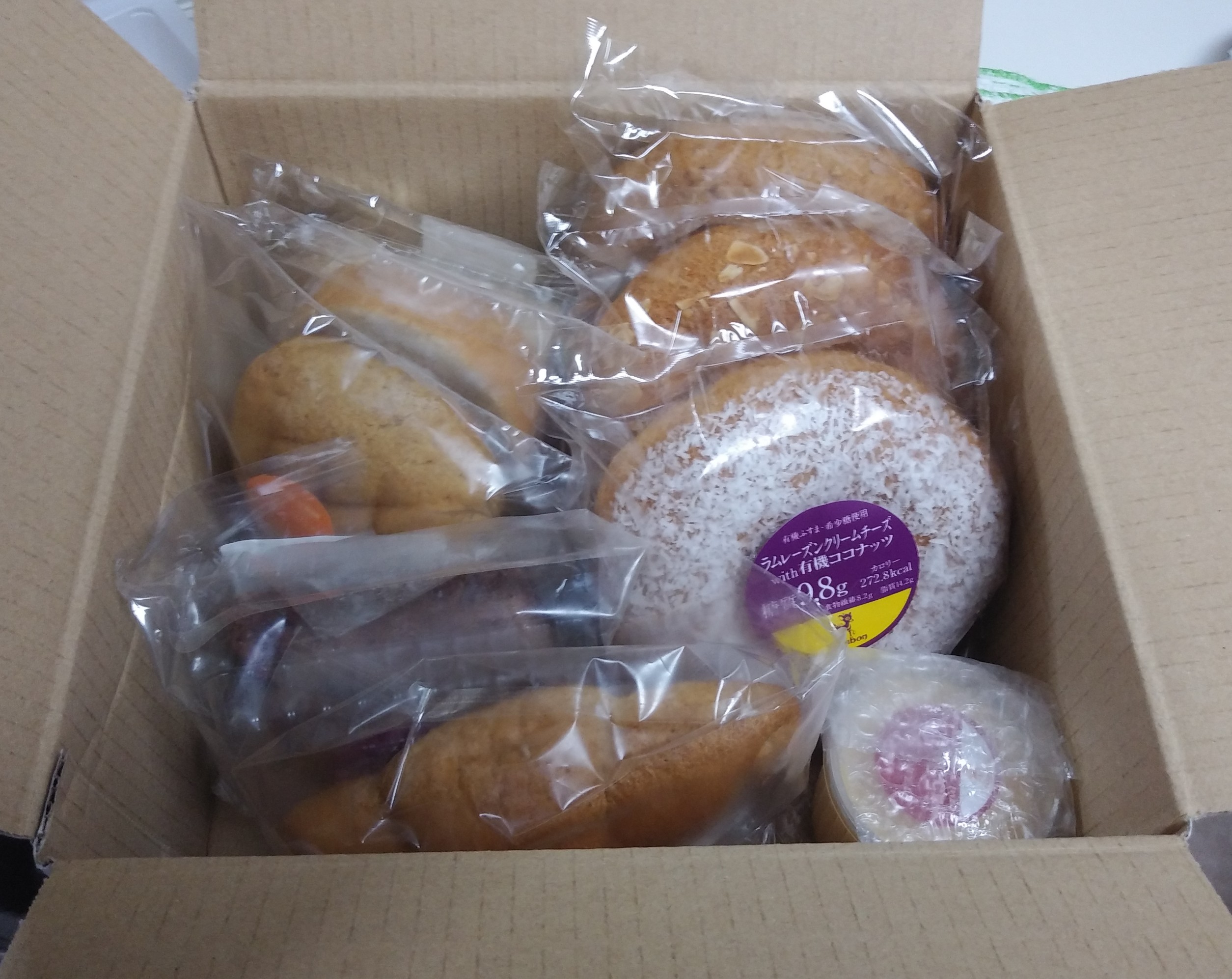 有機ココナッツがふんだんにかかっていて中にはクリームチーズとラムレーズンが入っていました。ラムレーズンも美味しかったのでもっと入っててほしかったです。