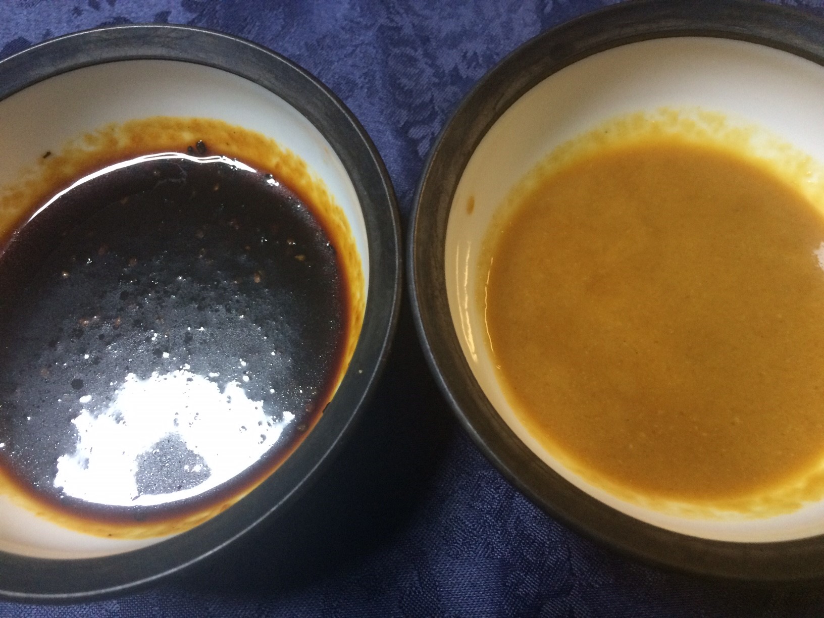 2種類のソースもついていて、熟成ローストビーフソースと玉葱わさびソースです。まずは炊き立てのご飯と一緒に熟成ローストビーフソースをつけて食べます。「おいし~♪」濃厚なソースがローストビーフと絡み合って最高です。ソースが味に深みを出してくれています。お肉も柔らかく旨みもギュッと濃縮されている感じで、美味しい!としか言いようがありません!