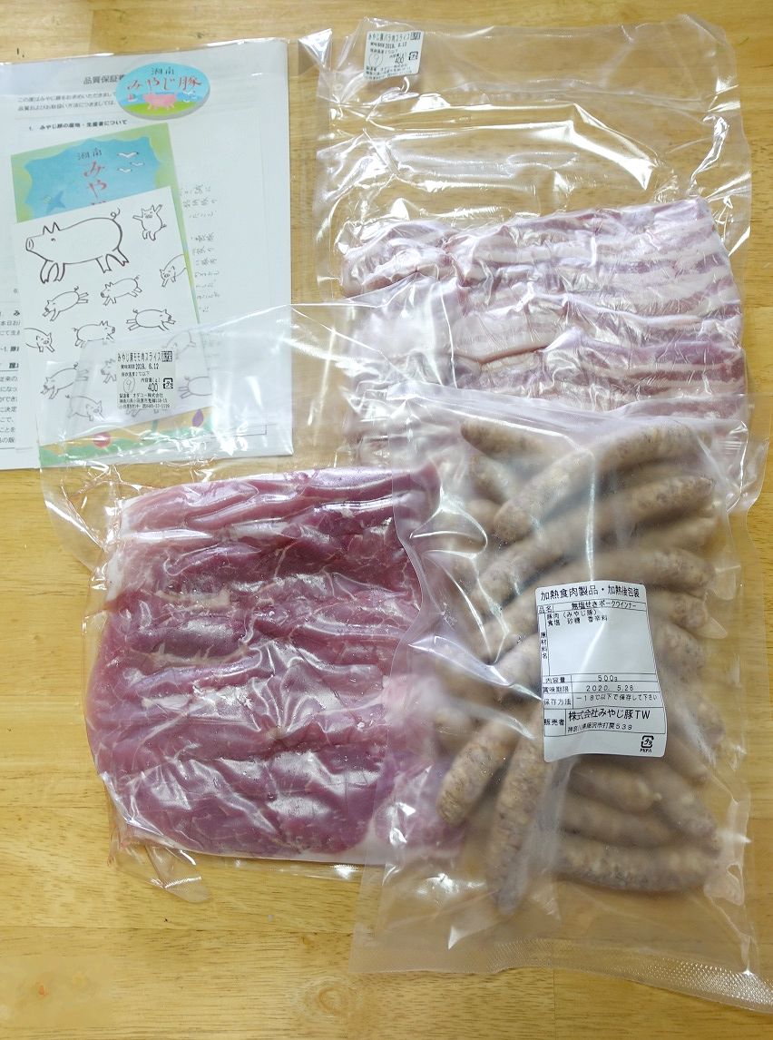 湘南のブランド豚「湘南みやじ豚」の豚肉&無添加ソーセージのセットです。