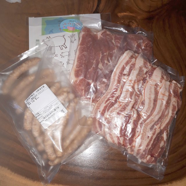 他のお肉が食べられなくなりそうな美味しいお肉のセットです。BBQが自宅で簡単に楽しめるように、豚肉のバラともも、ソーセージがセットになっています。
