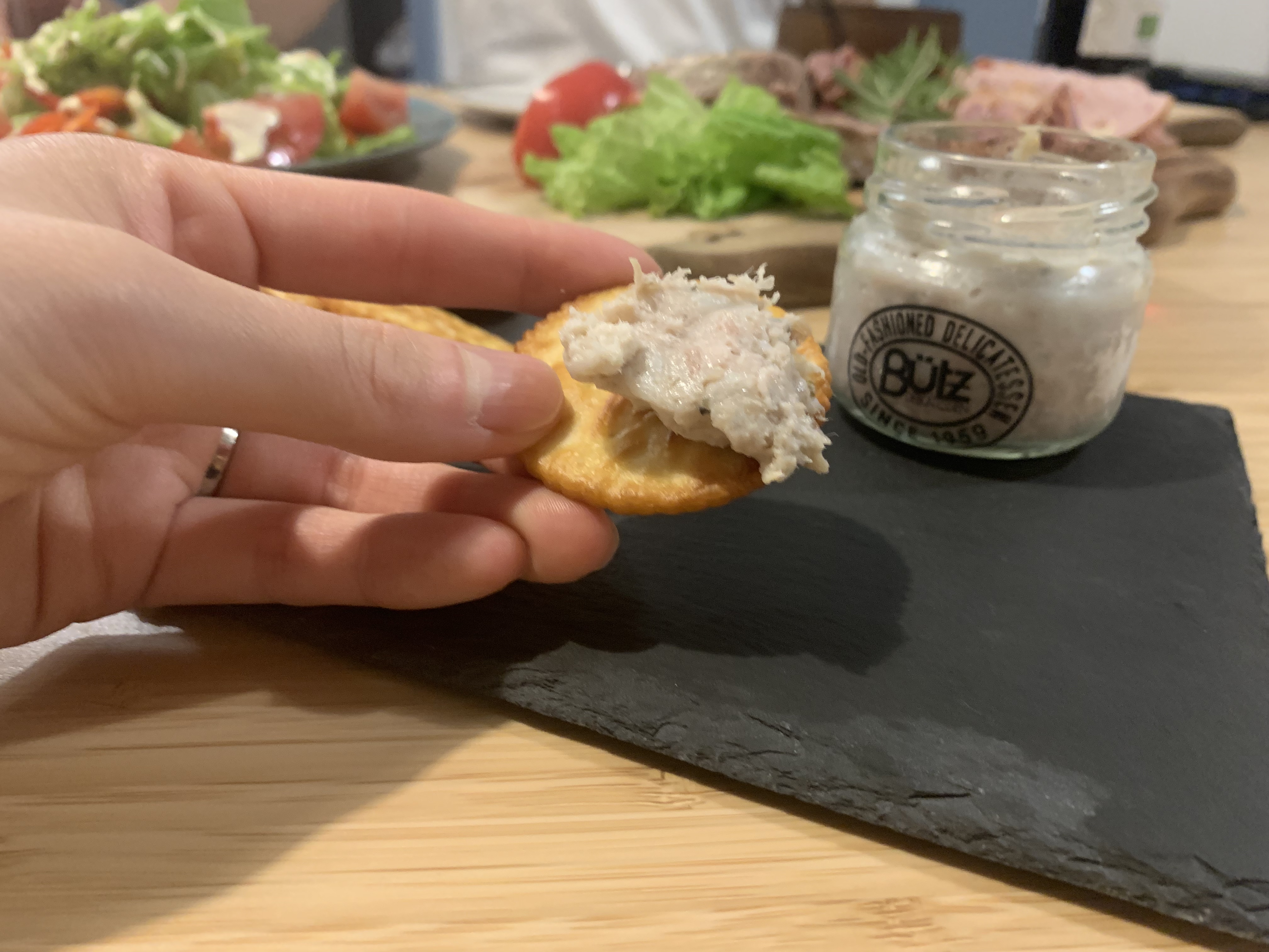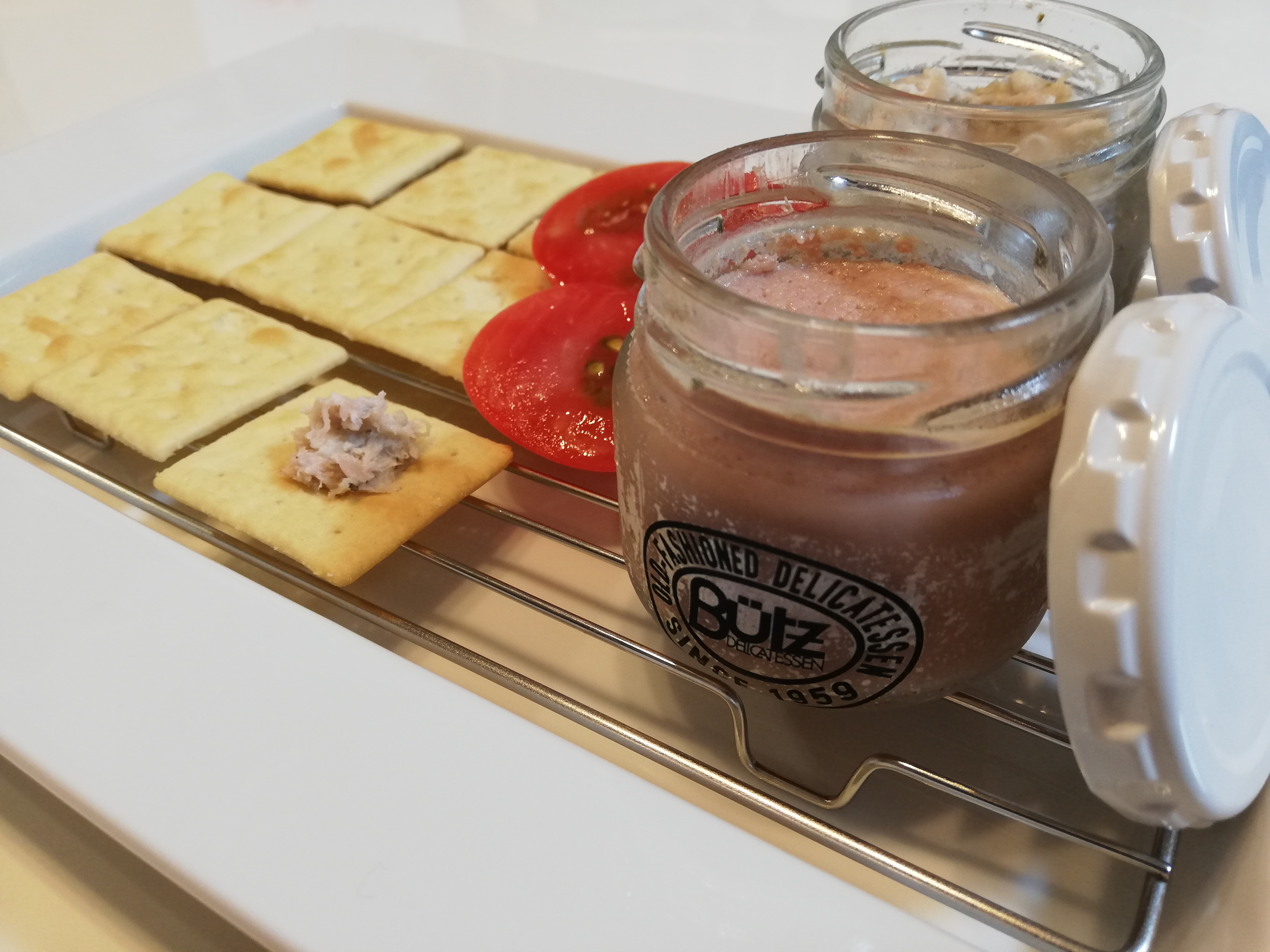 レバーペーストに比べると塩味も強くインパクトのあるお味です。少量で存在感を感じ、お酒のあて向きです。高級ソーセージをイメージしてもらえたらいいかもしれないです。ワイン好きな方はお酒がすすむと思います♪