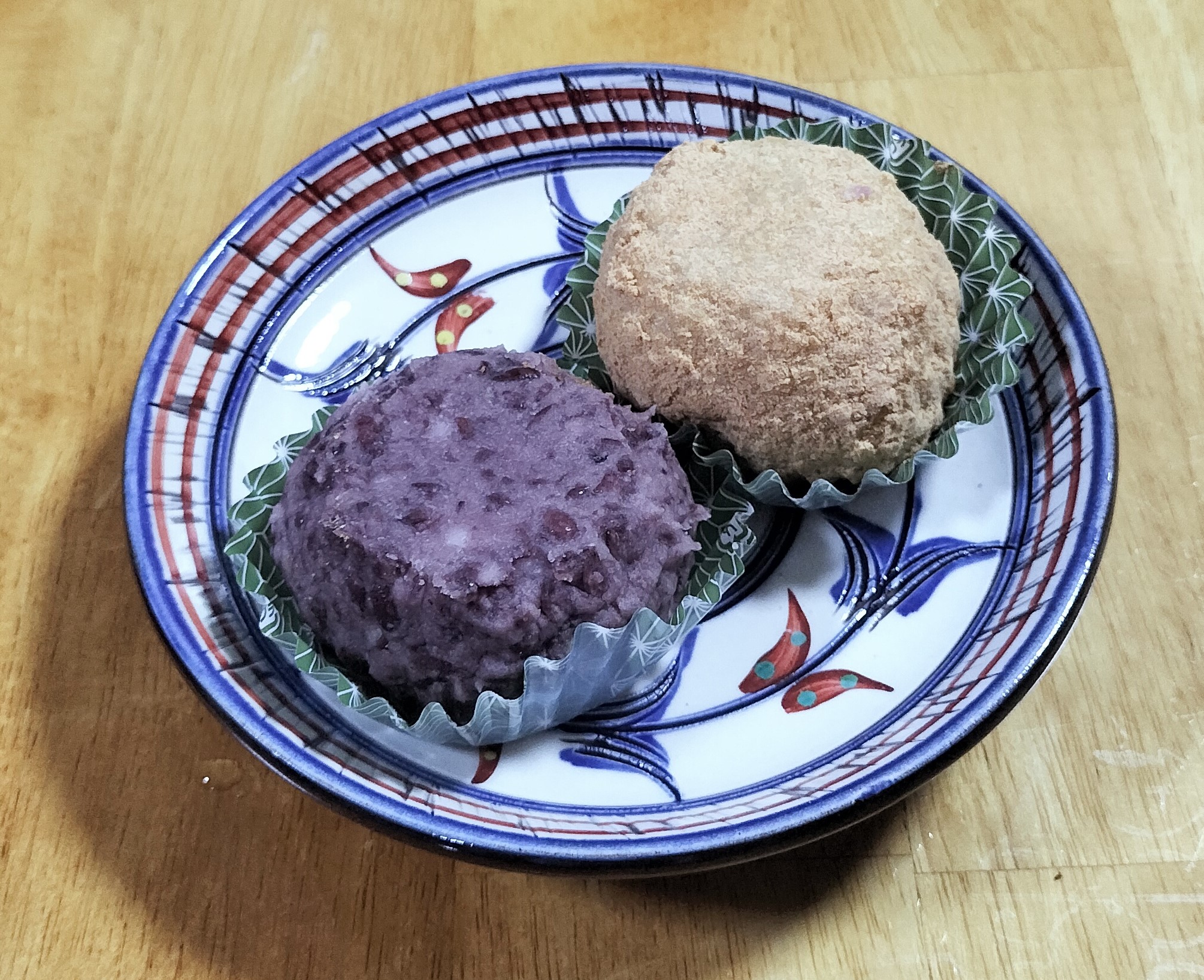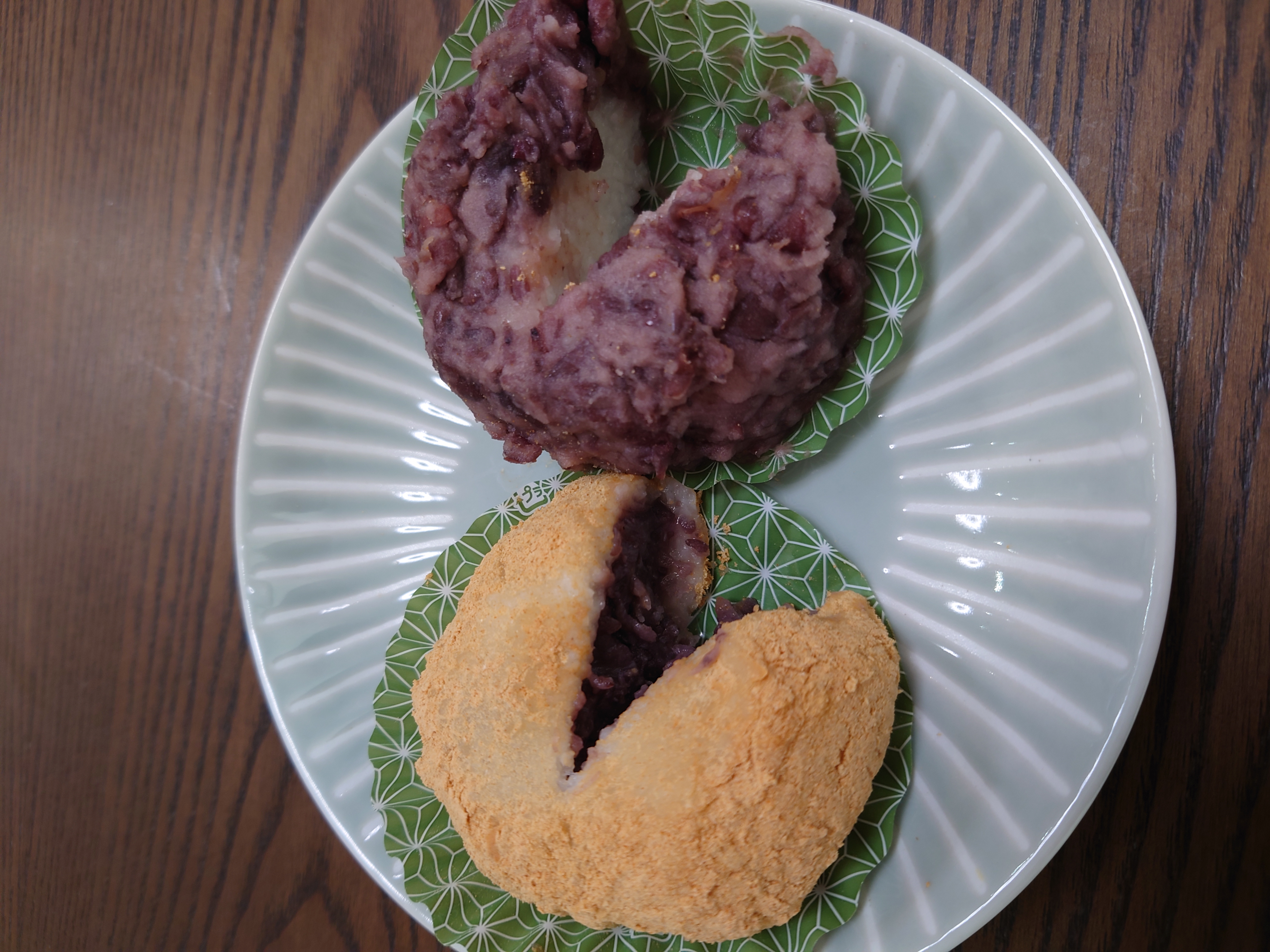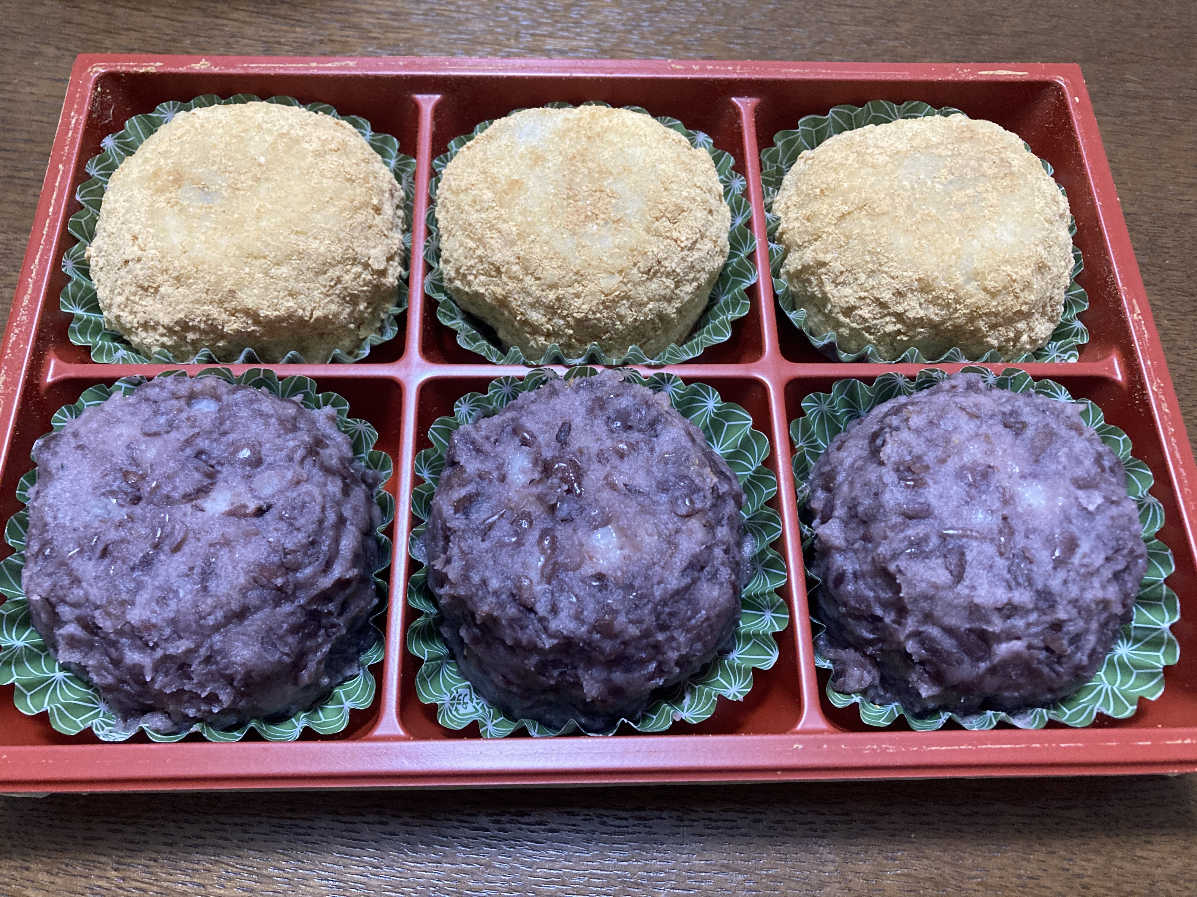 中の餅はご飯がやや細かめに潰されていて、もっちりし過ぎてなくて歯切れが良い感じでした。その中身をたっぷりの甘さ控えめな粒あんで包まれていて食べ応えがあるおはぎでした。