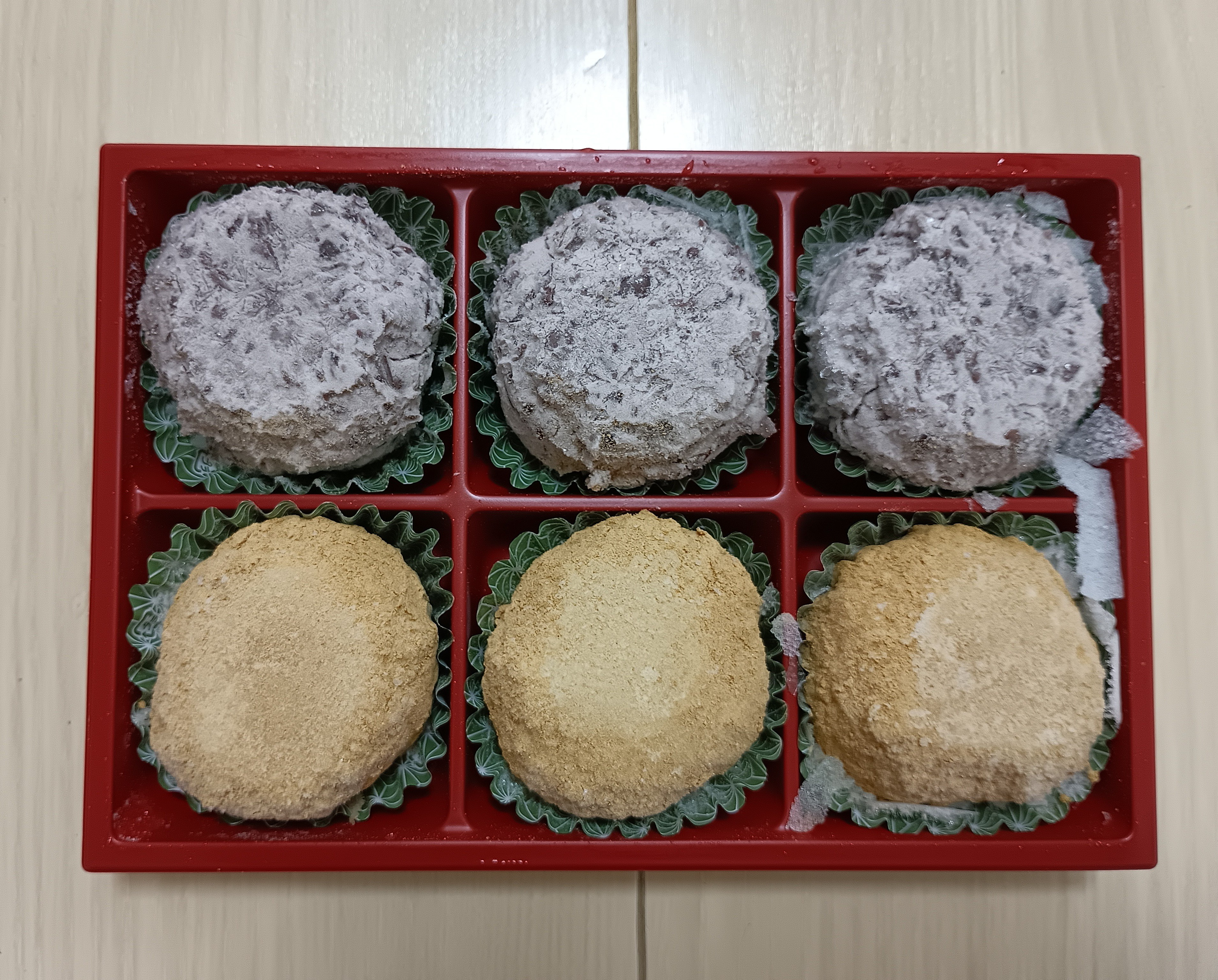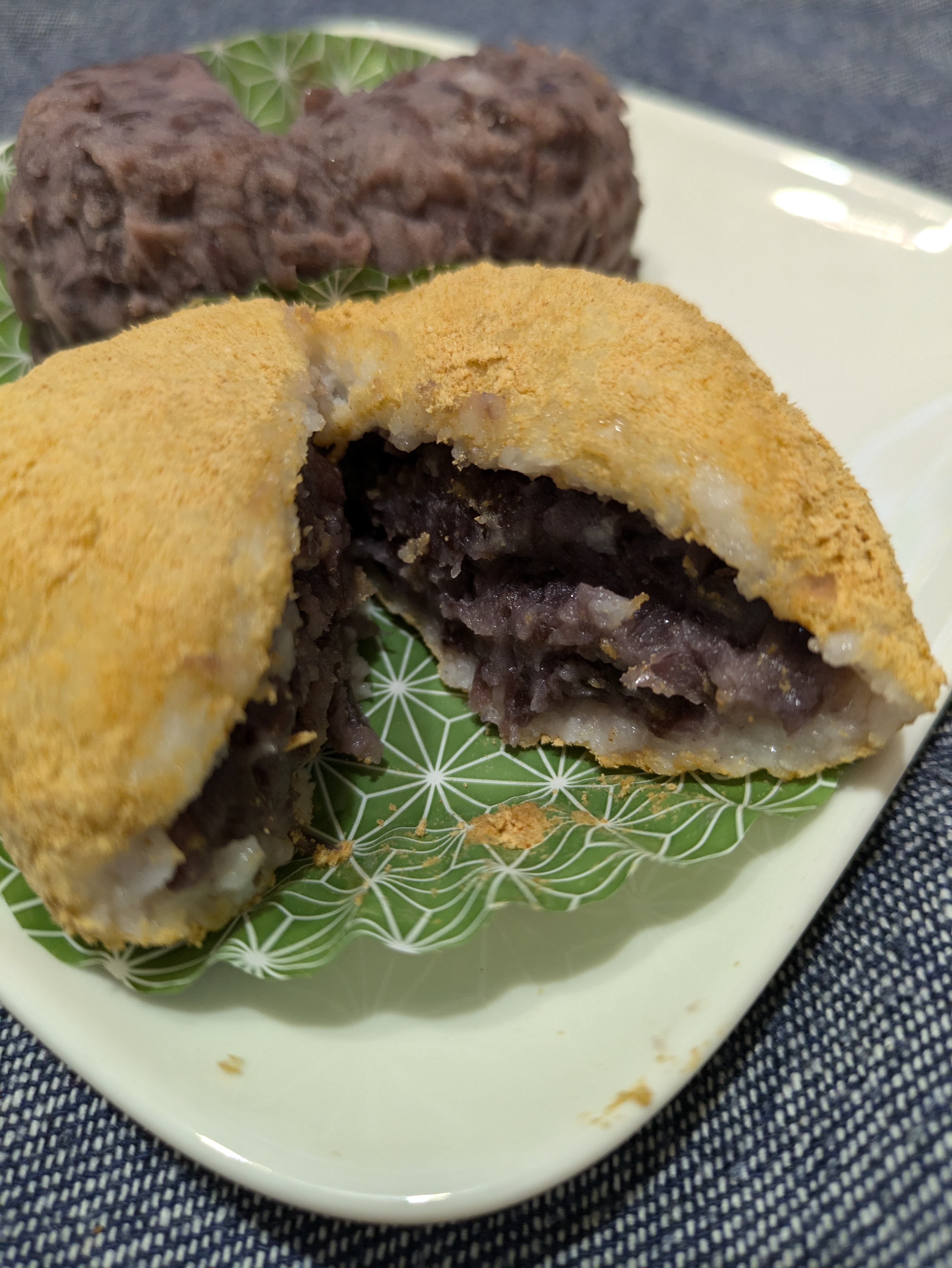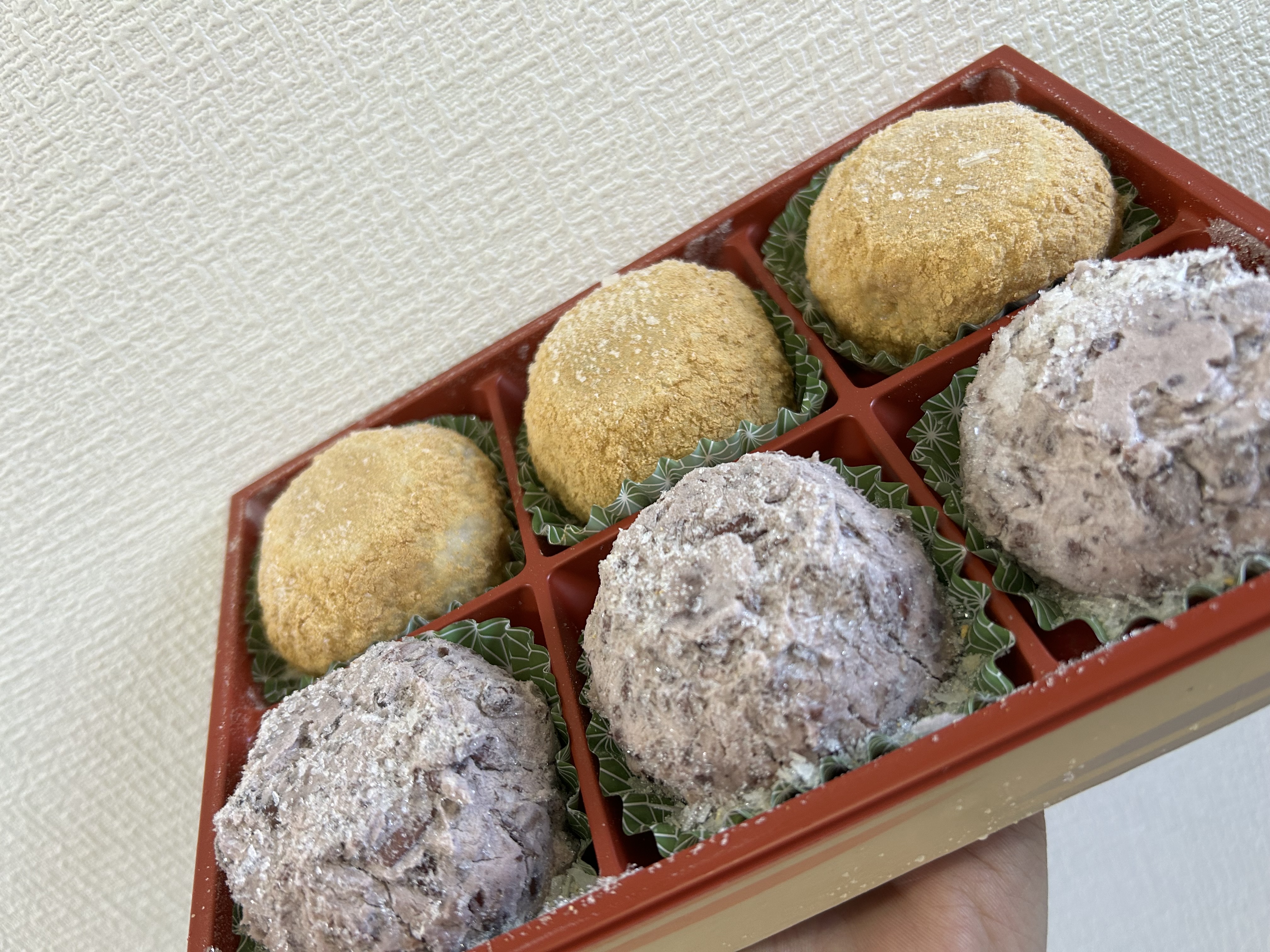 甘さ控えめなきなこを纏ったもちで、こちらもたっーぷりなあんこが包まれていました。あんこの甘さときなこの甘さが両方とも控えめなので食べた時にちょうど良い甘さになるんだと感じました。