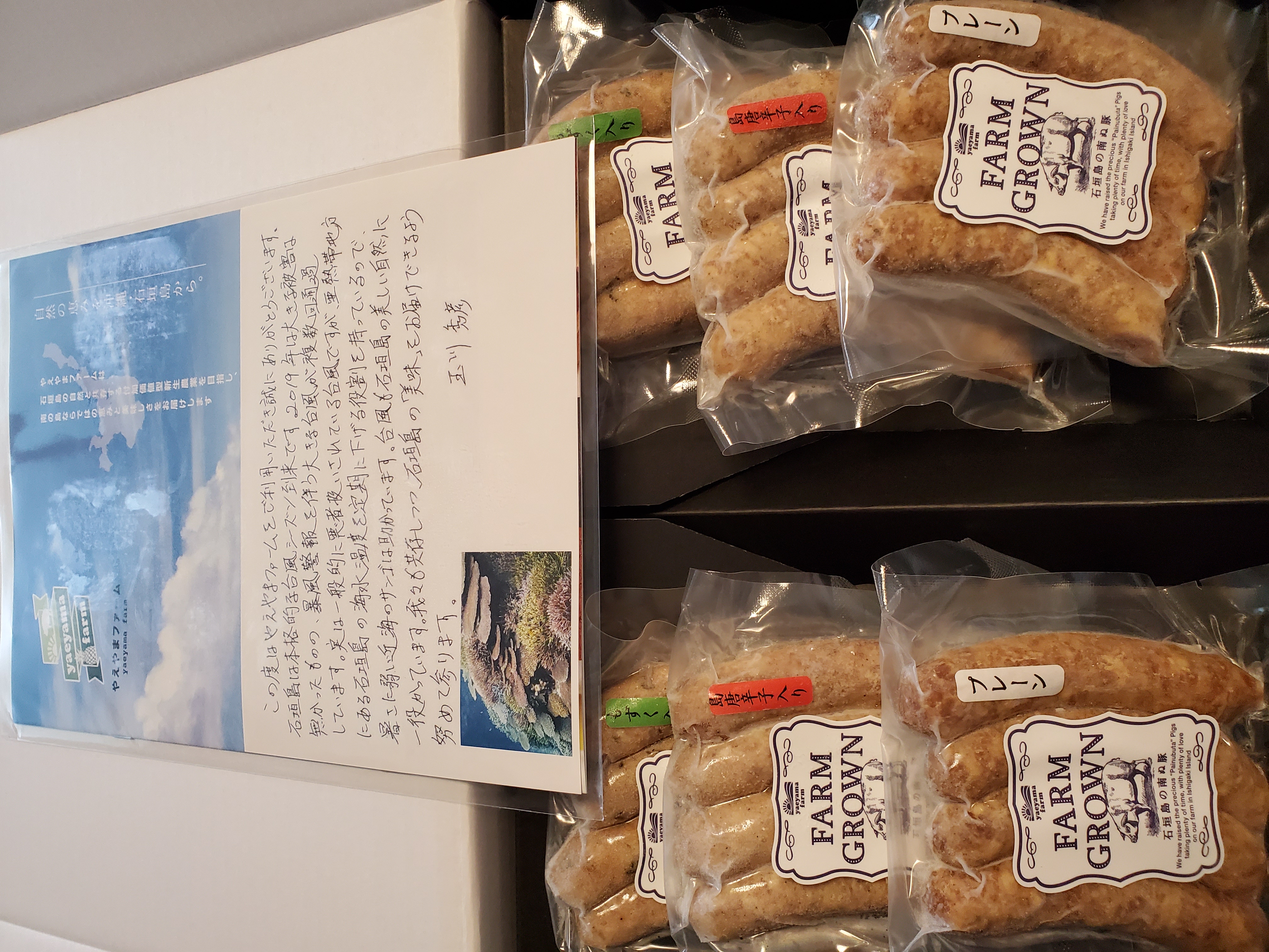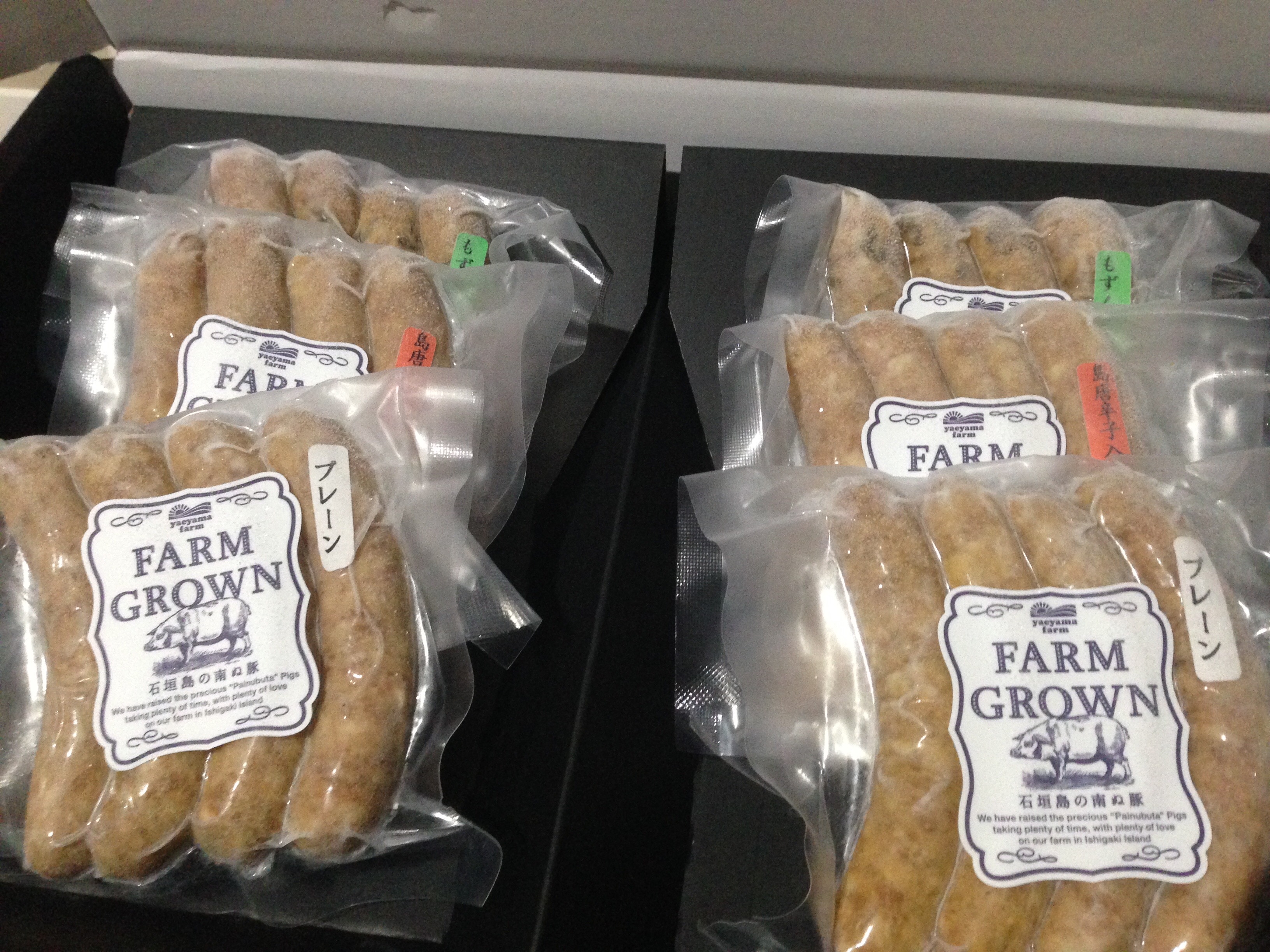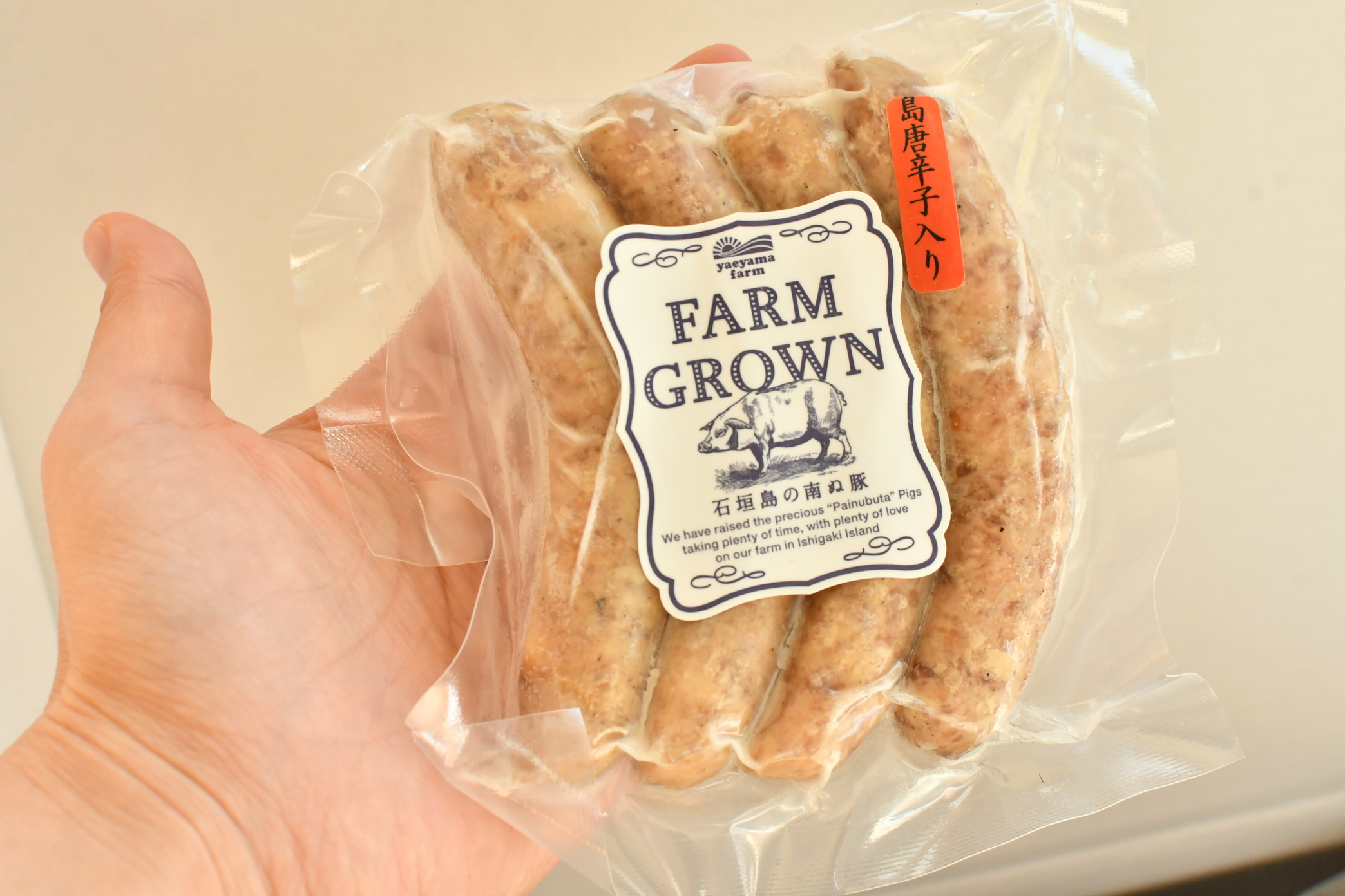 やえやまファームさんのソーセージは自社工場で絞ったパイナップルの絞りカス等で育てた「南ぬ豚」を使い、添加物一切不使用とのこと。