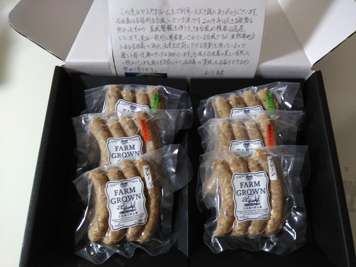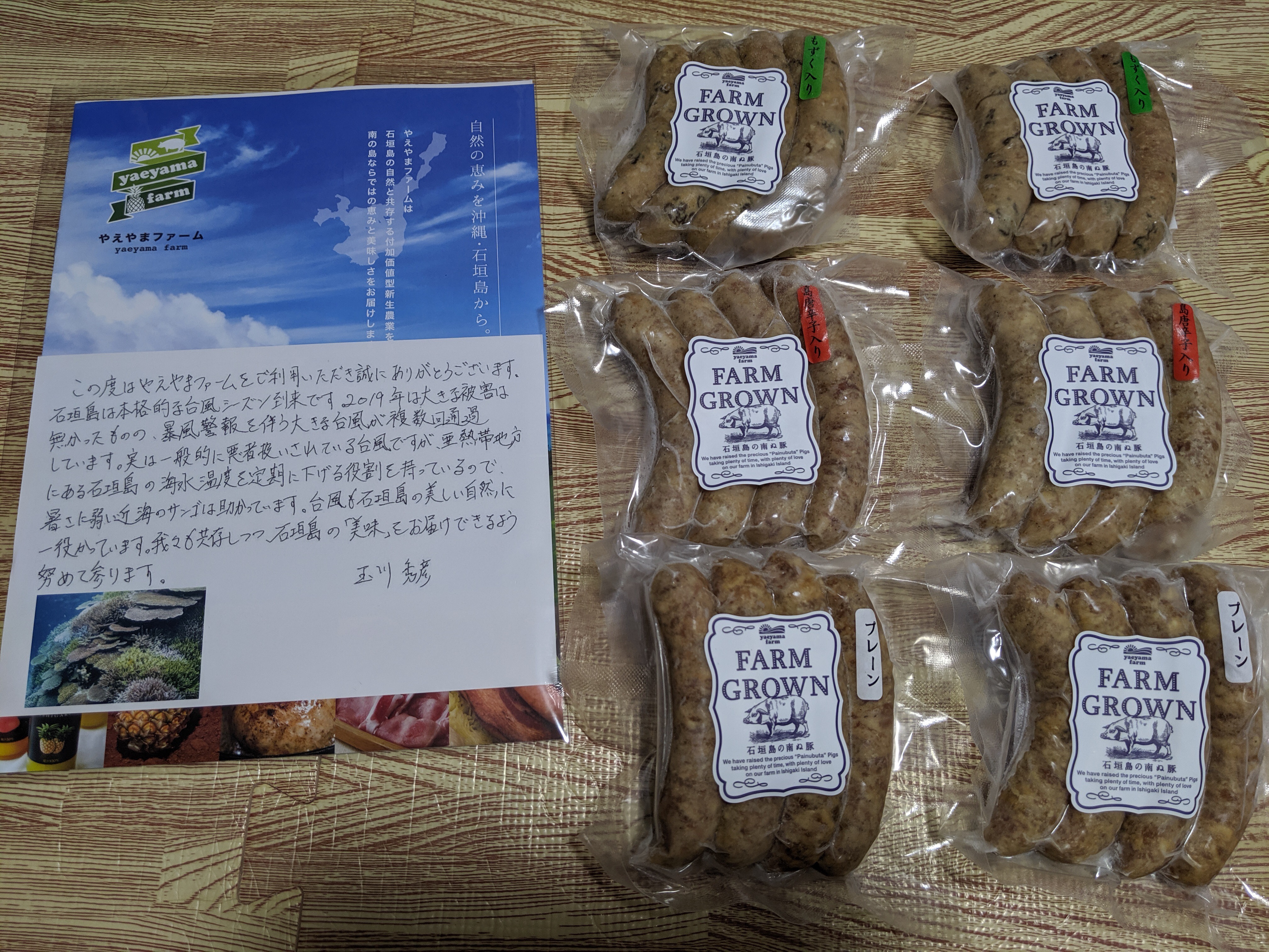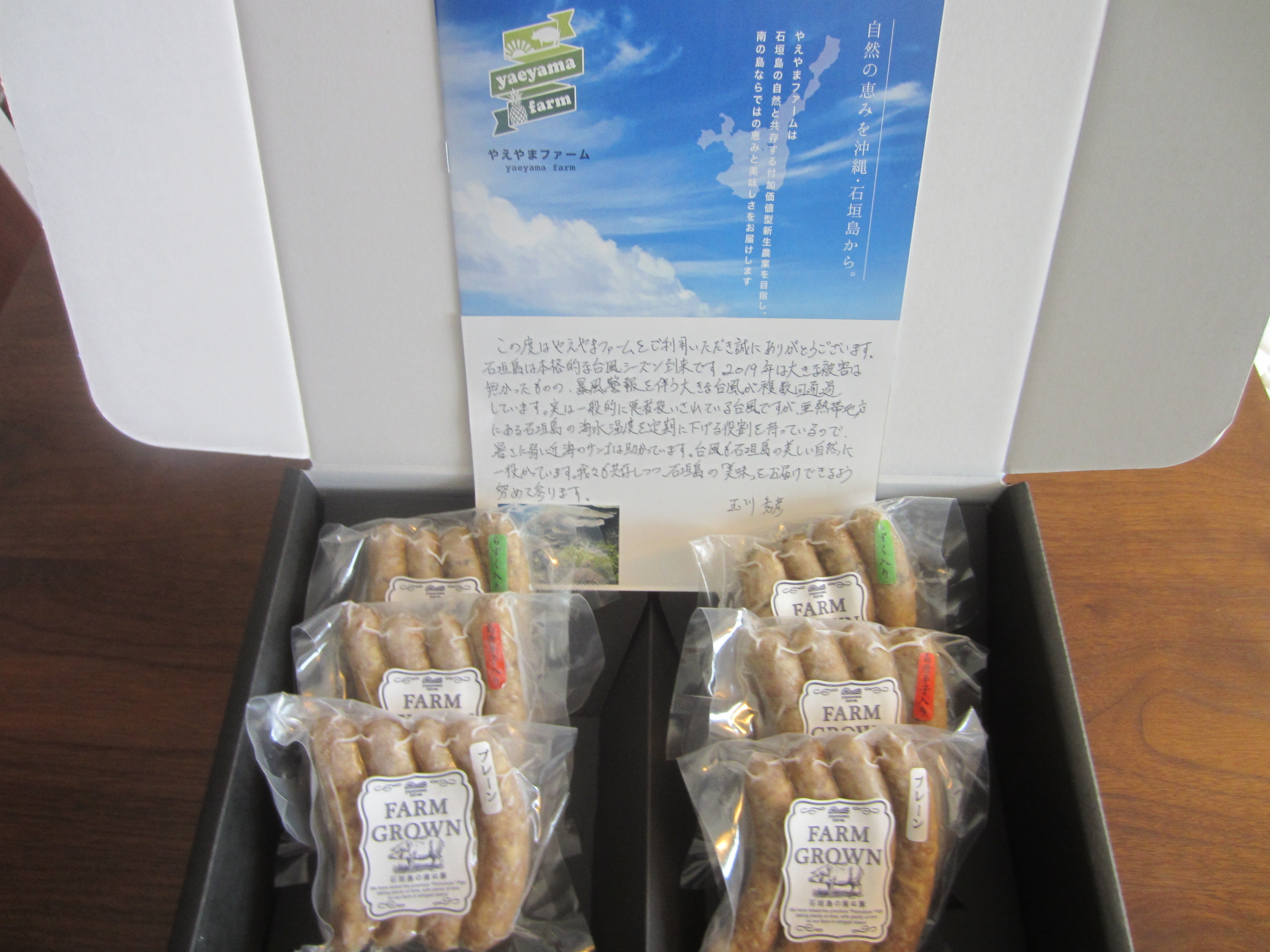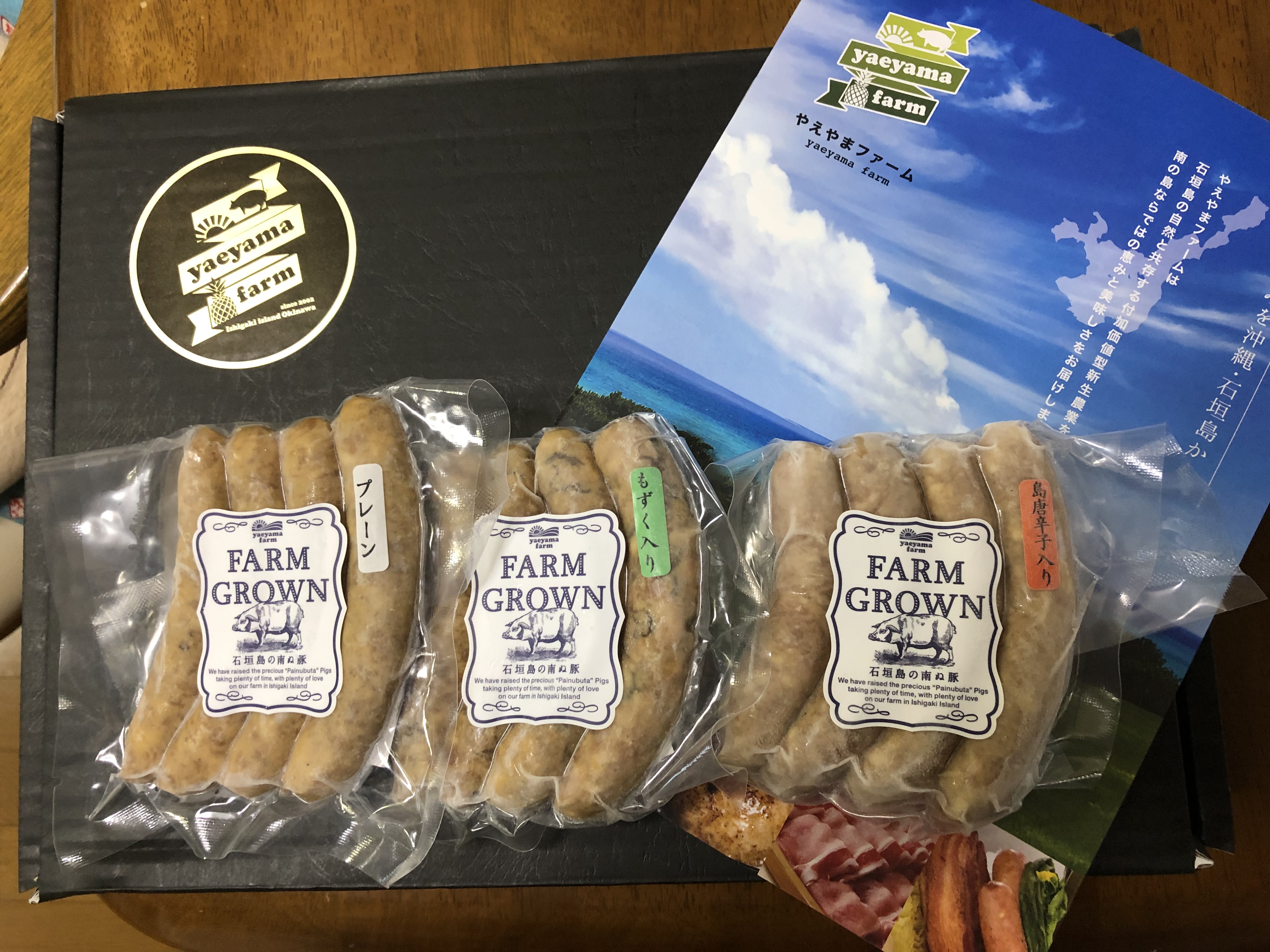 やえやまファームさんのソーセージは自社工場で絞ったパイナップルの絞りカス等で育てた「南ぬ豚」を使い、添加物一切不使用とのこと。