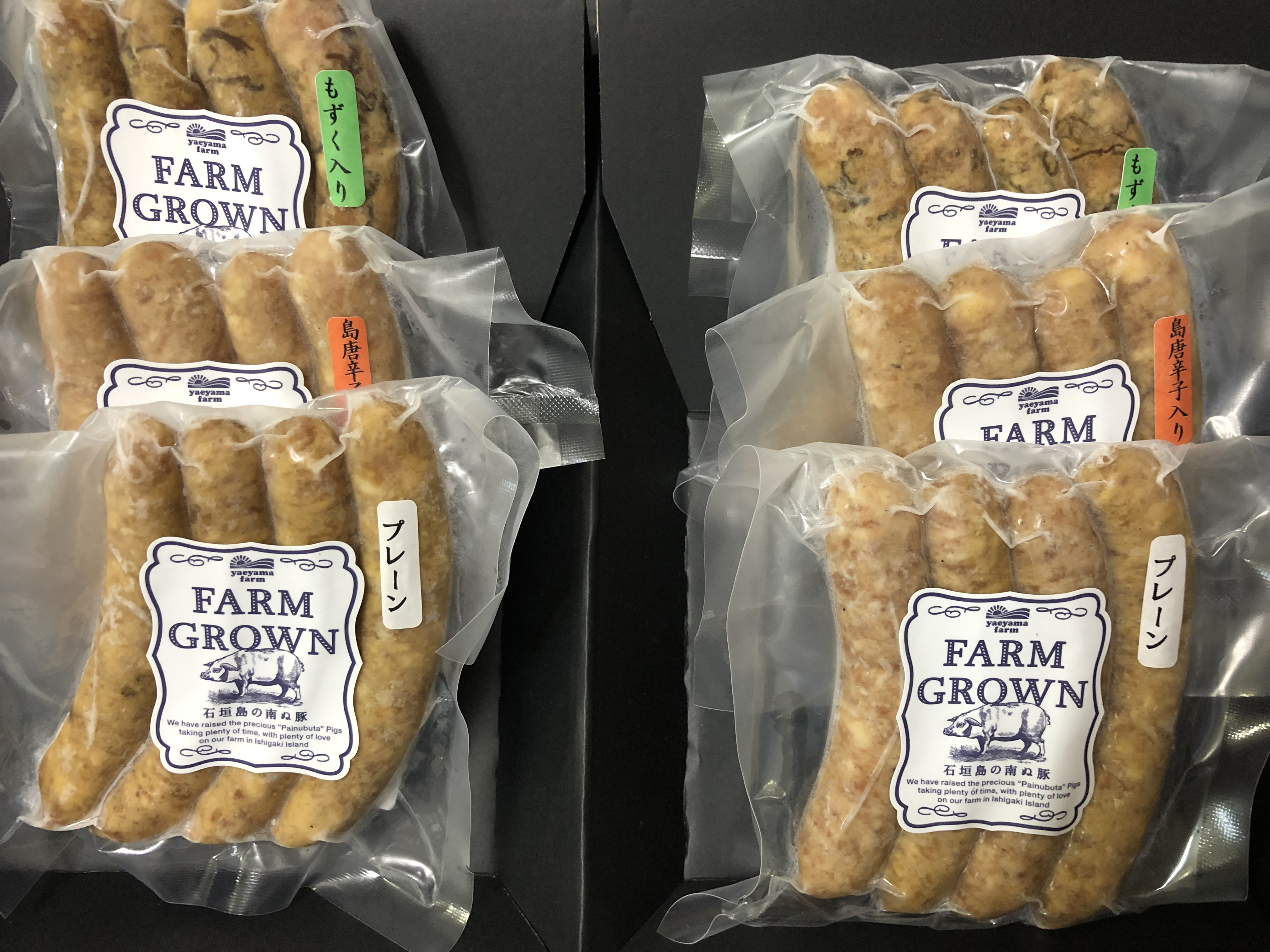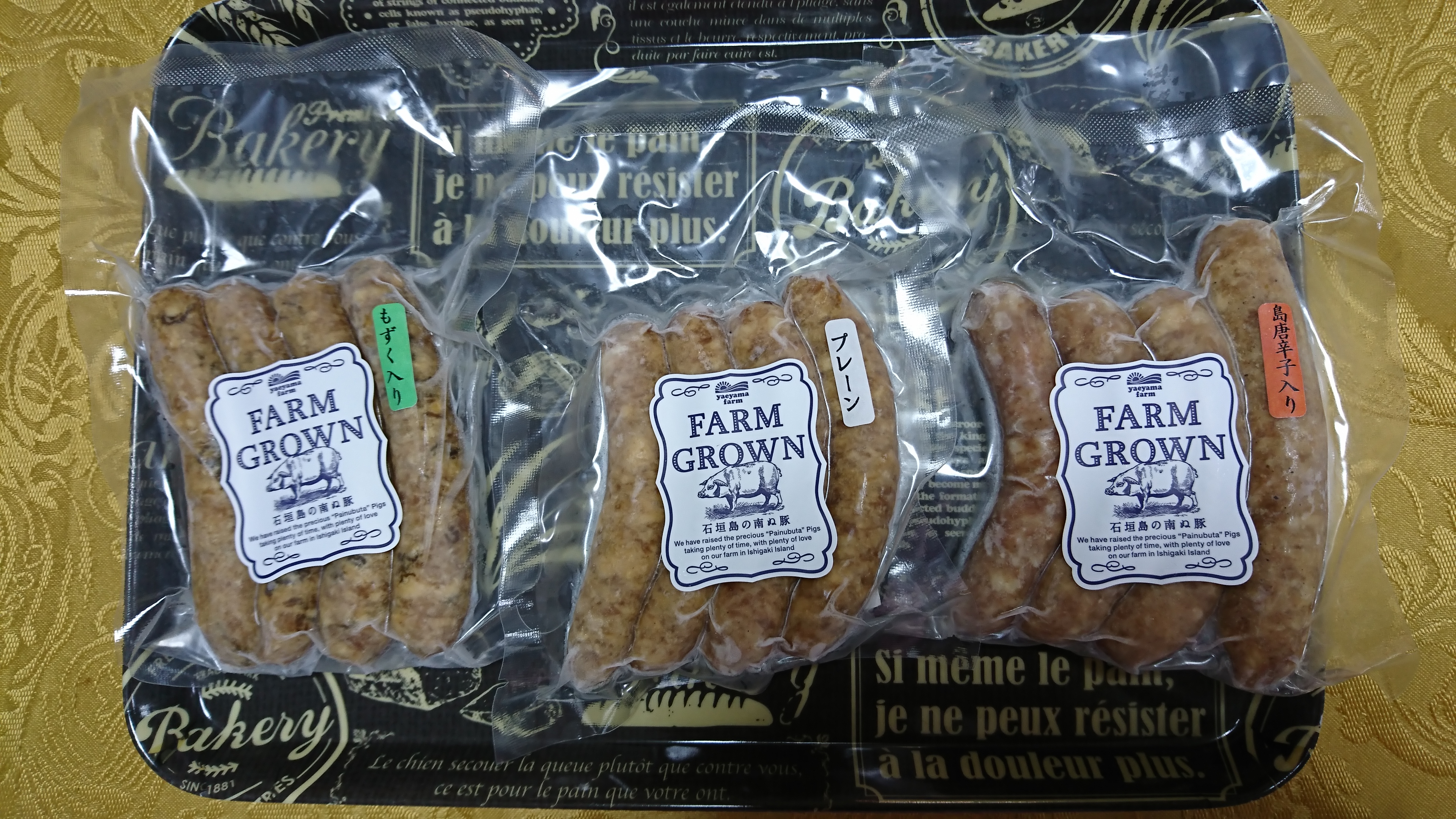 沖縄・石垣島の南ぬ豚(ぱいぬぶた)を使った「無添加あらびきソーセージ」3種セットです。