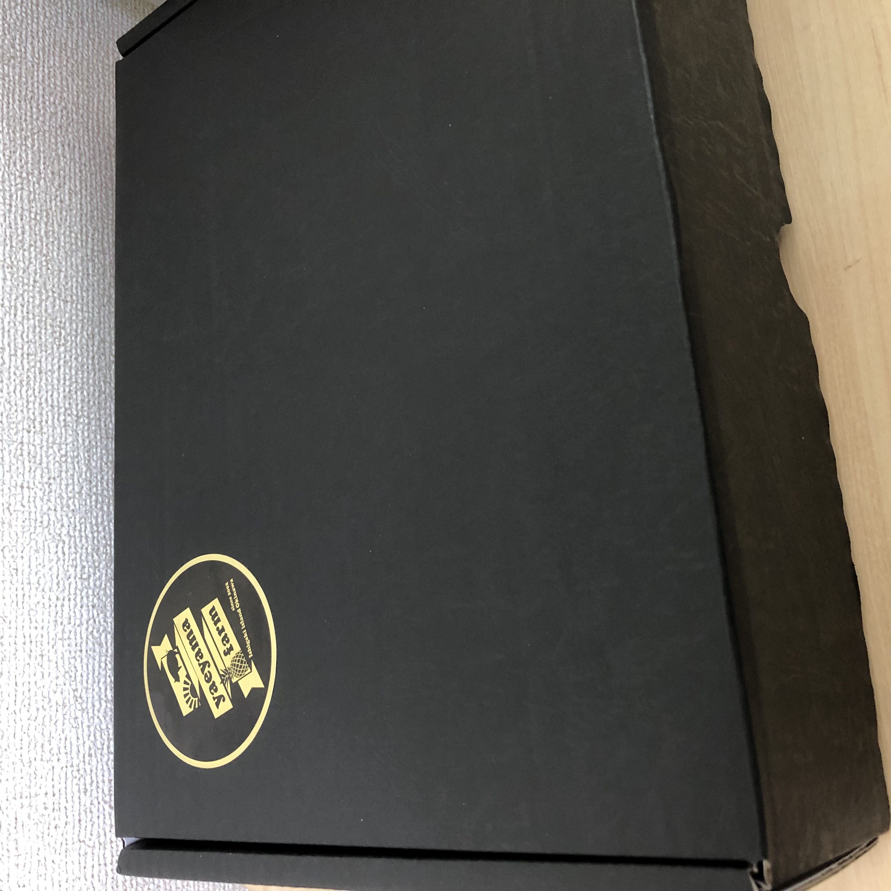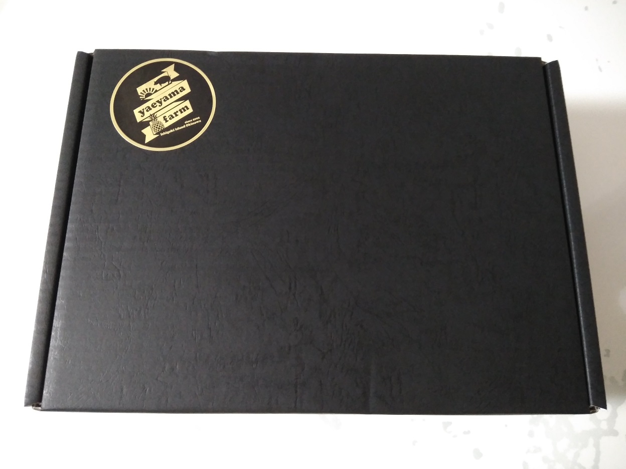 いざ配送されたパッケージを開封すると、黒色の箱が登場。段ボール(?)といえども高級感があり「これなら十分ギフトになるわね」と独り言。