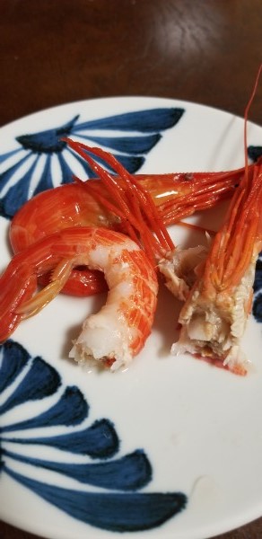 臭みは全くなく、いい塩梅の塩加減と旨味と甘味と蟹のような味もあり、弾力のあるぷりぷりした食感の身で、いつも食べるボイルエビとは全く違う、初めて味会うエビの味です。何かをつけて食べる必要はありません。今まで食べたエビとは全く違う北海シマエビの味に驚きました。