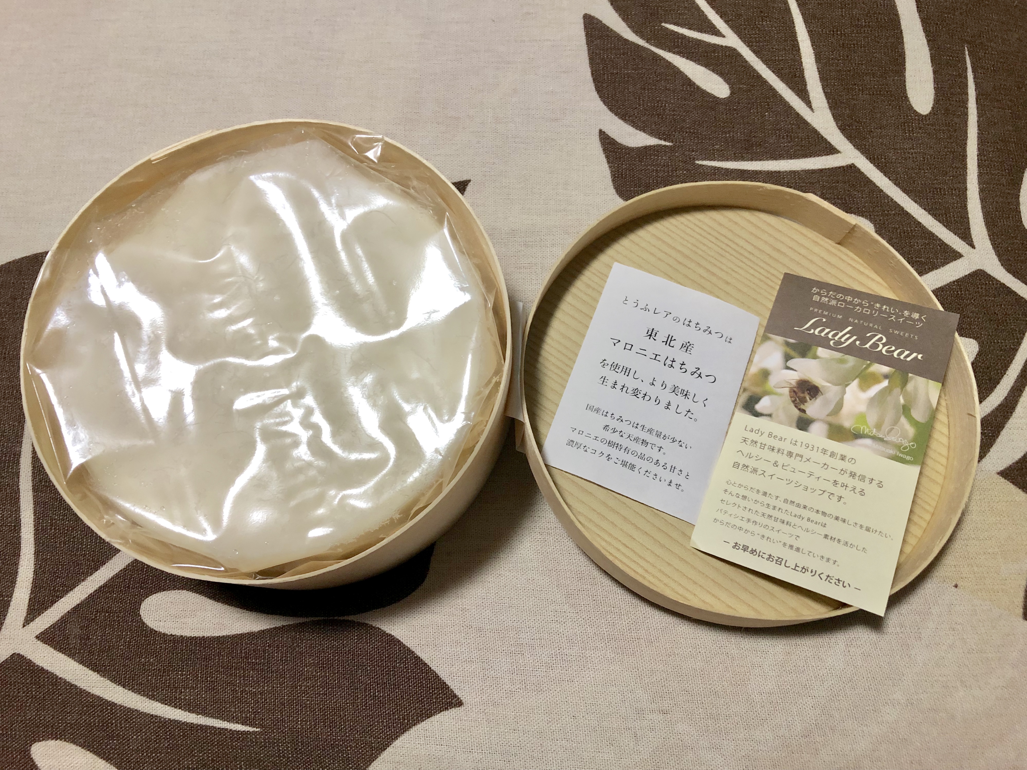とうふレアは自社のはちみつとアガベシロップだけの甘さで仕上げ、白砂糖・人工甘味料は一切不使用。