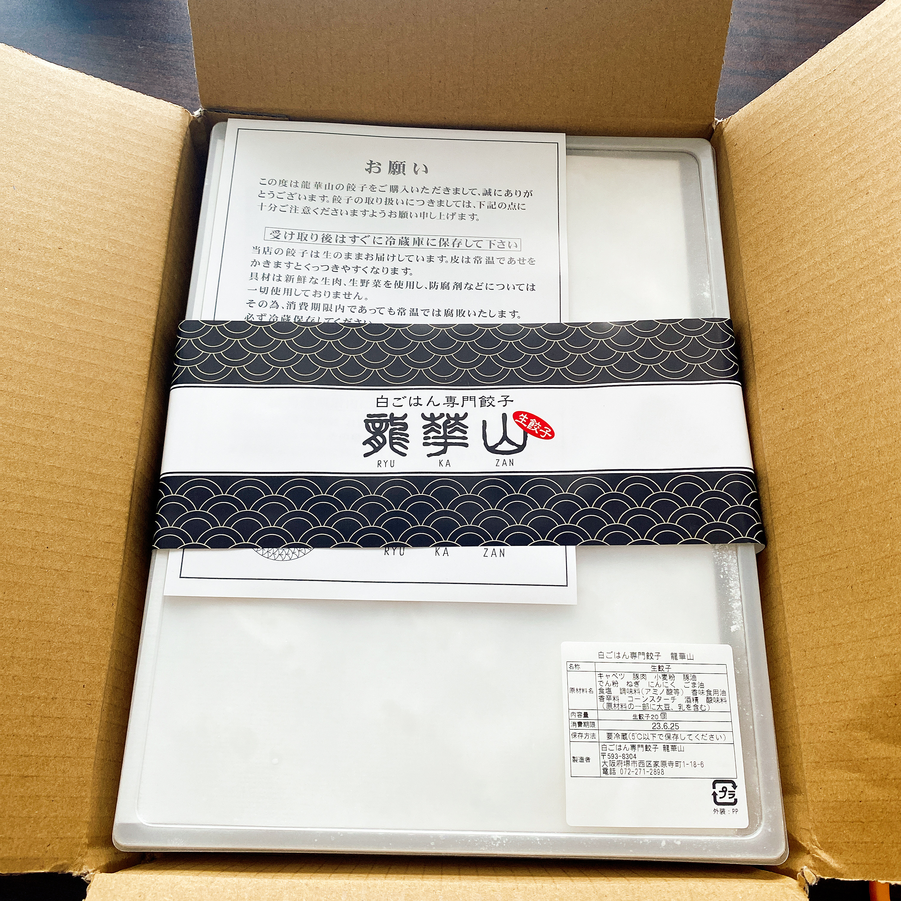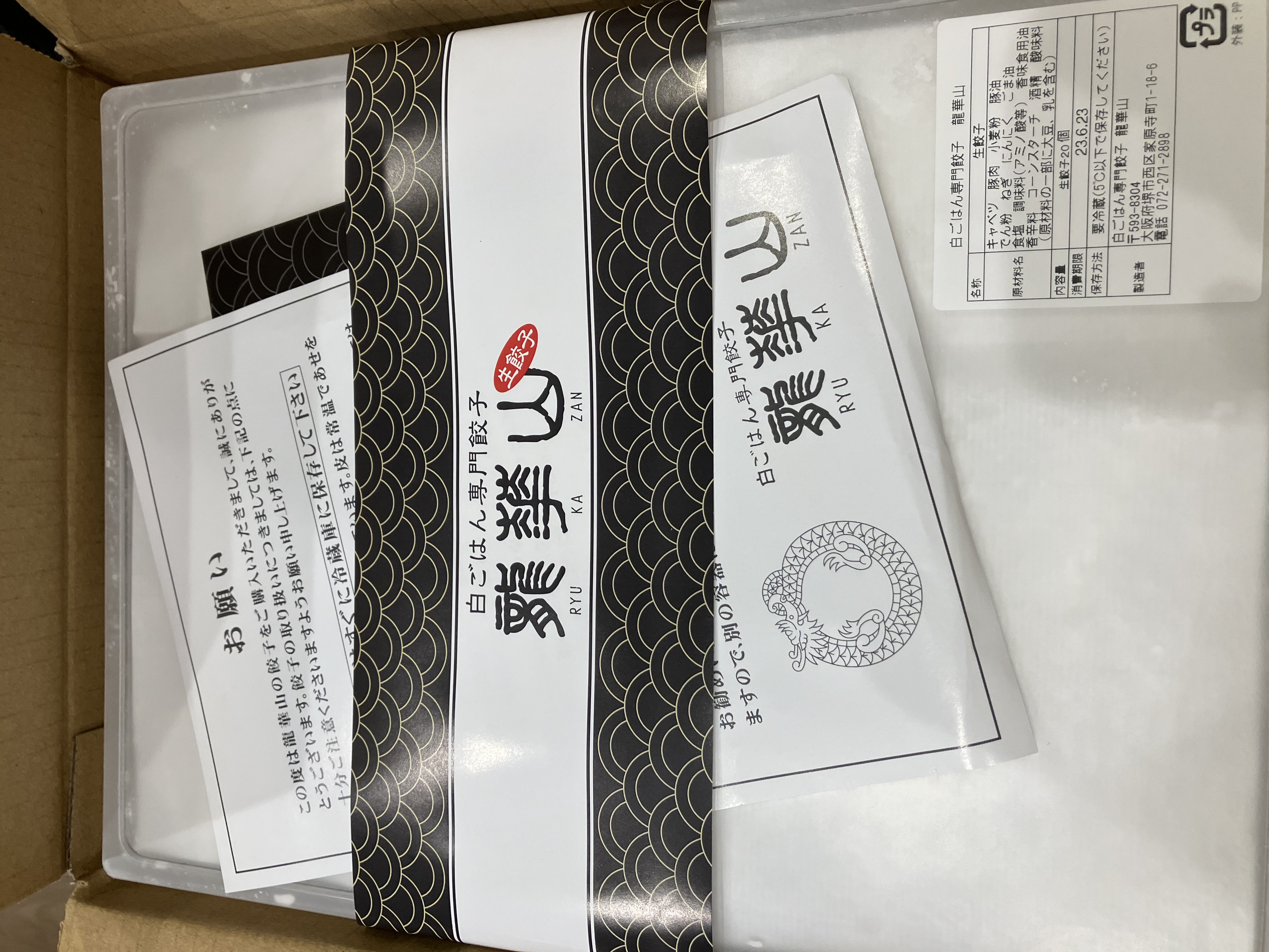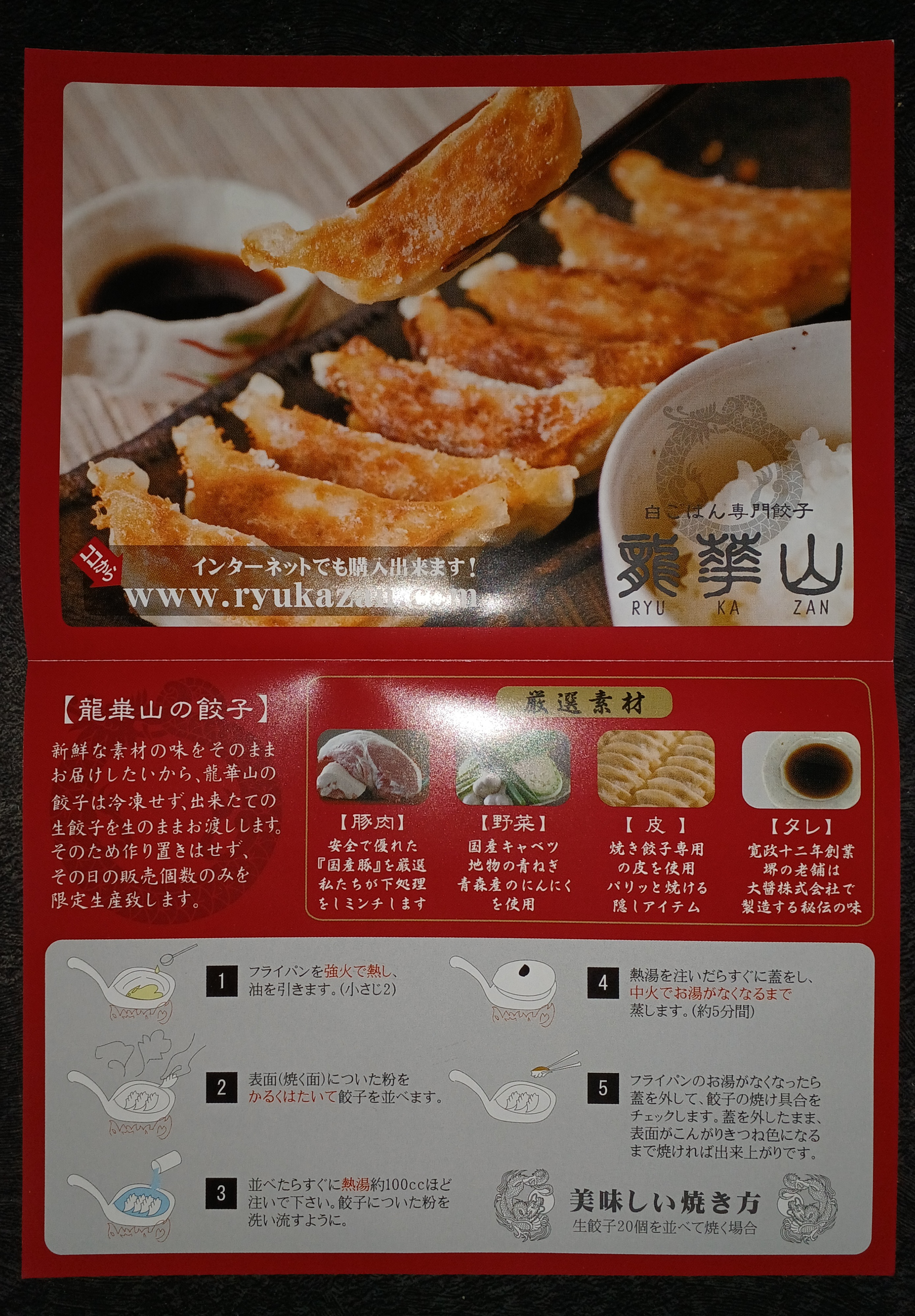 新鮮な素材の味をそのままお届けするために、龍華山の餃子は冷凍せずに作りたてを生のまま皆様にお渡ししております。そのため作り置きはせずにその日の販売個数のみを限定生産しています。 また、ご自宅で焼きたてを食べて頂くのが一番おいしい、との思いから焼き餃子の販売も現在は行っておりません。ご自宅でもきれいにパリッと焼きあがる皮を使用しておりますので『作り方』を参考に焼いて頂き、焼きたてのおいしい餃子をお召し上がり下さいませ。