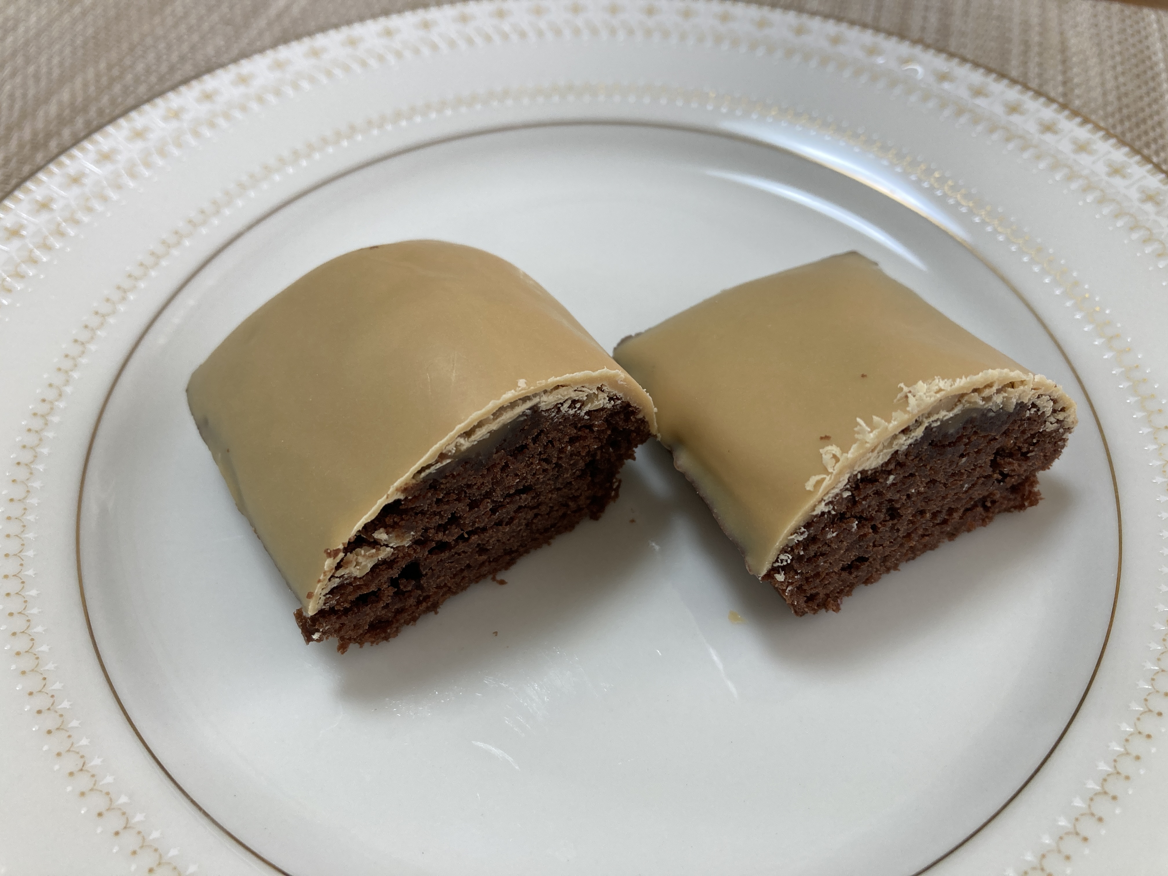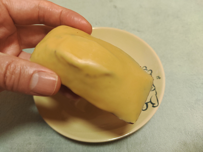 確かにホワイトにしてはやや茶色みがかった色のチョコレートだな、と感じます。