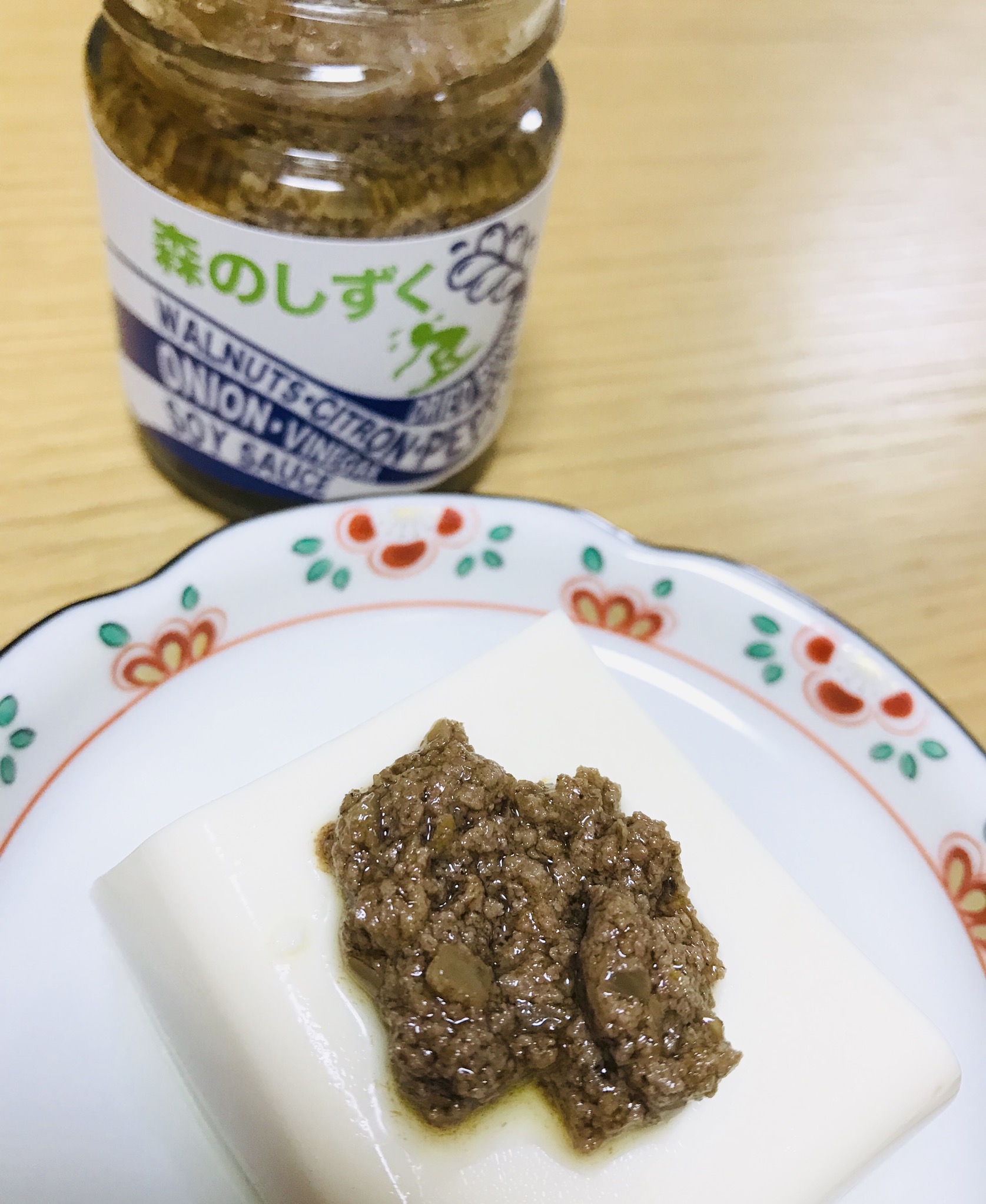 「森のしずく」はくるみをベースに鰹節の旨味とほのかな柚子胡椒の香りで、そのままでもおつまみに。