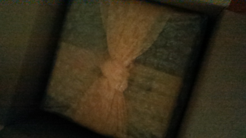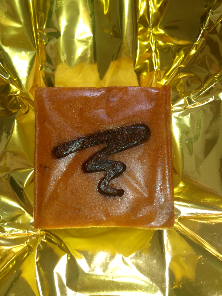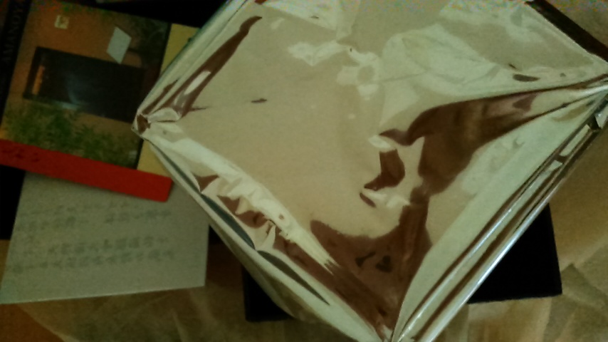 シックな黒い箱に入っており、ケーキもゴールドのセロハンに包まれています。