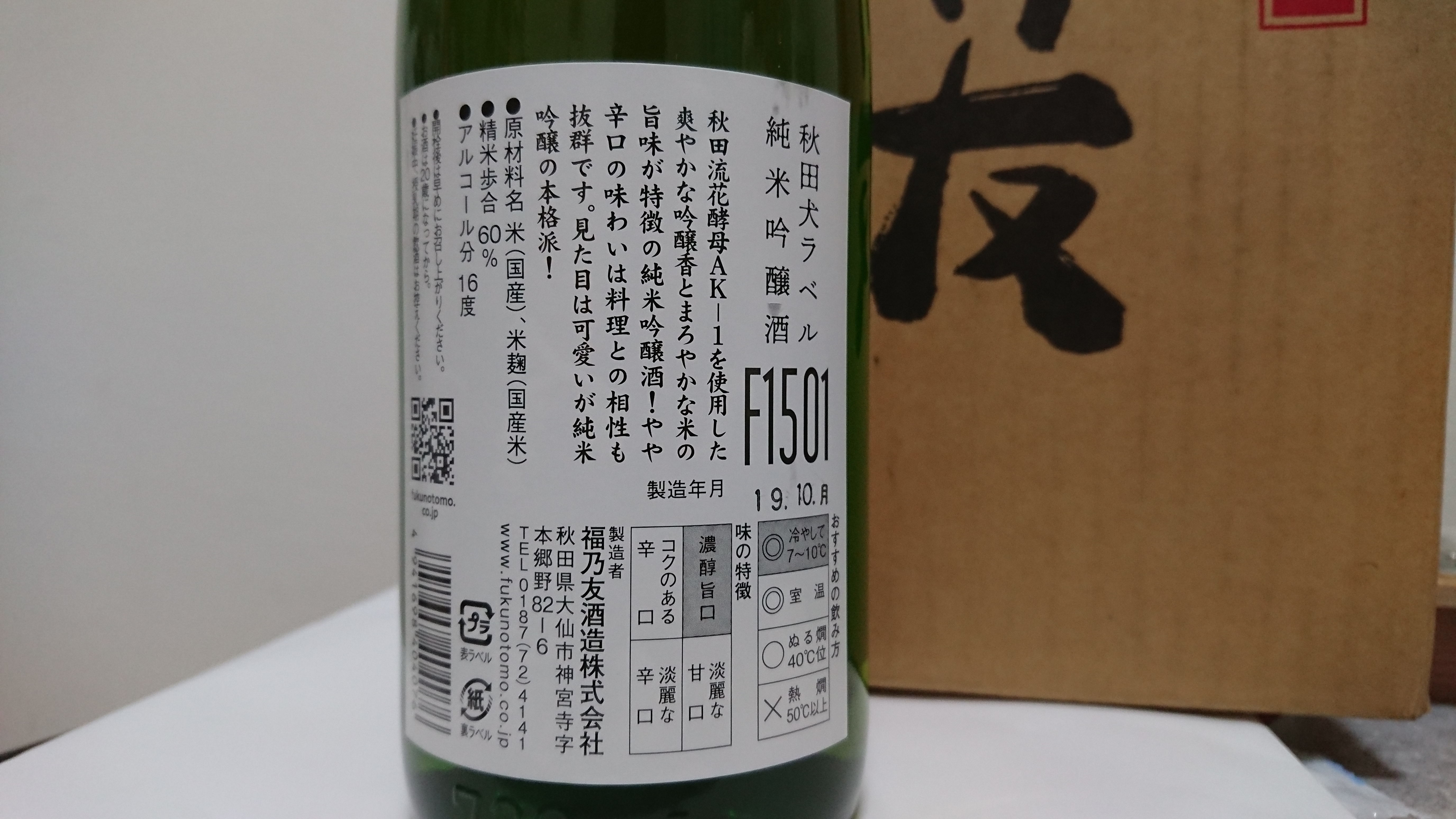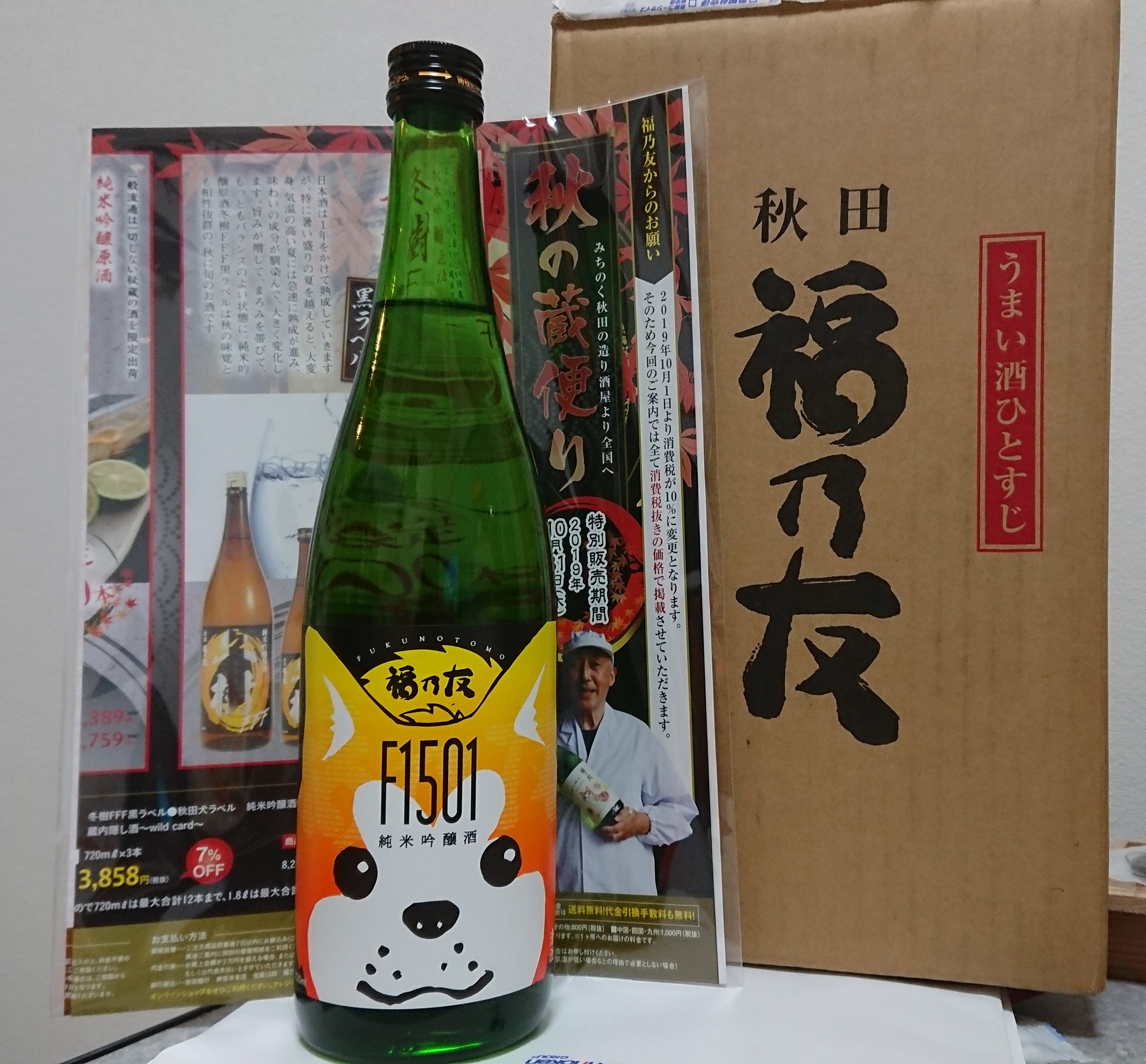 秋田犬ラベル純米吟醸原酒 福乃友酒造