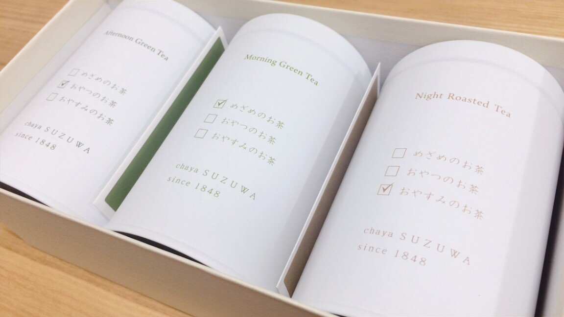 めざめ、おやつ、おやすみのシーンに合わせたお茶セットです。伝統の合組(ブレンド)技術を用い、1日の生活シーンに合った香味に仕上げてあります。「めざめのお茶」は、すっきりとした香りで渋味、甘味のバランスがとれた静岡市の安倍川流域の煎茶と、香り高くほのかな渋味のある天竜産の煎茶と芽茶を使用し、気持ちの良い一日を始められる目覚めの一杯に最適。おやつの時間を楽しくする「おやつのお茶」は、味は渋みが少なく、コクがあり、柔らかい飲み口で、甘味のあるおやつに相性の良いお茶です。「おやすみのお茶」は、一日の終わりのリラックスタイムにおすすめ。牧之原・天竜の茎茶を使用した焙じ茶は、まろやかで、優しい香りが特徴。カフェイン含有量が少なく寝る前にお勧めです。茶葉とティーバックの2種から選んで購入できるので、好みのスタイルでお茶の時間を楽しめます。