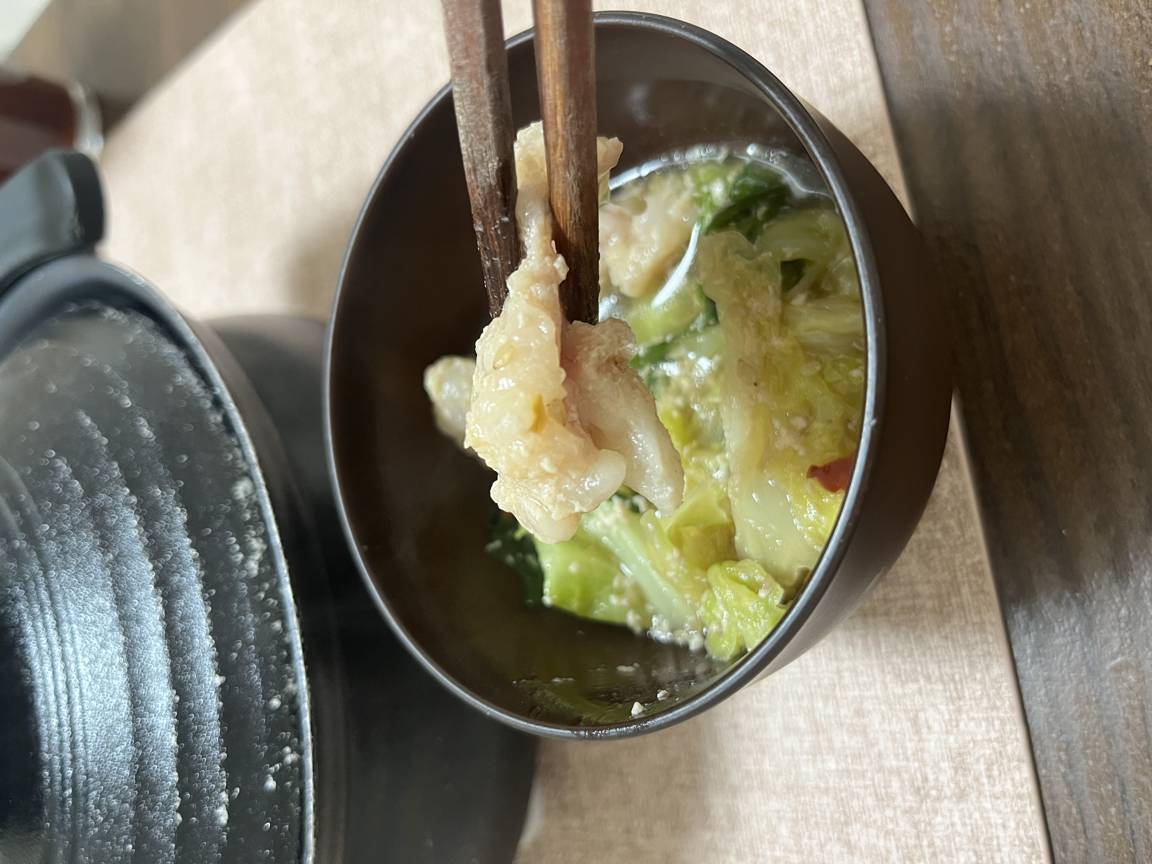 スープの中にもゴボウやニンジンが入っているし、キャベツも沢山入っているのでもつだけでなく、お野菜も楽しめました。