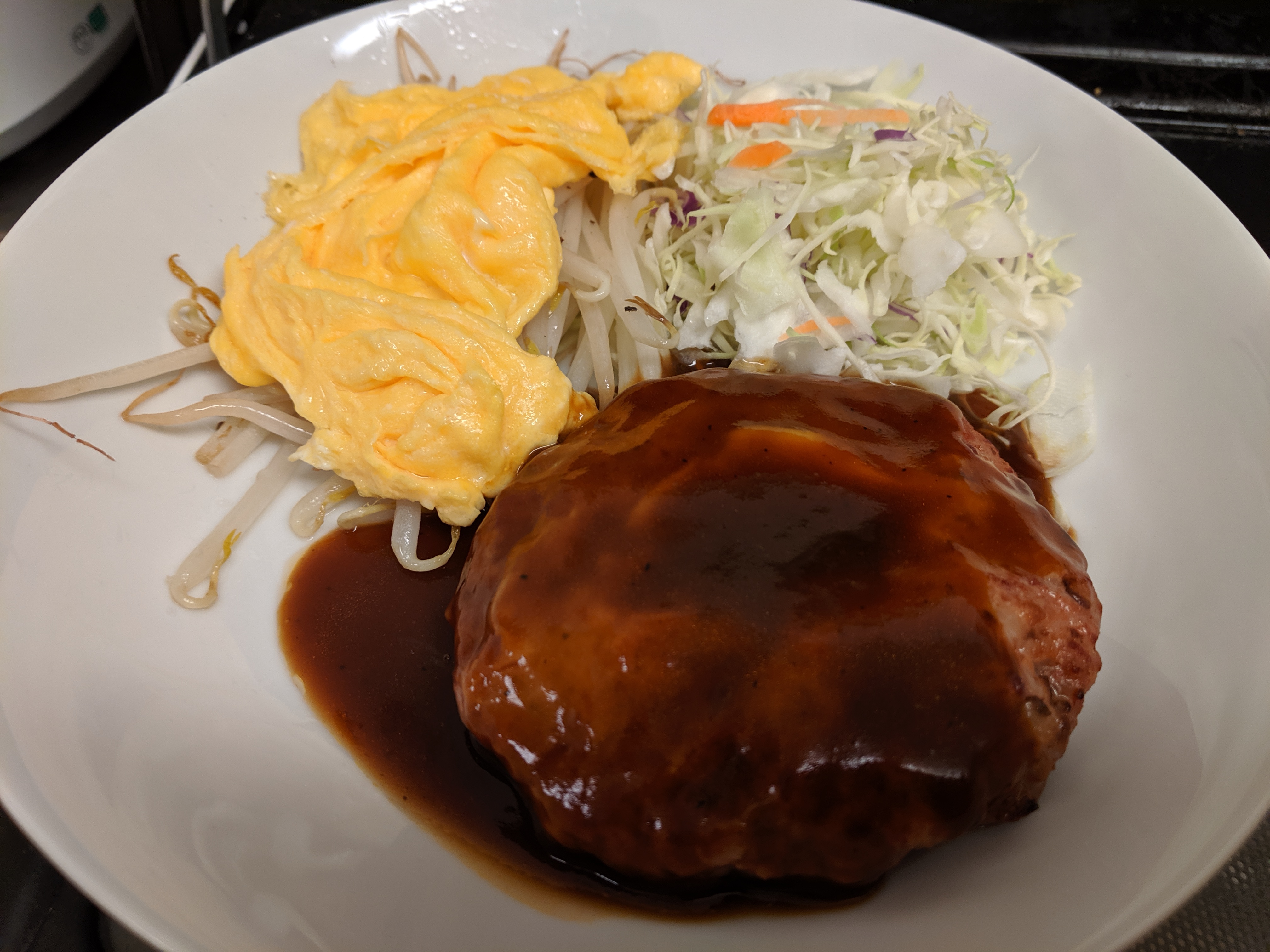 プレーンハンバーグには特製デミグラスソースが付いていて、ソースの味に深みがあり美味しいです!