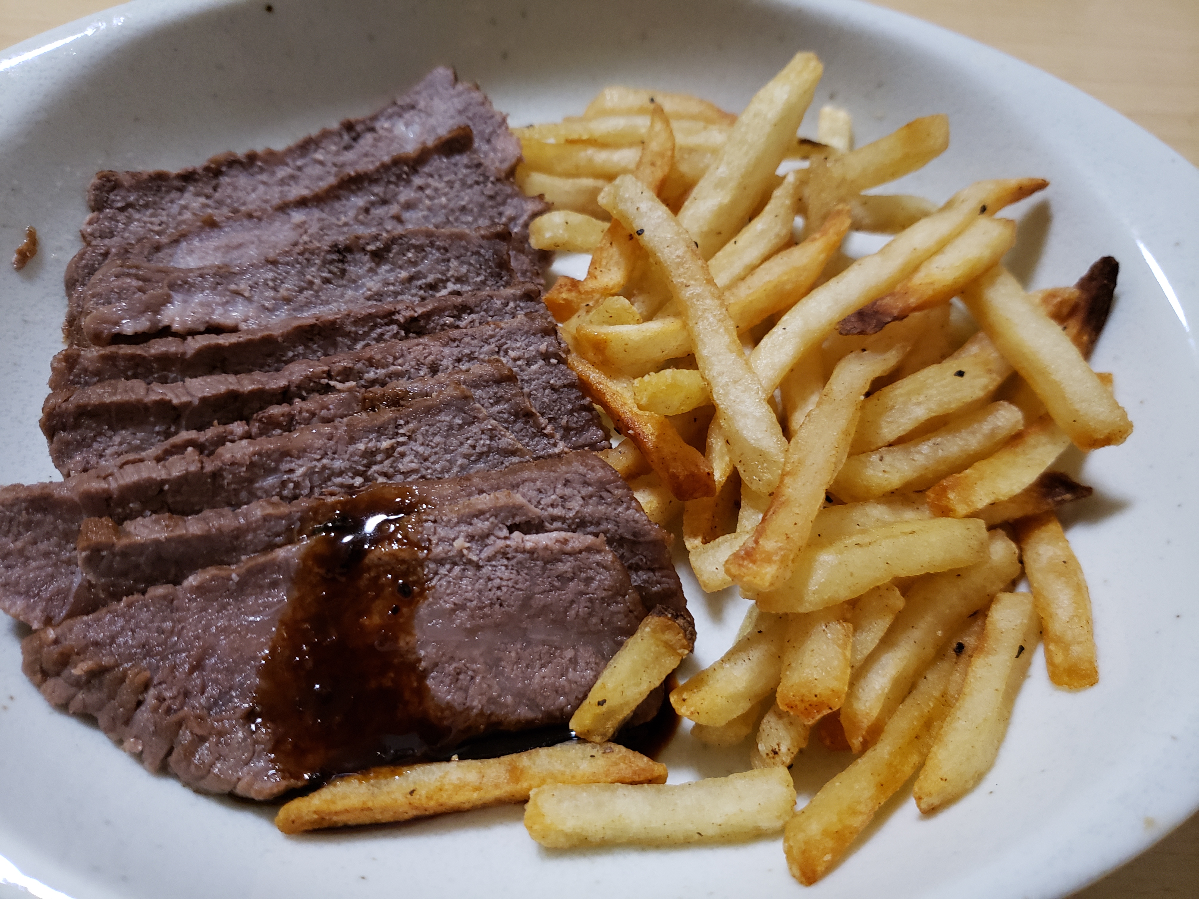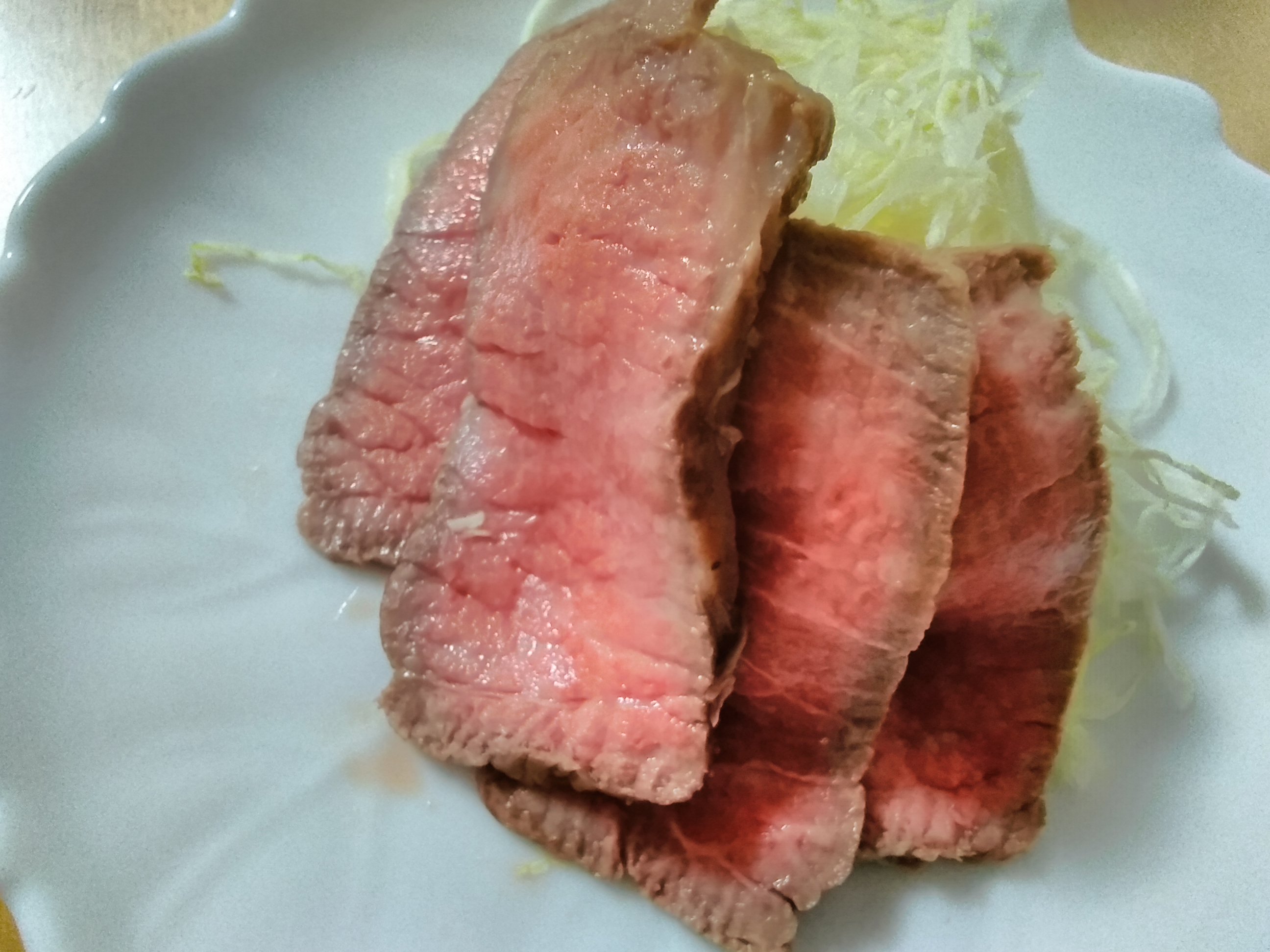 ウチモモ肉ということで、ロース肉のローストビーフより固いのではと思っていたのですが違う柔らかさです。