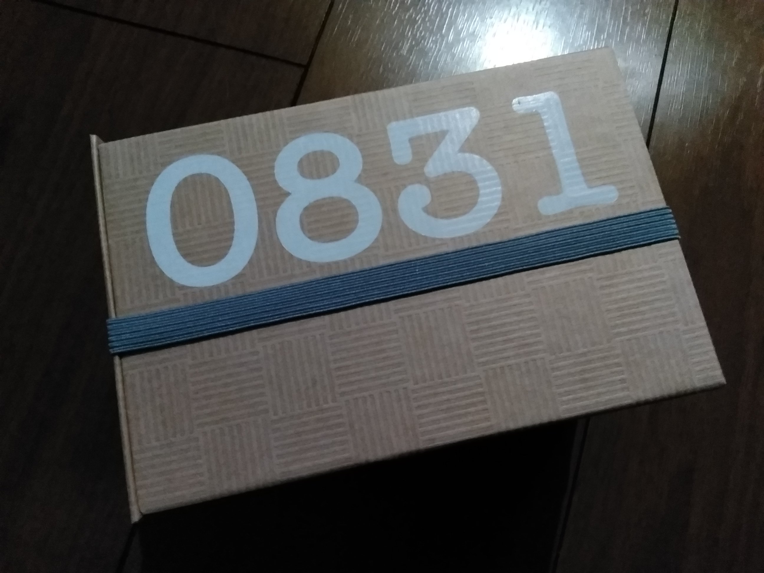 クロネコヤマトの60サイズの箱に「0831」のロゴが入ったしっかりした小箱が入っています。