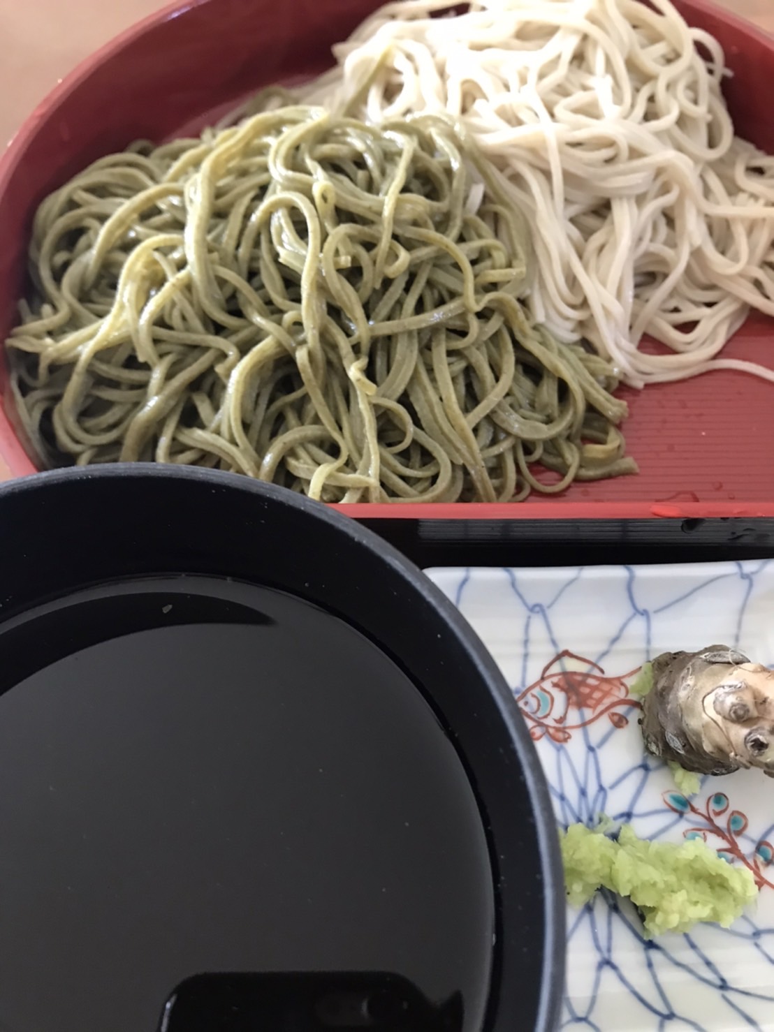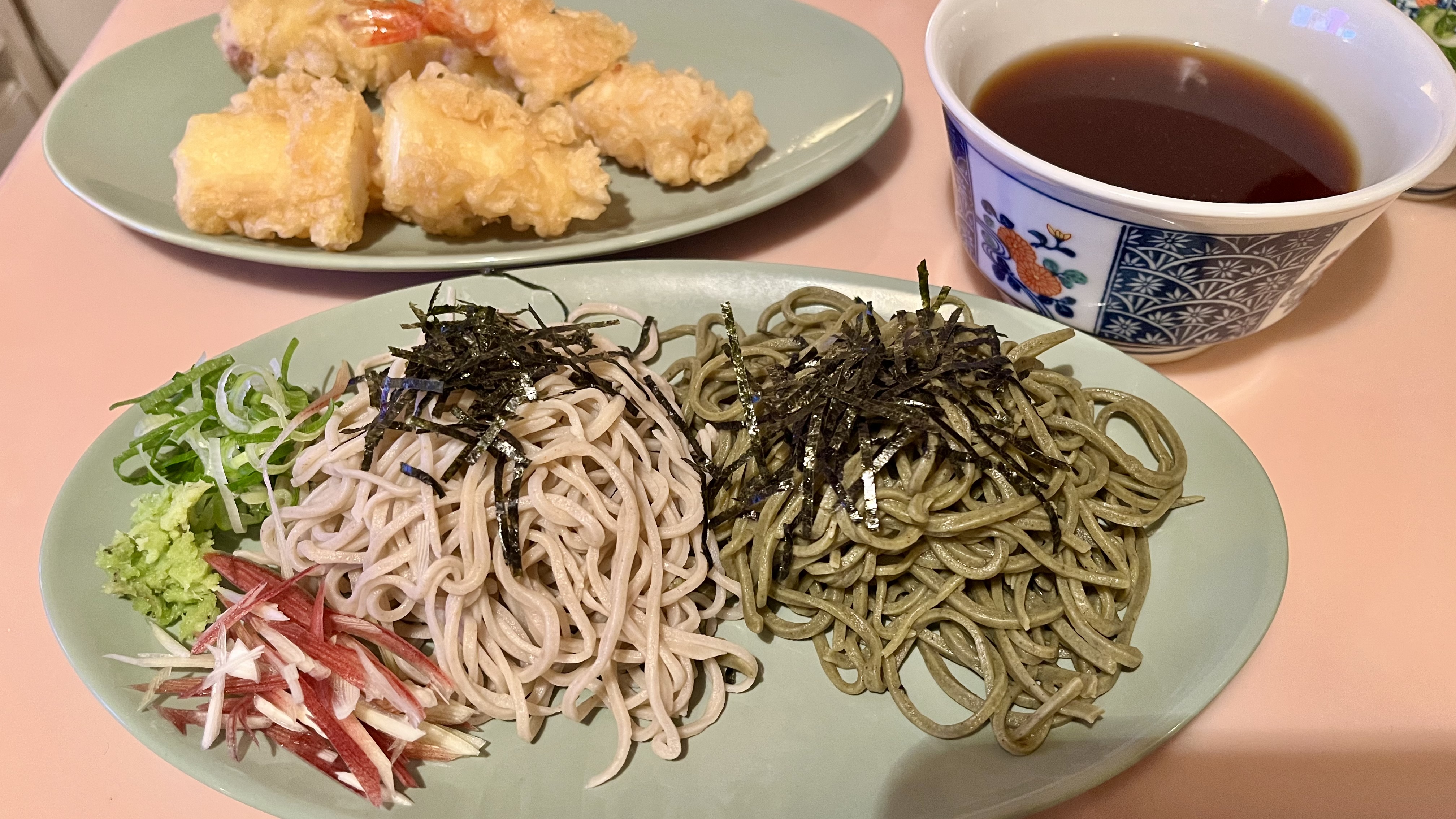 抹茶の蕎麦はほのかな抹茶の香り・風味に後からくる蕎麦の香り、そして少しもちっとした違った食感!!