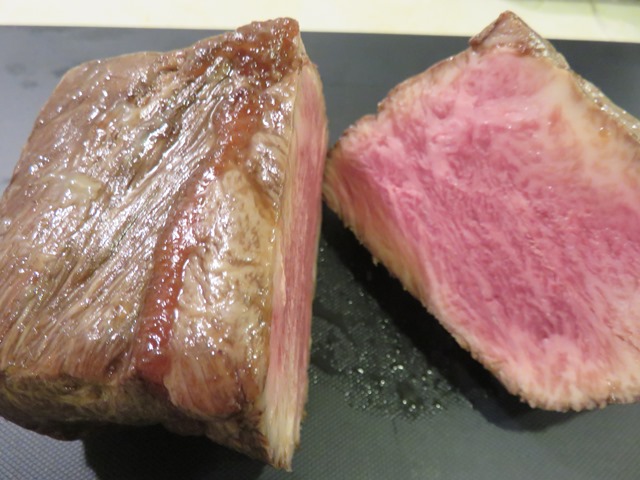 開けてみて肉の塊を出して、切ってお皿に盛るとき、黒毛和牛希少部位って言うほどもぉ見た目からかなり凄いです。