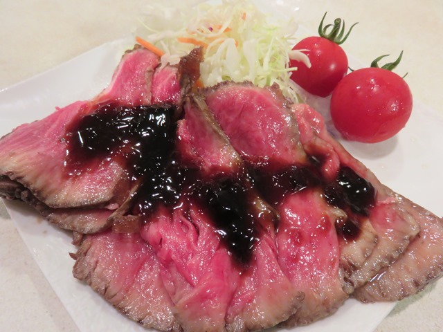 玉ねぎスライスを下に置きその上にローストビーフを乗せました。これがまた玉ねぎとかなり合いますね。