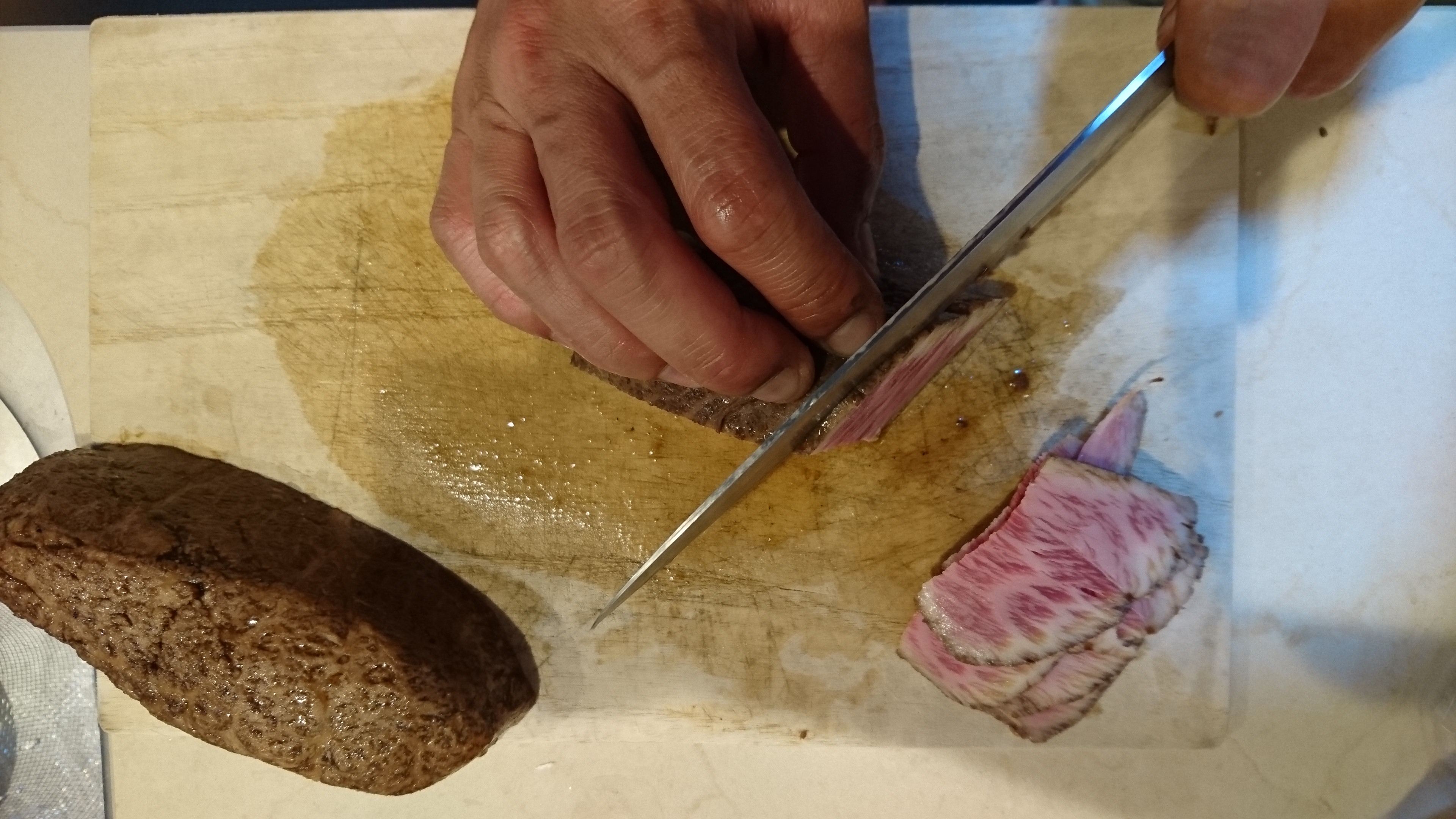 肉の断面を見てみると肉と脂の筋がめちゃくちゃ綺麗でした。