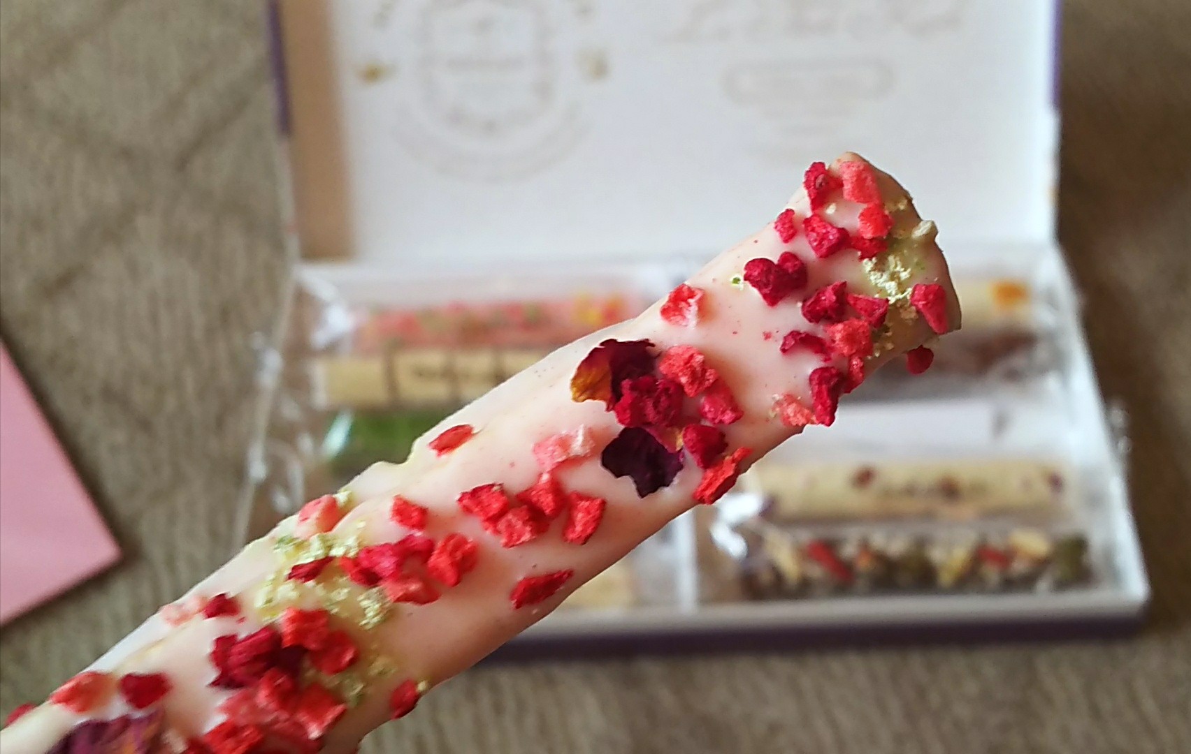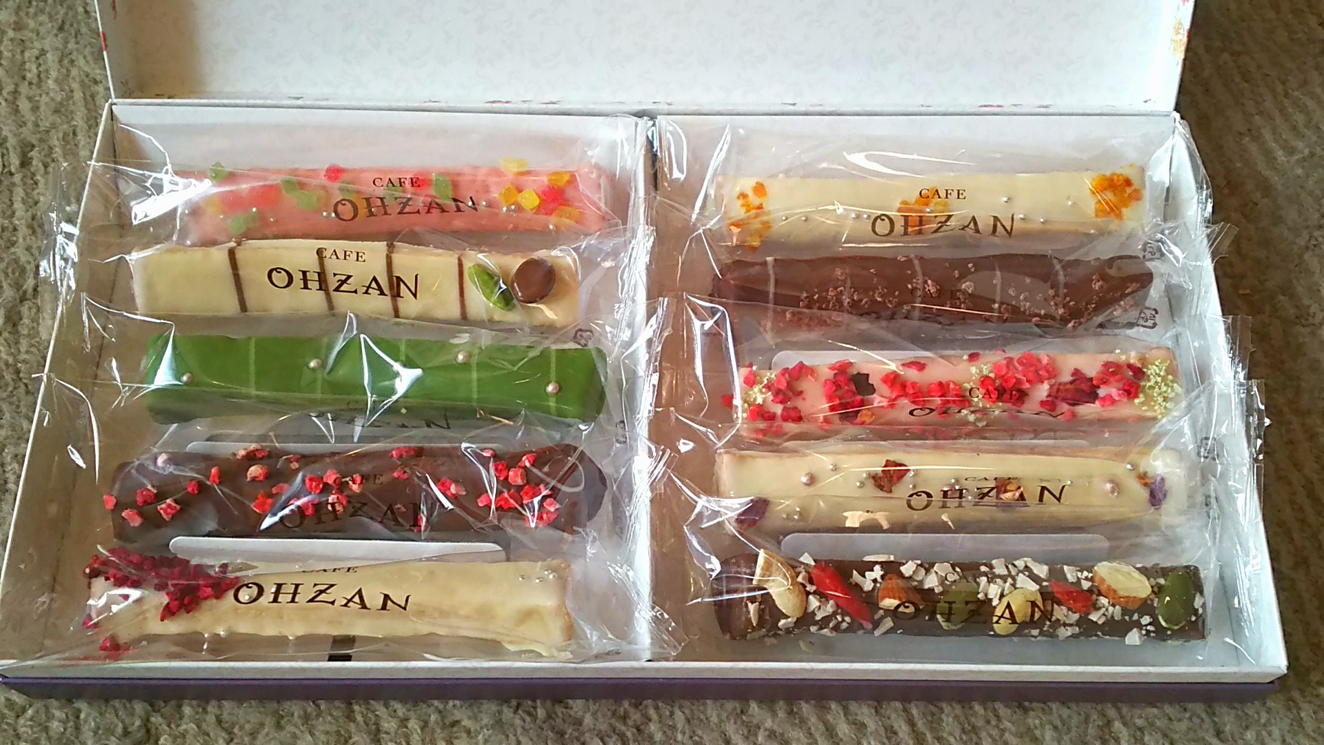 ホワイトチョコレート系、ストロベリーチョコ系、抹茶、コーヒーなどと、バリエーション豊かで、一つ一つ楽しめるのが、魅力だと思います。