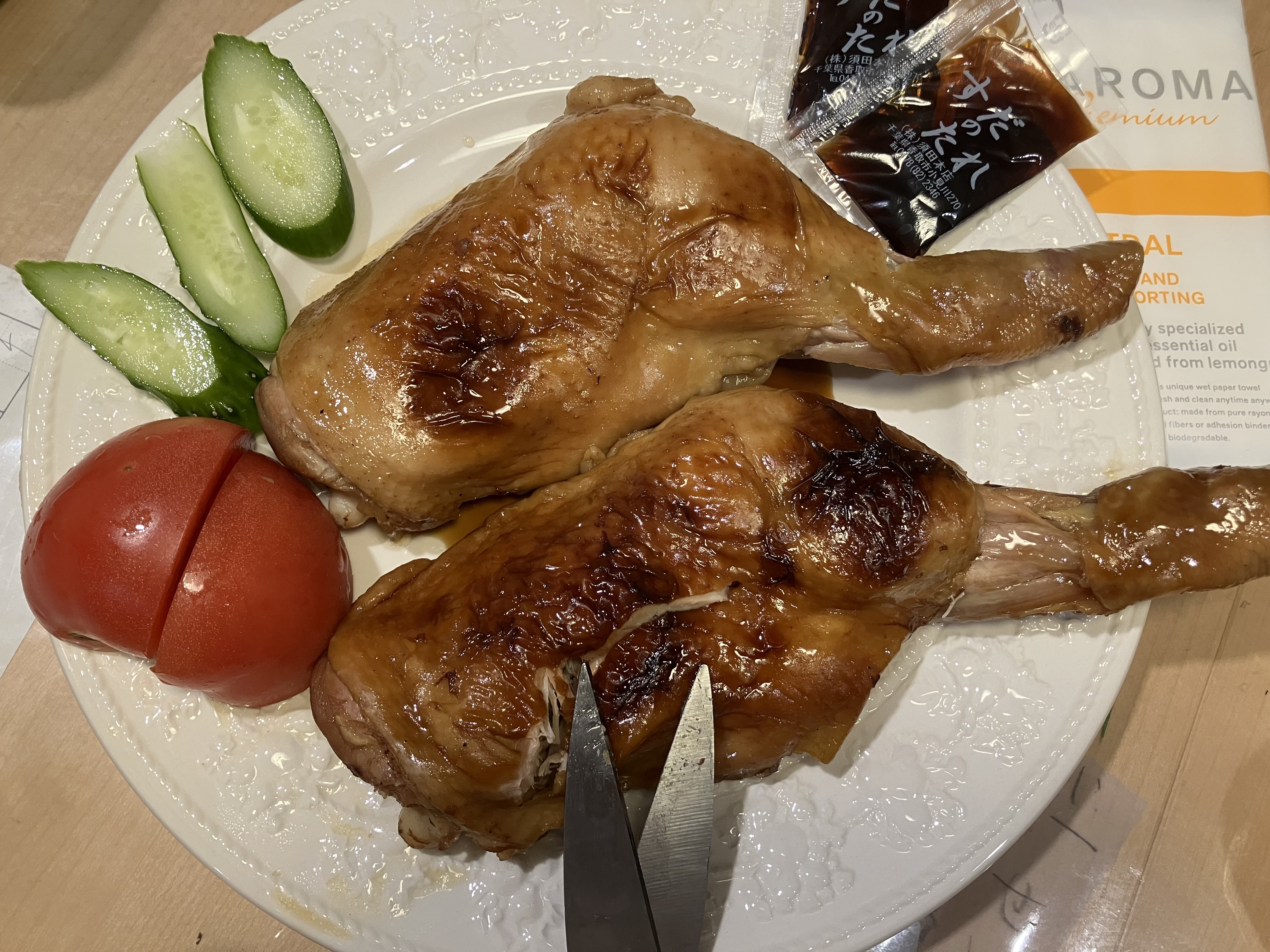 初めて注文したときのあの感動!予想していたものをはるかに上回る大きさに、子供達も大喜び!たぶん、誰もが一度は憧れたことのある、骨付きの肉を食べるあの豪快な食べ方!タレの具合もちょうどよく、はっきり言ってくせになりました。「クリスマスでもないのに、ローストチキンなんか頼んで」っとプリプリしていた妻も、この鶏肉を食べ始めると終始無言!3人で5本食べ尽くし、残るは1本。今までにないほど真剣なじゃんけんが繰り広げられました。