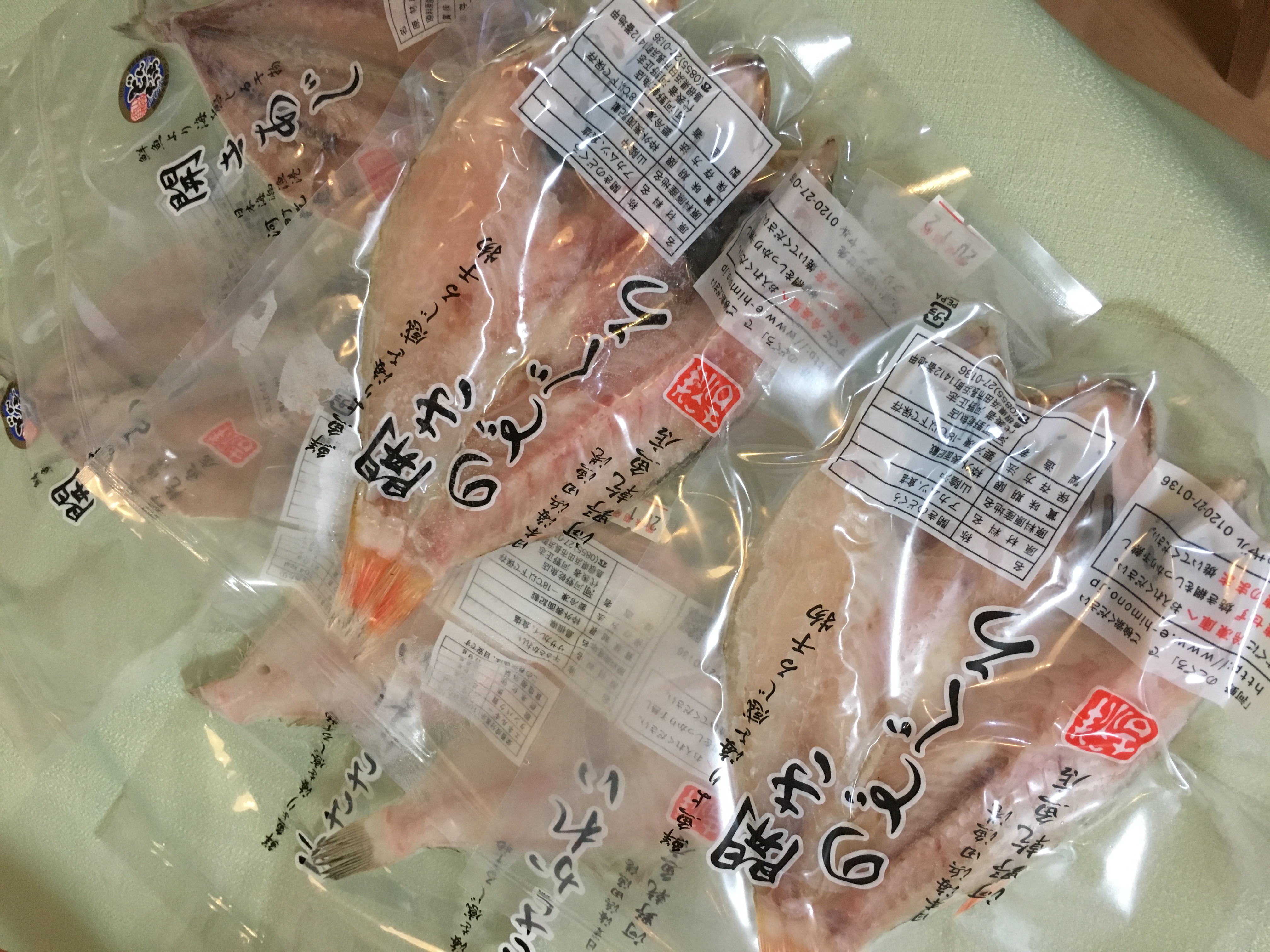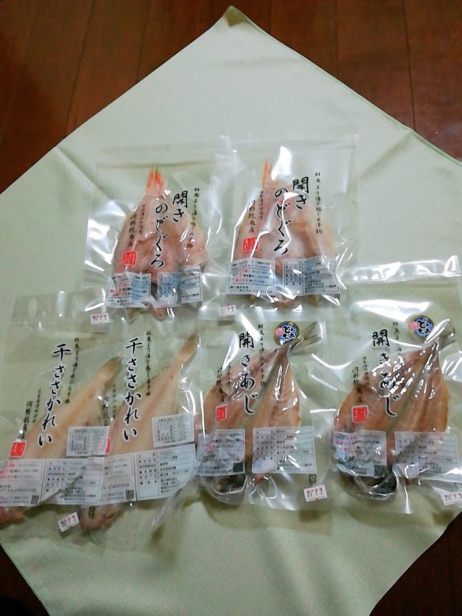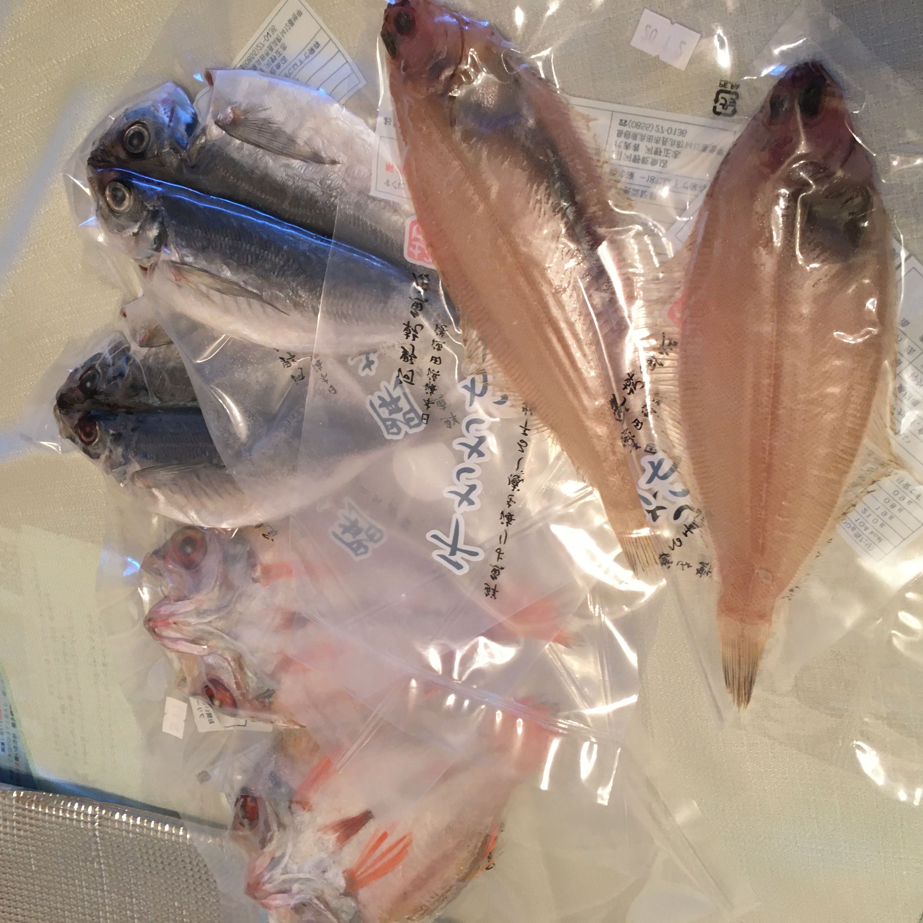 銀色の梱包材を開けると、開きのどぐろと開きあじと干ささかれいの3種類のお魚が2個ずつ入っていました。