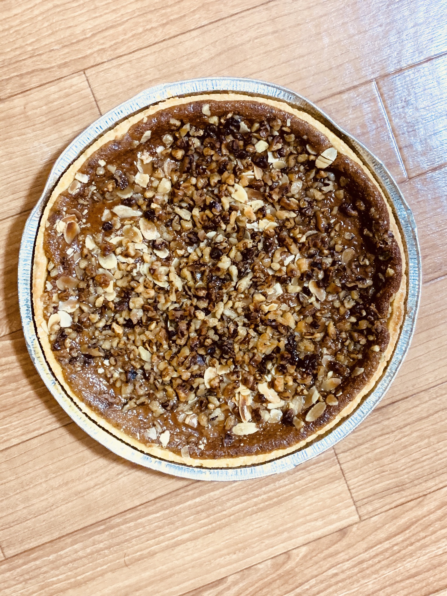 ・クルミとローストしたスライスアーモンドをたっぷりと使用したタルト