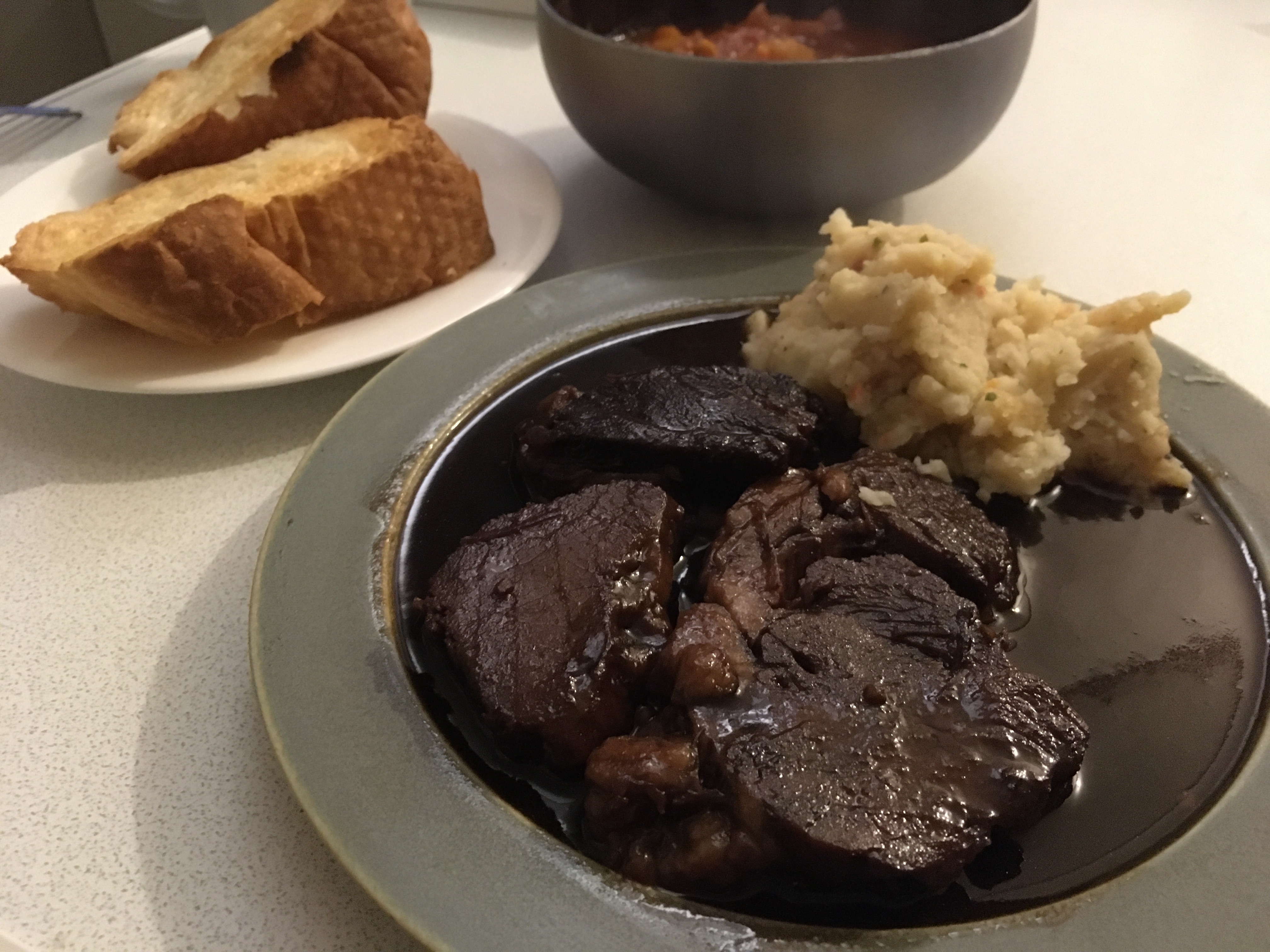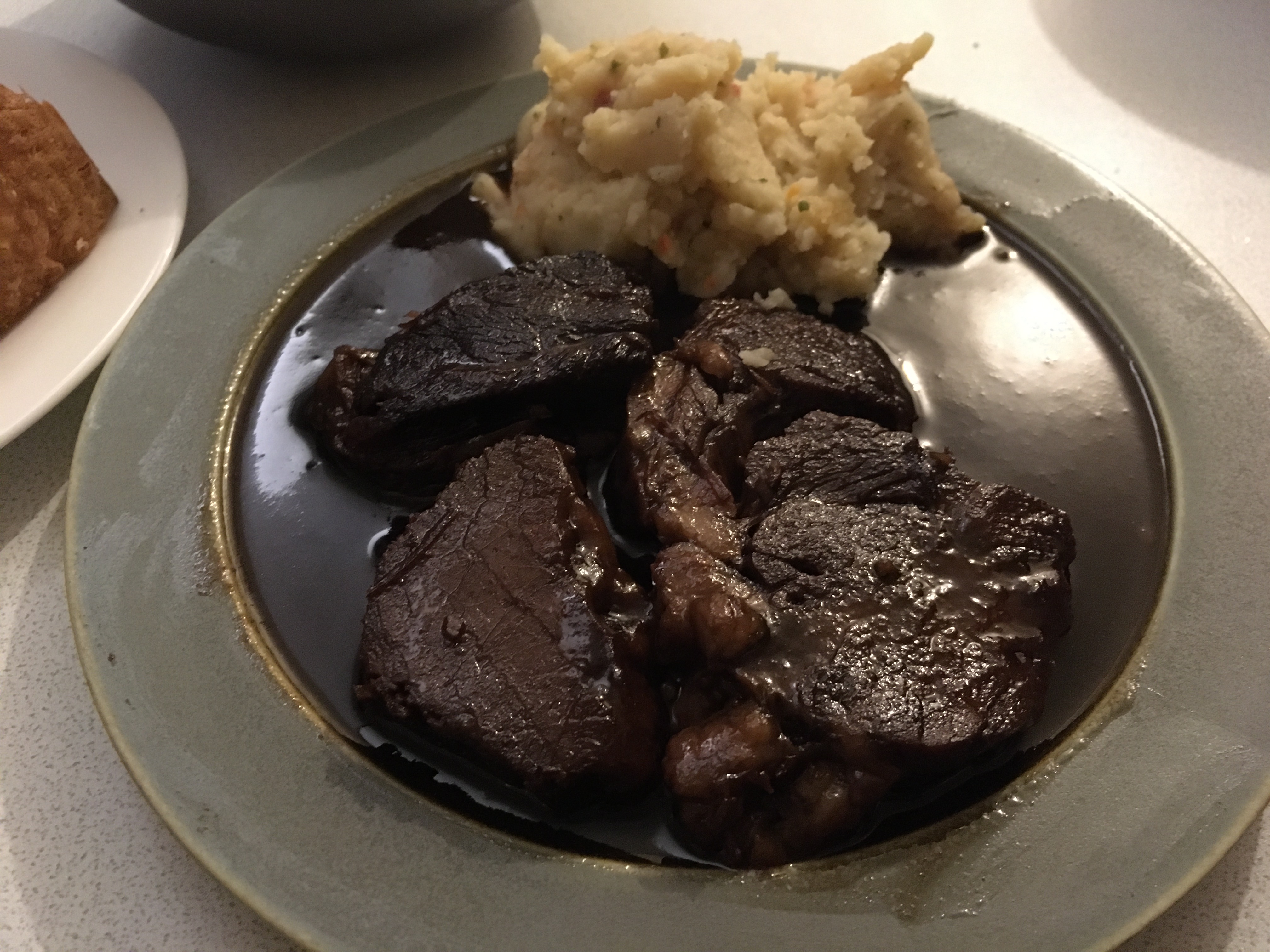 お肉を口に入れた途端ほろほろと柔らかくとろけて、もはや歯がいらないくらい。味もとっても美味しいです。良いお肉だと言うことがはっきり分かりました。お肉の旨味と、赤ワインがマッチしてと〜っても贅沢な気持ちになれました♪