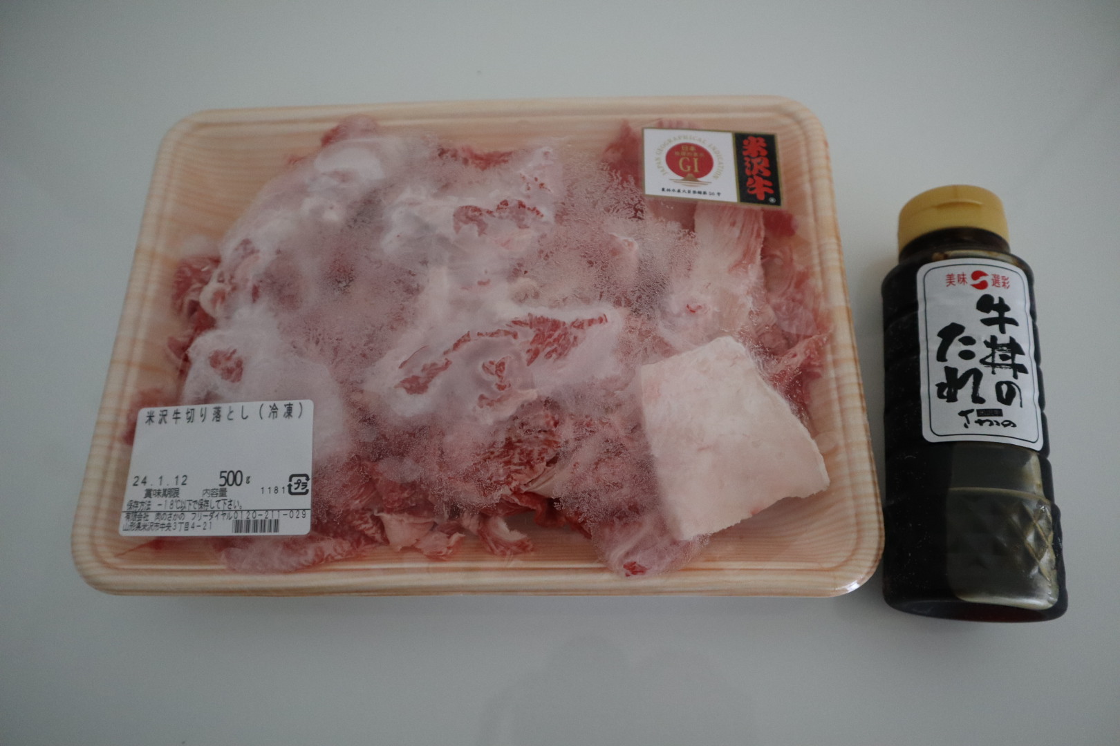 人気の「米沢牛切り落とし」に今回は牛丼のタレがセットになってます。