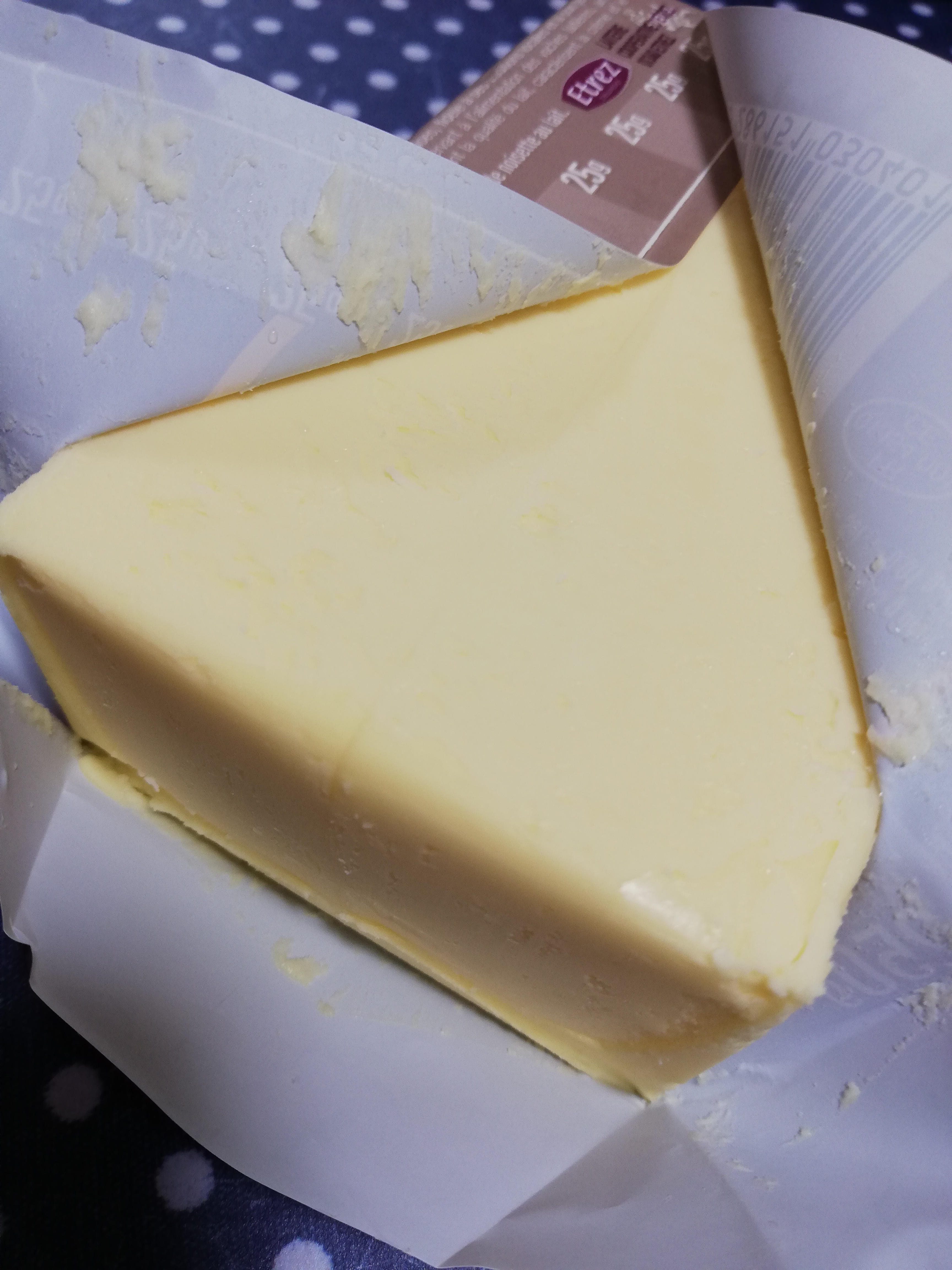 解凍を終えてバターナイフを入れると、冷蔵庫から出したてでもスーッと刃が入る柔らかさで、普段使用している発酵バターより柔らかかったです。
