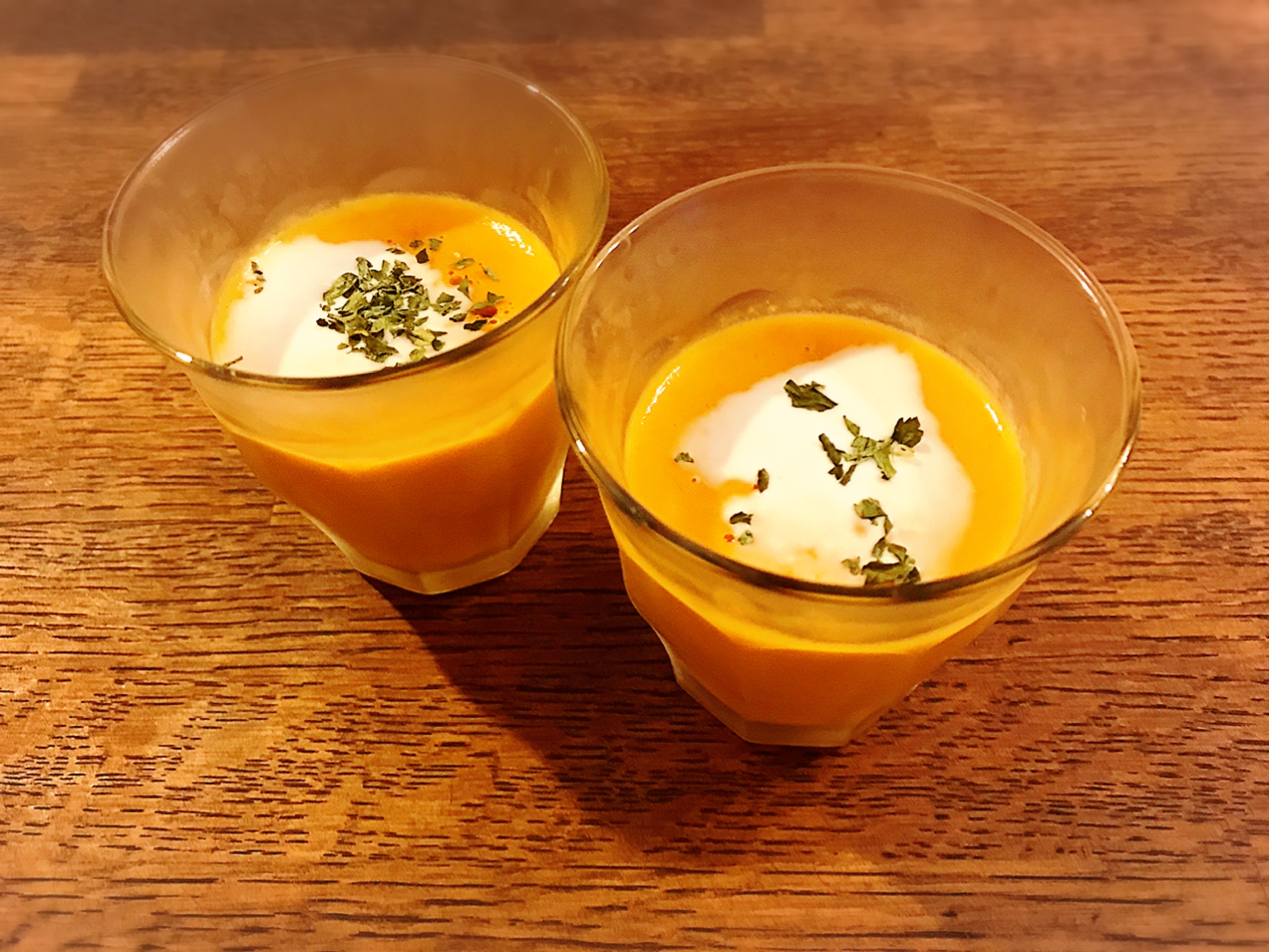 こちらは温めたスープに少しゼラチンを加えて冷蔵庫で冷やし、贅沢にもムースにしていただきました!